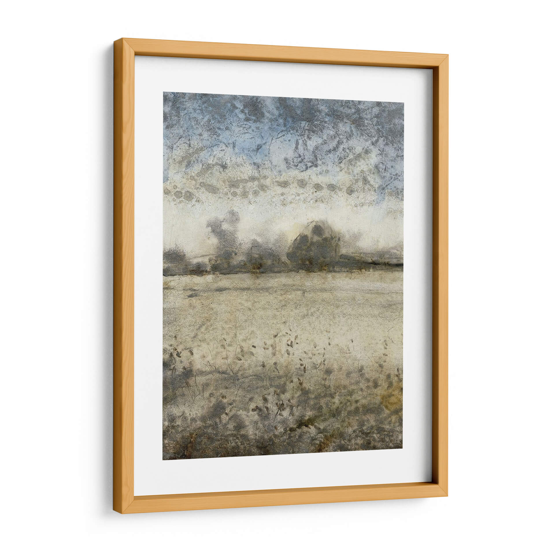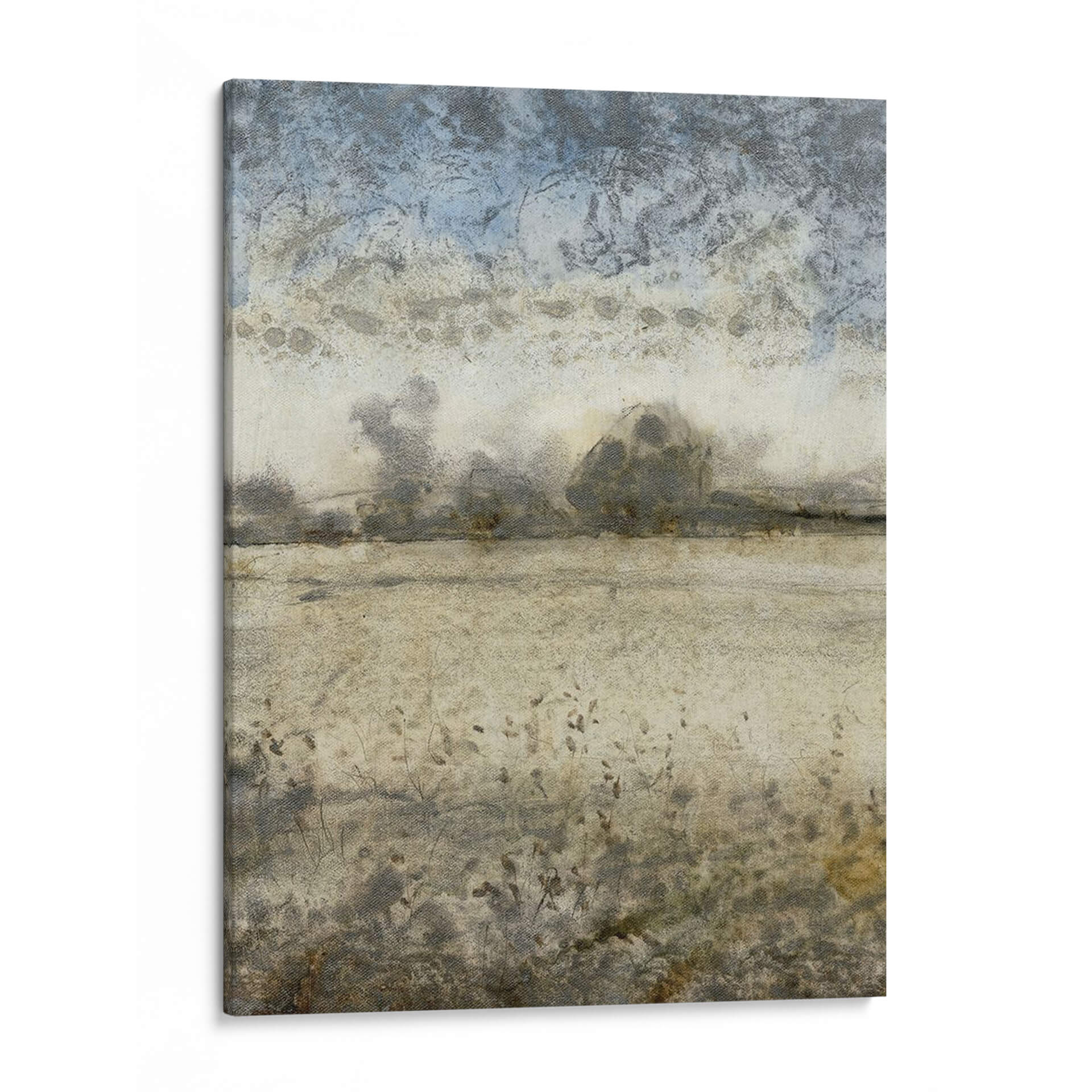 Sumérgete en la serenidad de "Infinito I", una obra de arte contemporáneo de Tim O'Toole que evoca la tranquilidad de un paisaje etéreo. Esta pieza se caracteriza por su atmósfera soñadora y texturas sutiles, donde los tonos tierra se fusionan con delicados matices de azul cielo. La composición presenta elementos paisajísticos abstractos, con formaciones rocosas o montañosas difuminadas que se pierden en la bruma, y una vegetación esquemática en primer plano que añade profundidad y movimiento. La paleta de colores, predominantemente apagada y natural, crea una sensación de calma y contemplación, ideal para espacios que buscan un refugio de paz. El estilo artístico, que roza lo abstracto y lo impresionista, permite una interpretación personal, invitando al espectador a perderse en sus detalles y texturas. Este cuadro decorativo es perfecto para añadir un toque de sofisticación y serenidad a tu sala de estar, dormitorio u oficina. "Infinito I" no es solo una imagen, es una invitación a la introspección y al disfrute de la belleza sutil de la naturaleza, transformando cualquier habitación en un oasis de tranquilidad y estilo. Descubre la profundidad y el encanto de este paisaje atemporal.