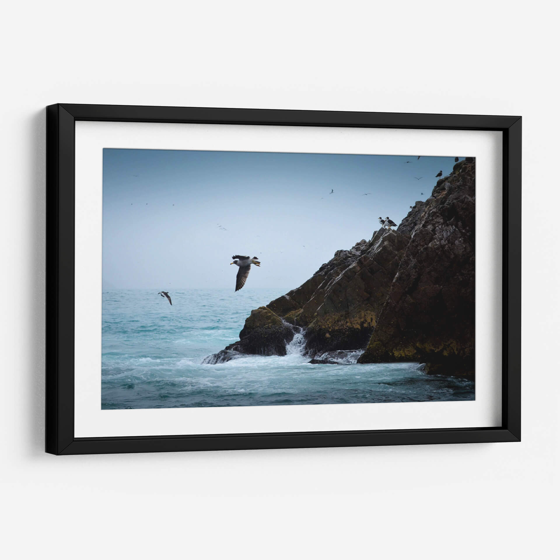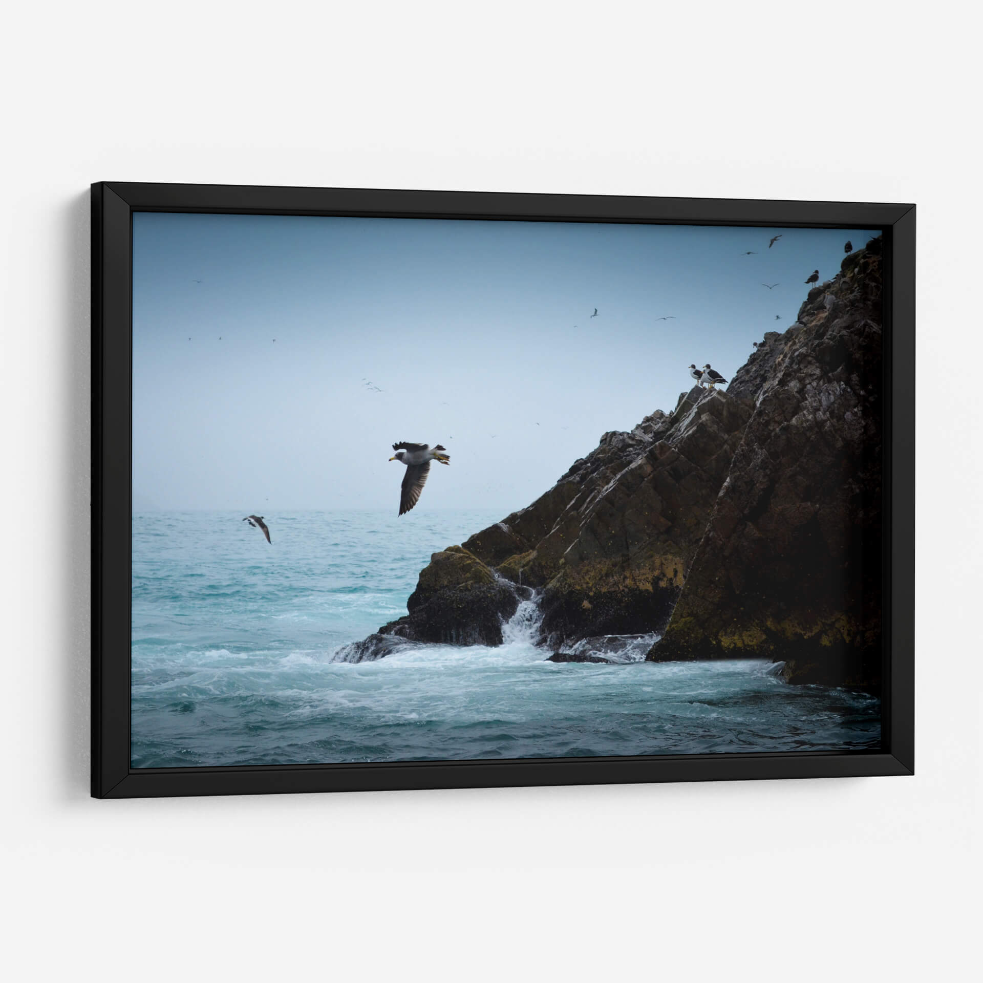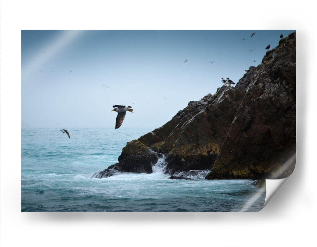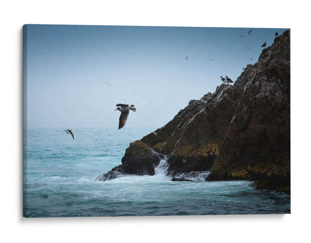 Captura la majestuosidad de la naturaleza con "Islas Ballestas 1", una obra de arte que evoca la fuerza y la libertad del océano. Esta pieza, creada por Ariadne Contreras, presenta una vista dinámica de aves marinas volando junto a imponentes formaciones rocosas bañadas por el oleaje. La paleta de colores, dominada por azules serenos del cielo y el mar, contrasta sutilmente con los tonos tierra y verdes musgosos de las rocas, creando una atmósfera de calma y aventura. La composición, que destaca a un ave en pleno vuelo, transmite una sensación de movimiento y vida, invitando a la contemplación de la vida salvaje y los paisajes costeros. Este cuadro decorativo es perfecto para añadir un toque de serenidad y conexión con la naturaleza a cualquier espacio, ya sea un salón moderno, una oficina o un dormitorio. Su estilo realista y evocador lo convierte en una pieza versátil que inspirará tranquilidad y admiración, transportando al espectador a la costa con cada mirada. Ideal para amantes de la fotografía de naturaleza y del arte que celebra la libertad.