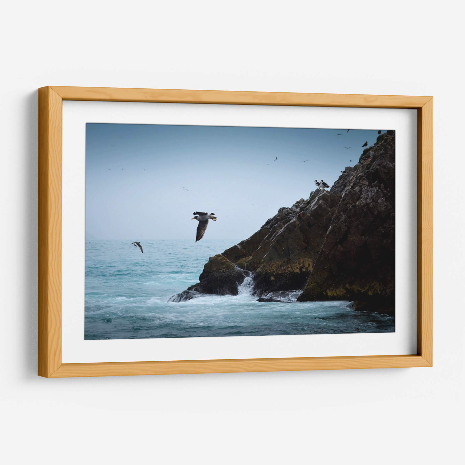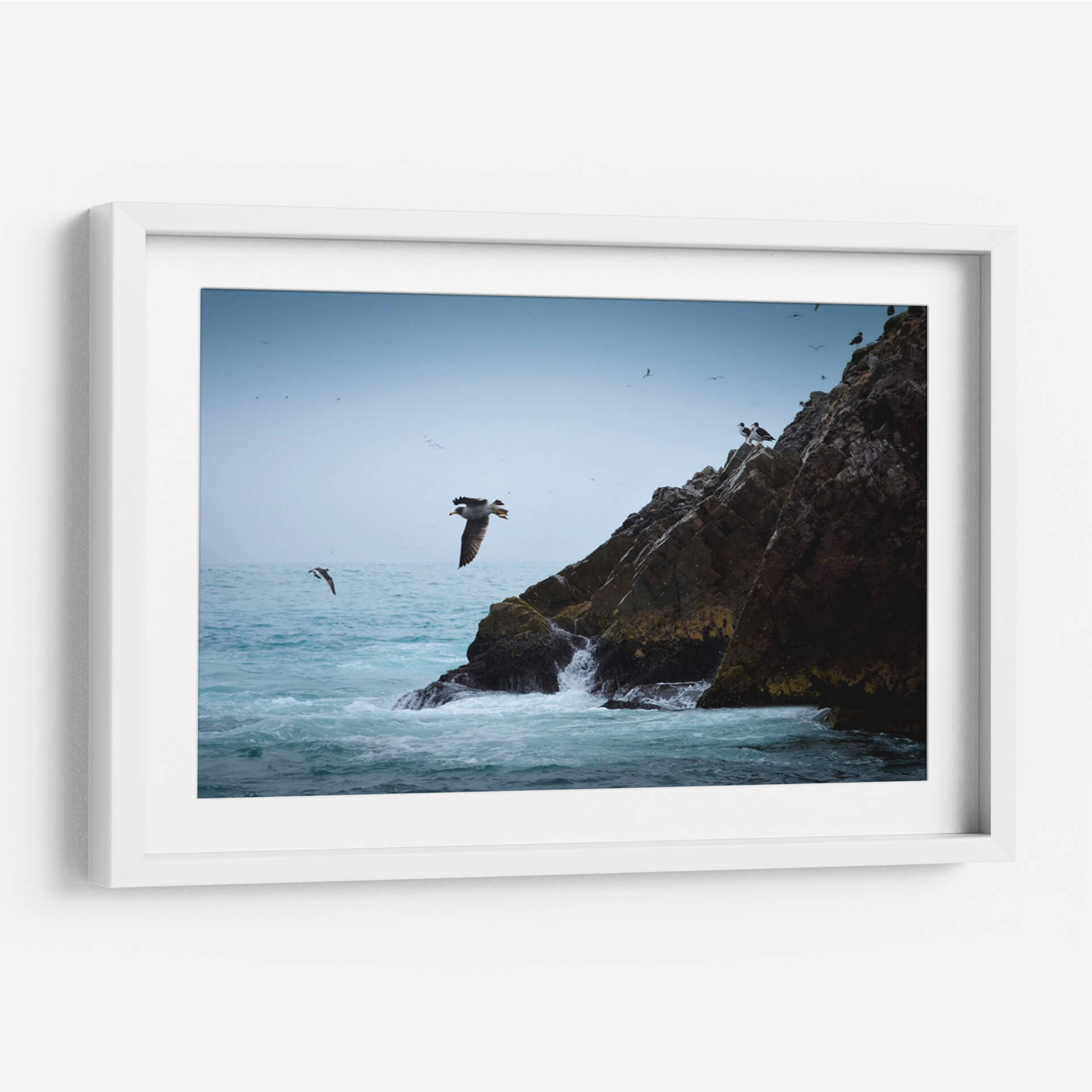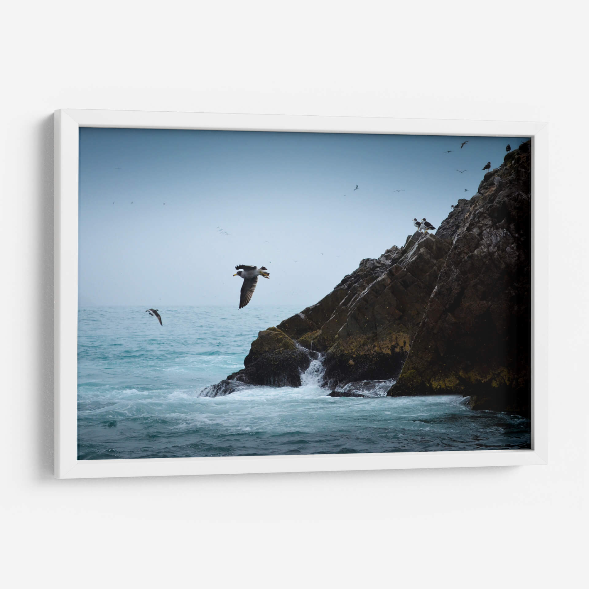 Captura la majestuosidad de la naturaleza con "Islas Ballestas 1", una obra de arte que evoca la fuerza y la libertad del océano. Esta pieza, creada por Ariadne Contreras, presenta una vista dinámica de aves marinas volando junto a imponentes formaciones rocosas bañadas por el oleaje. La paleta de colores, dominada por azules serenos del cielo y el mar, contrasta sutilmente con los tonos tierra y verdes musgosos de las rocas, creando una atmósfera de calma y aventura. La composición, que destaca a un ave en pleno vuelo, transmite una sensación de movimiento y vida, invitando a la contemplación de la vida salvaje y los paisajes costeros. Este cuadro decorativo es perfecto para añadir un toque de serenidad y conexión con la naturaleza a cualquier espacio, ya sea un salón moderno, una oficina o un dormitorio. Su estilo realista y evocador lo convierte en una pieza versátil que inspirará tranquilidad y admiración, transportando al espectador a la costa con cada mirada. Ideal para amantes de la fotografía de naturaleza y del arte que celebra la libertad.