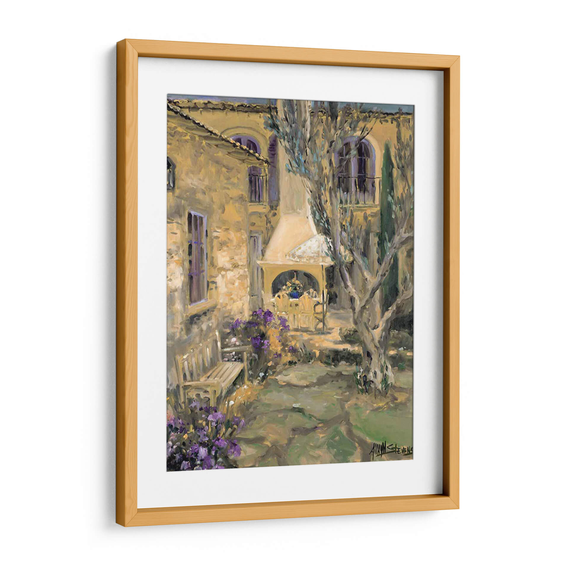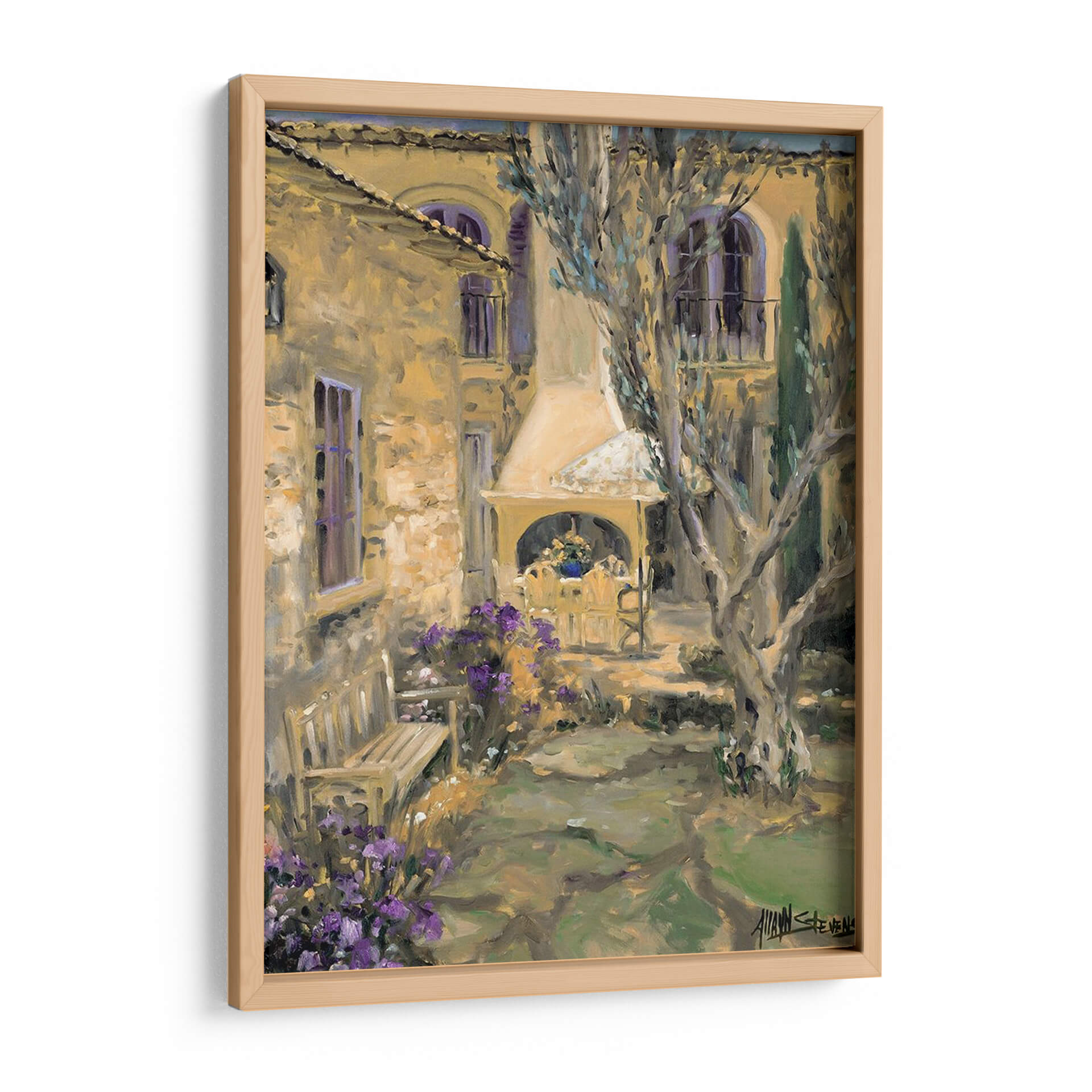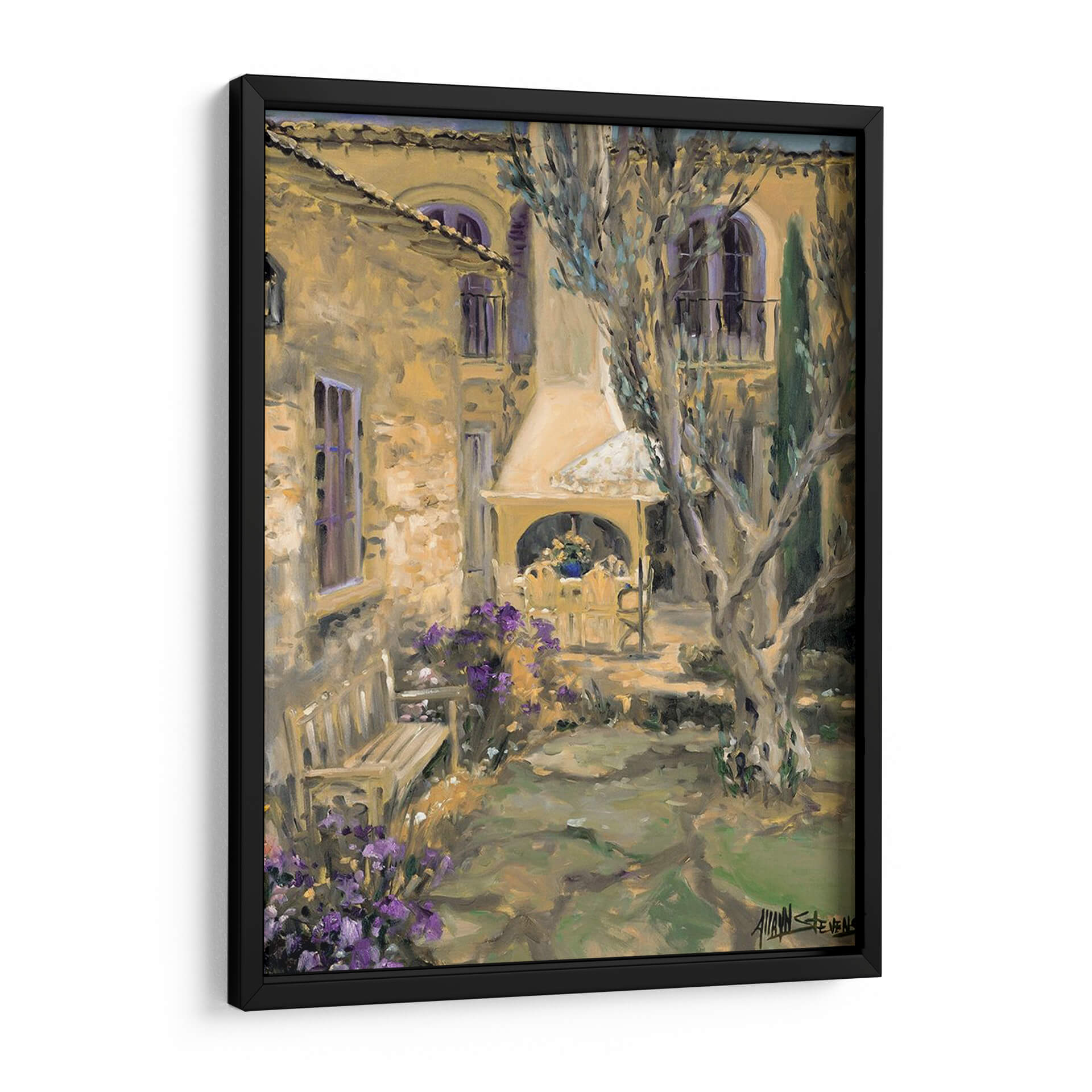 Sumérgete en la serenidad de "Italia Escénica VII", una obra maestra de Allayn Stevens que captura la esencia de un idílico patio italiano. Este cuadro decorativo te transporta a un rincón tranquilo bañado por la cálida luz del Mediterráneo, donde una casa de piedra rústica se fusiona con exuberante vegetación. La paleta de colores, dominada por tonos ocres, amarillos y toques de morado de las flores, crea una atmósfera acogedora y relajante. La composición, con el antiguo olivo como protagonista y el banco de madera invitando al descanso, evoca una sensación de paz y contemplación. Ideal para añadir un toque de encanto europeo y calidez a tu sala de estar, comedor o estudio. "Italia Escénica VII" no es solo una pieza de arte, sino una ventana a un oasis de tranquilidad que transformará cualquier espacio en un refugio personal. Descubre la belleza atemporal de los paisajes italianos a través de la pincelada expresiva de Stevens, perfecta para quienes buscan una decoración que inspire calma y sofisticación.