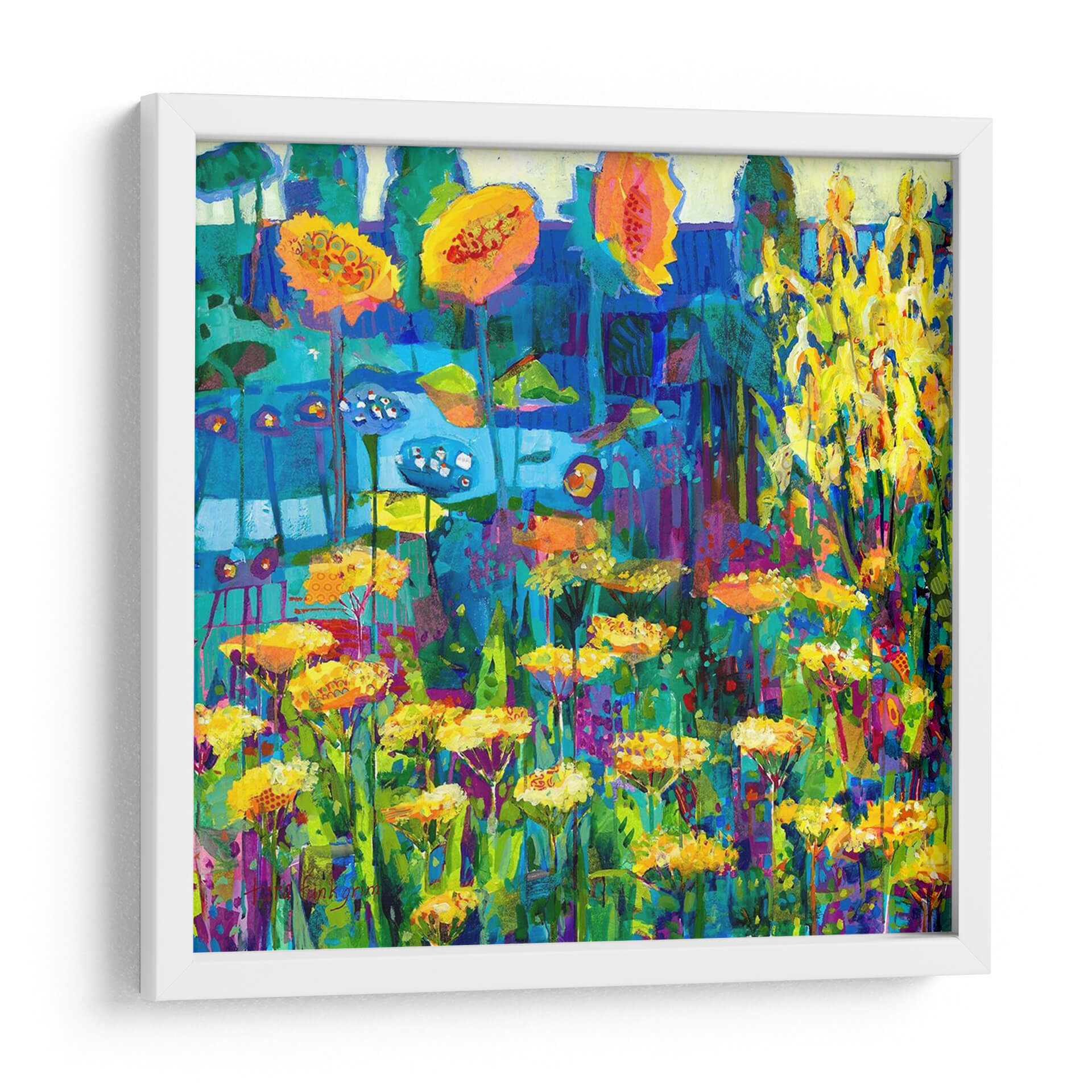 Sumérgete en la vibrante energía de 'Jardín Amarillo I', una obra de arte contemporáneo que captura la esencia de la naturaleza con un toque de expresionismo. Susan Friedman nos transporta a un paisaje floral rebosante de vida, donde los amarillos intensos de las flores contrastan con profundos azules y verdes, creando una atmósfera de alegría y vitalidad. La pincelada audaz y la composición dinámica invitan a la contemplación, haciendo de este cuadro decorativo un punto focal perfecto para cualquier espacio que busque un estallido de color y optimismo. Ideal para salas de estar modernas, recibidores o incluso espacios de oficina que necesiten un impulso de energía creativa. Su estilo abstracto-impresionista permite múltiples interpretaciones, conectando emocionalmente con el espectador y aportando una sensación de frescura y exuberancia. Añade un toque de arte único a tu hogar u oficina y deja que esta pieza ilumine tu día a día con su cautivadora belleza. Perfecto para amantes del arte floral y la pintura contemporánea que buscan piezas con carácter y personalidad.
