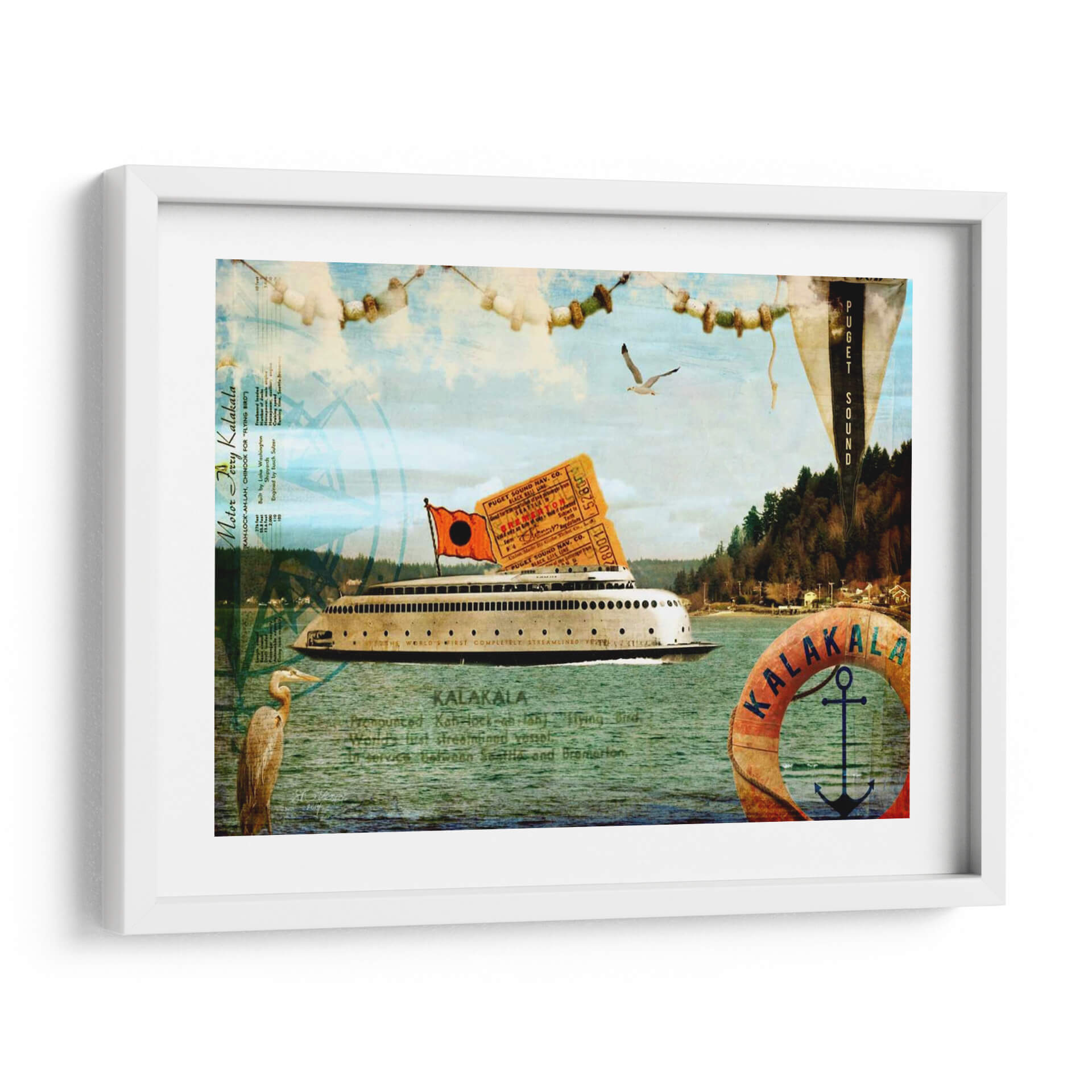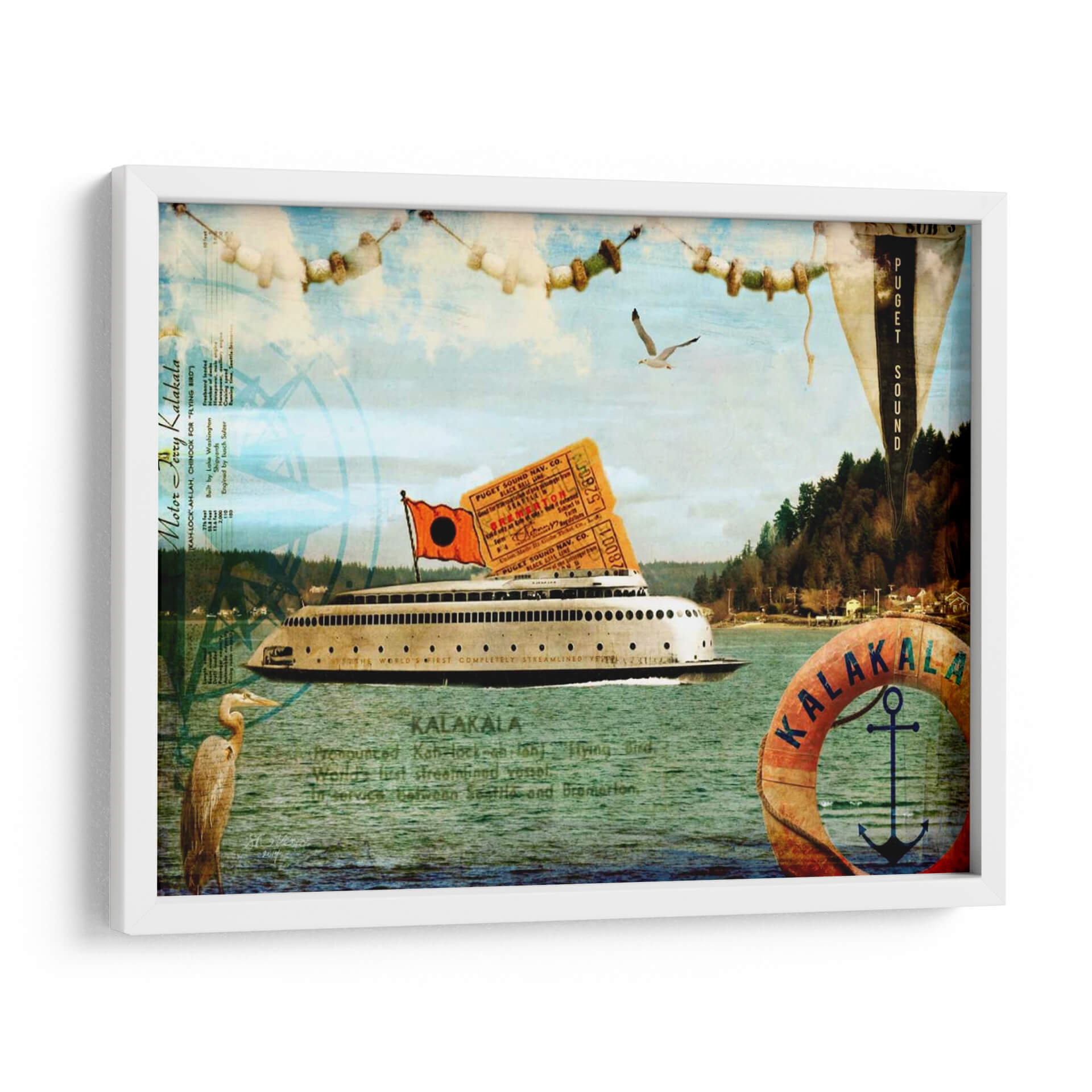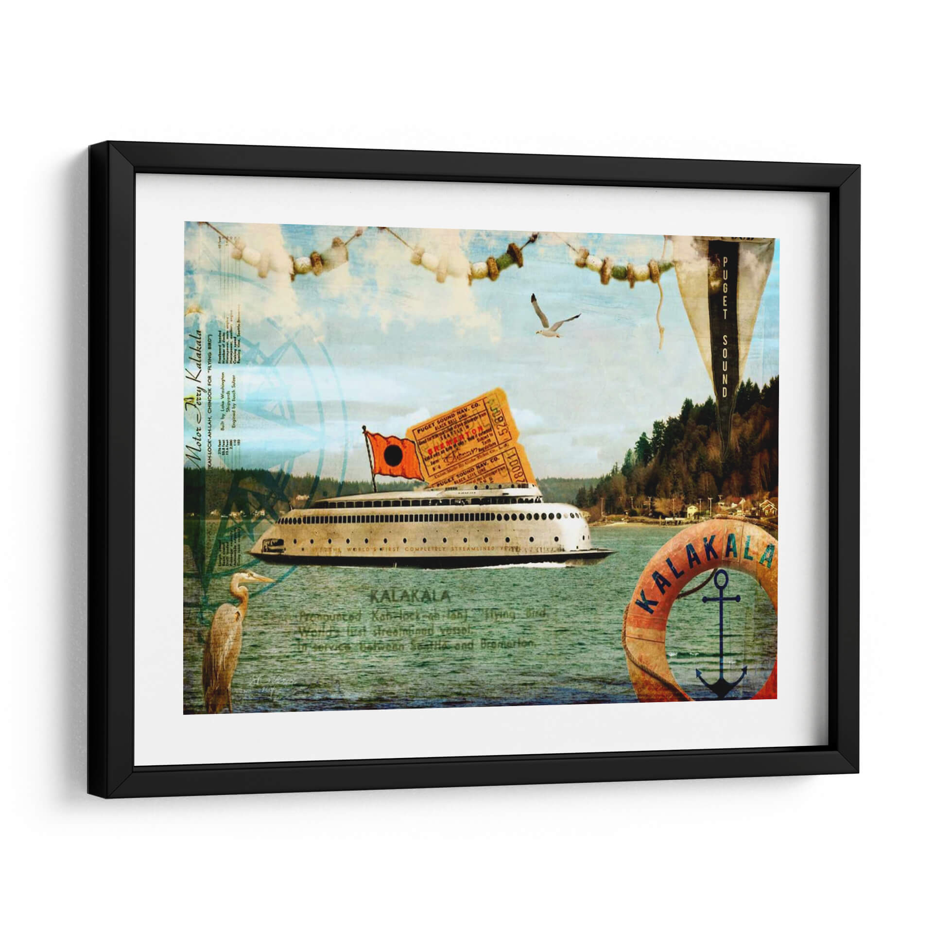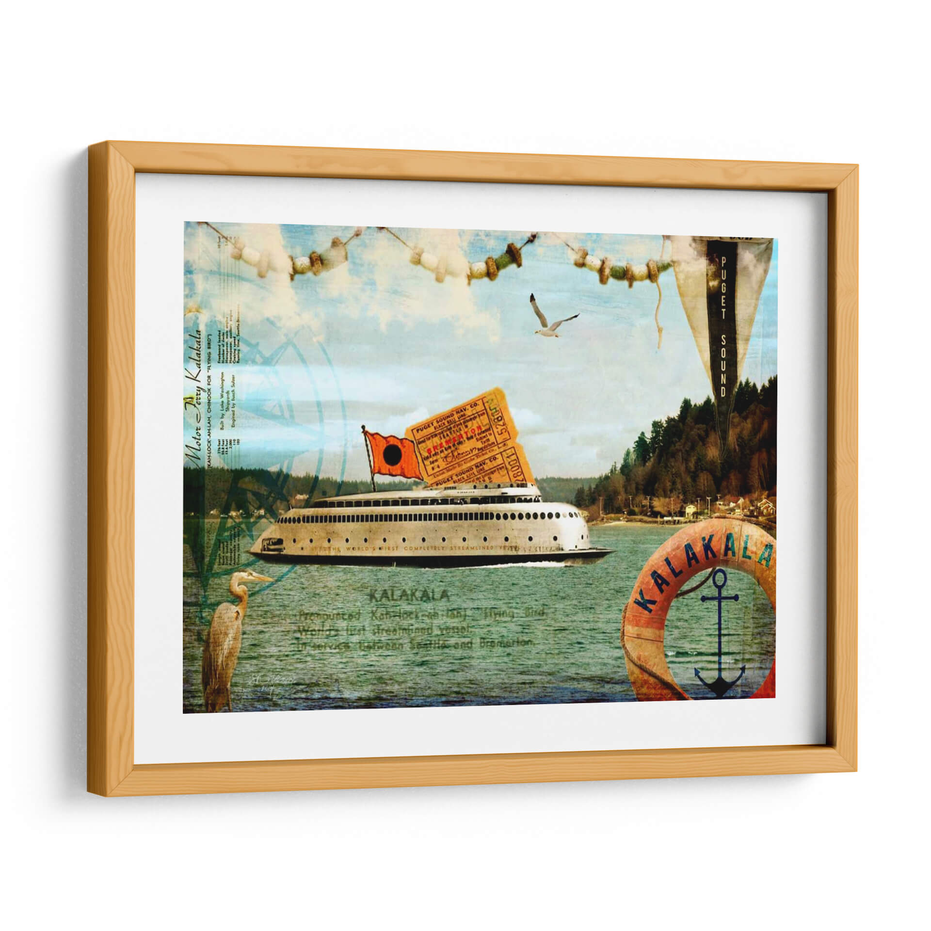Sumérgete en la nostalgia y la aventura marina con "Kalakala", una obra de arte digital de Sandy Lloyd que evoca el encanto de los viajes en ferry y la belleza de la costa. Este cuadro decorativo es una composición vibrante y detallada que combina elementos retro y contemporáneos, creando una atmósfera única. La pieza presenta un majestuoso ferry blanco navegando sobre aguas verdes y serenas, coronado por billetes de época y un cielo azul salpicado de nubes. Un majestuoso garza real posada en primer plano añade un toque de naturaleza salvaje, mientras que un salvavidas con el nombre "Kalakala" y un ancla estilizada insinúan historias de travesías y exploración. Los colores, que van desde los azules profundos del mar y el cielo hasta los tonos tierra de la vegetación y los detalles en naranja vibrante de la bandera y el salvavidas, crean un equilibrio visual cautivador. "Kalakala" es ideal para espacios que buscan un toque de historia marítima y carácter, como una sala de estar, un estudio o incluso un espacio comercial que desee transmitir una sensación de viaje y descubrimiento. Este cuadro decorativo no solo embellece tu pared, sino que también cuenta una historia, invitando a la contemplación y al anhelo por el mar.