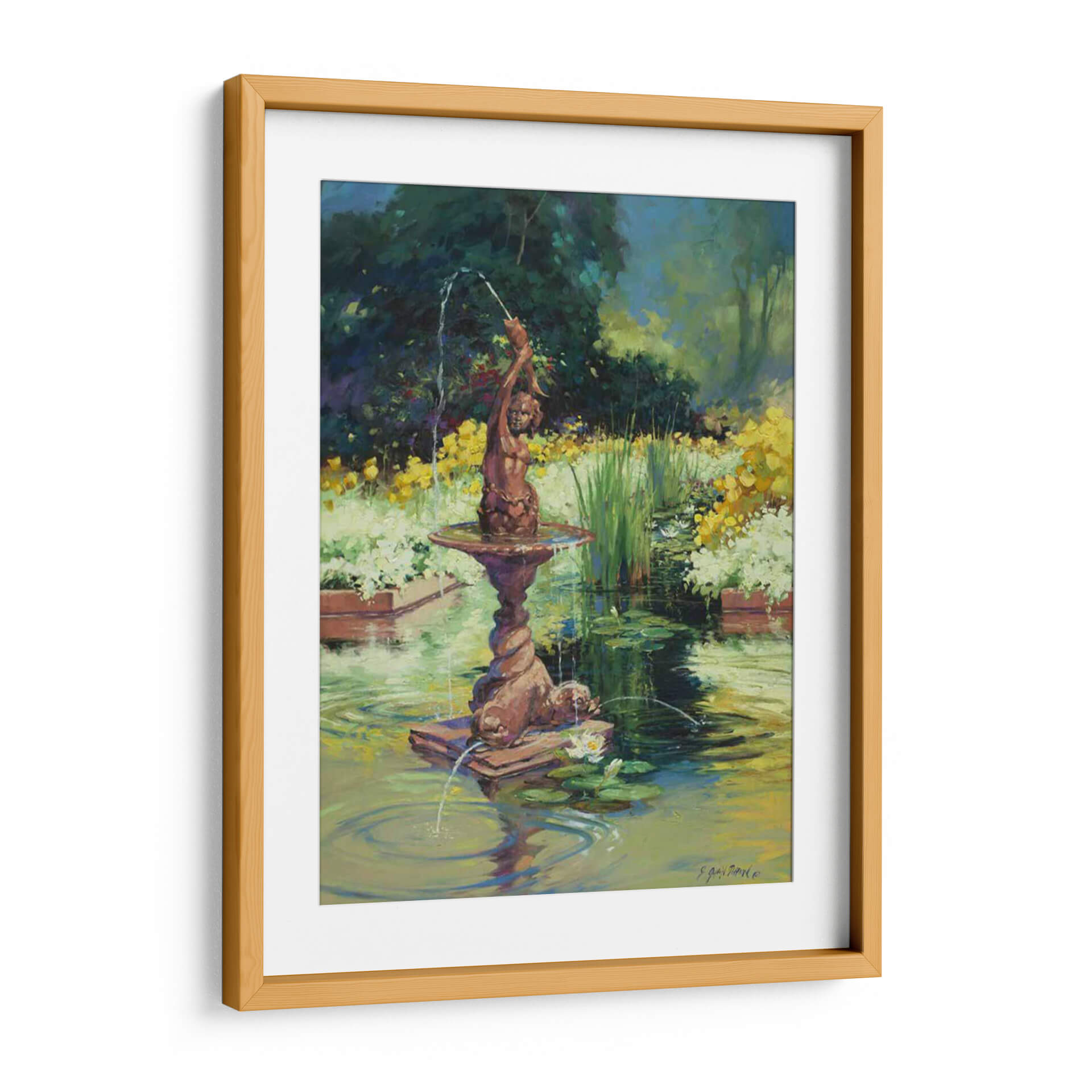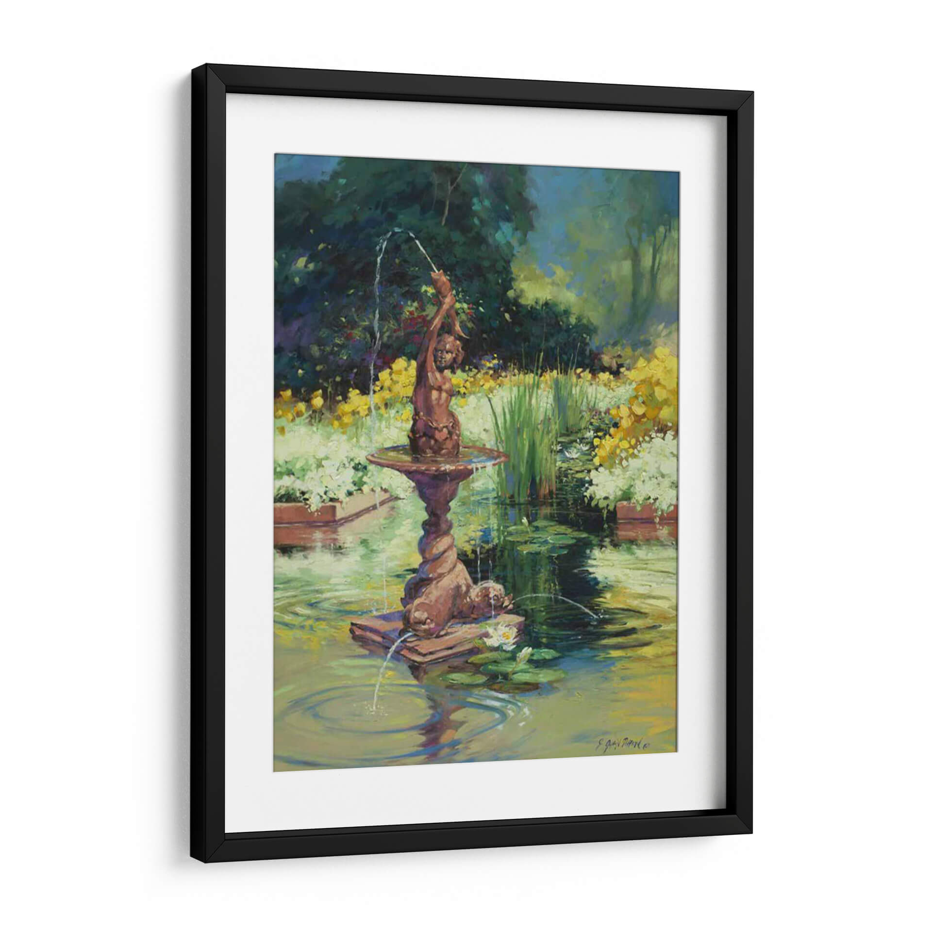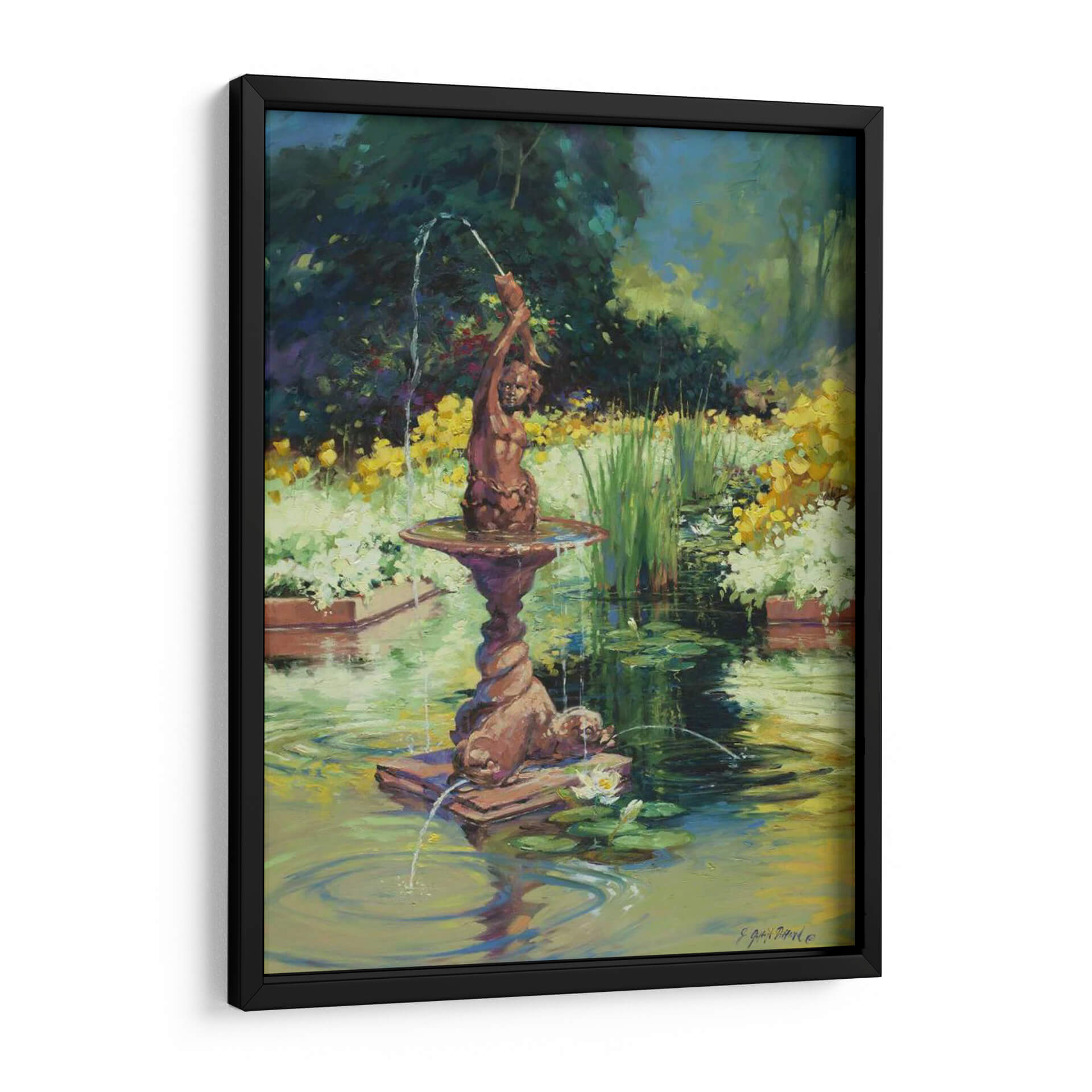 Sumérgete en la serenidad de "La Fontana", una cautivadora obra de arte de Julie G. Pollard que transforma cualquier espacio en un oasis de tranquilidad. Esta pieza evoca la atmósfera de un jardín exuberante y pacífico, centrándose en una fuente clásica con una figura delicada. Los colores vibrantes y la pincelada expresionista capturan la luz y el movimiento del agua, creando una escena llena de vida y armonía. El verde profundo de la vegetación circundante contrasta maravillosamente con los toques de amarillo y blanco de las flores, mientras que el agua refleja la serena luz del día. Ideal para añadir un toque de naturaleza y calma a tu salón, dormitorio u oficina, este cuadro decorativo invita a la contemplación y al disfrute de la belleza efímera. "La Fontana" no es solo una imagen, sino una ventana a un mundo de paz y refinamiento artístico, perfecta para aquellos que aprecian el arte impresionista y los paisajes serenos. Añade esta joya a tu colección y siente la frescura y el encanto de un jardín italiano en tu propio hogar.