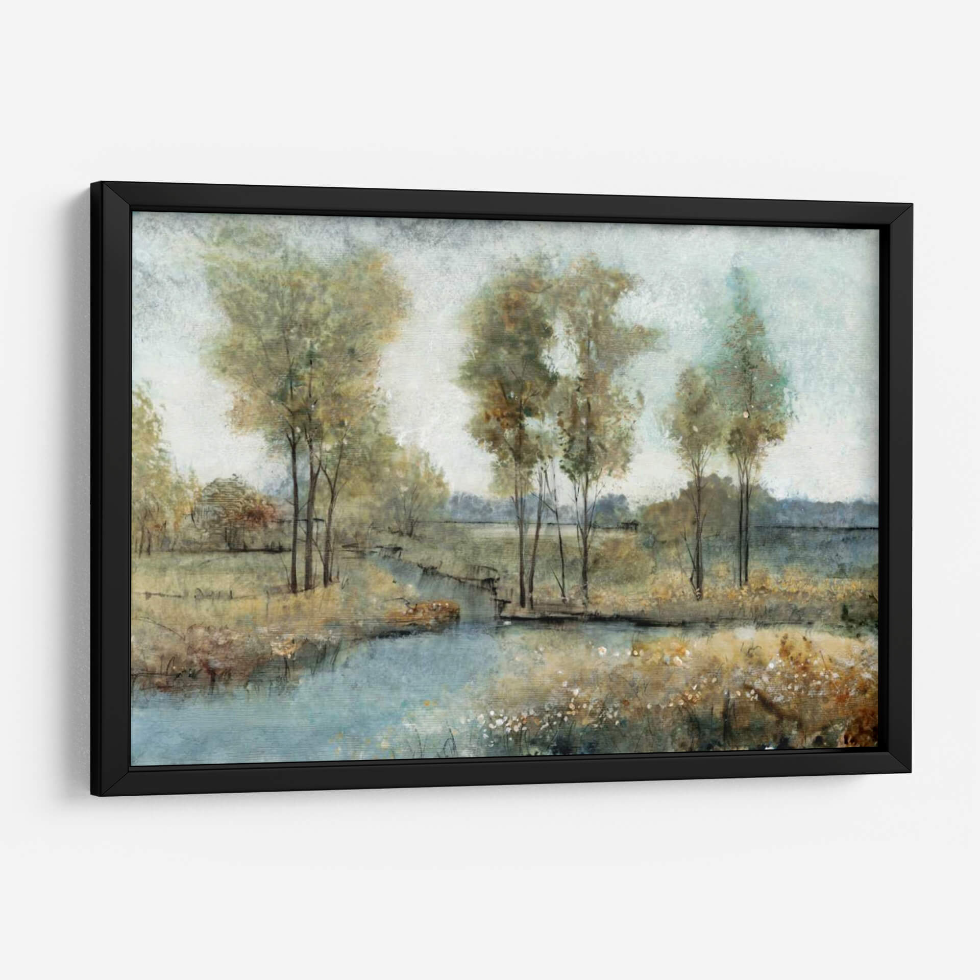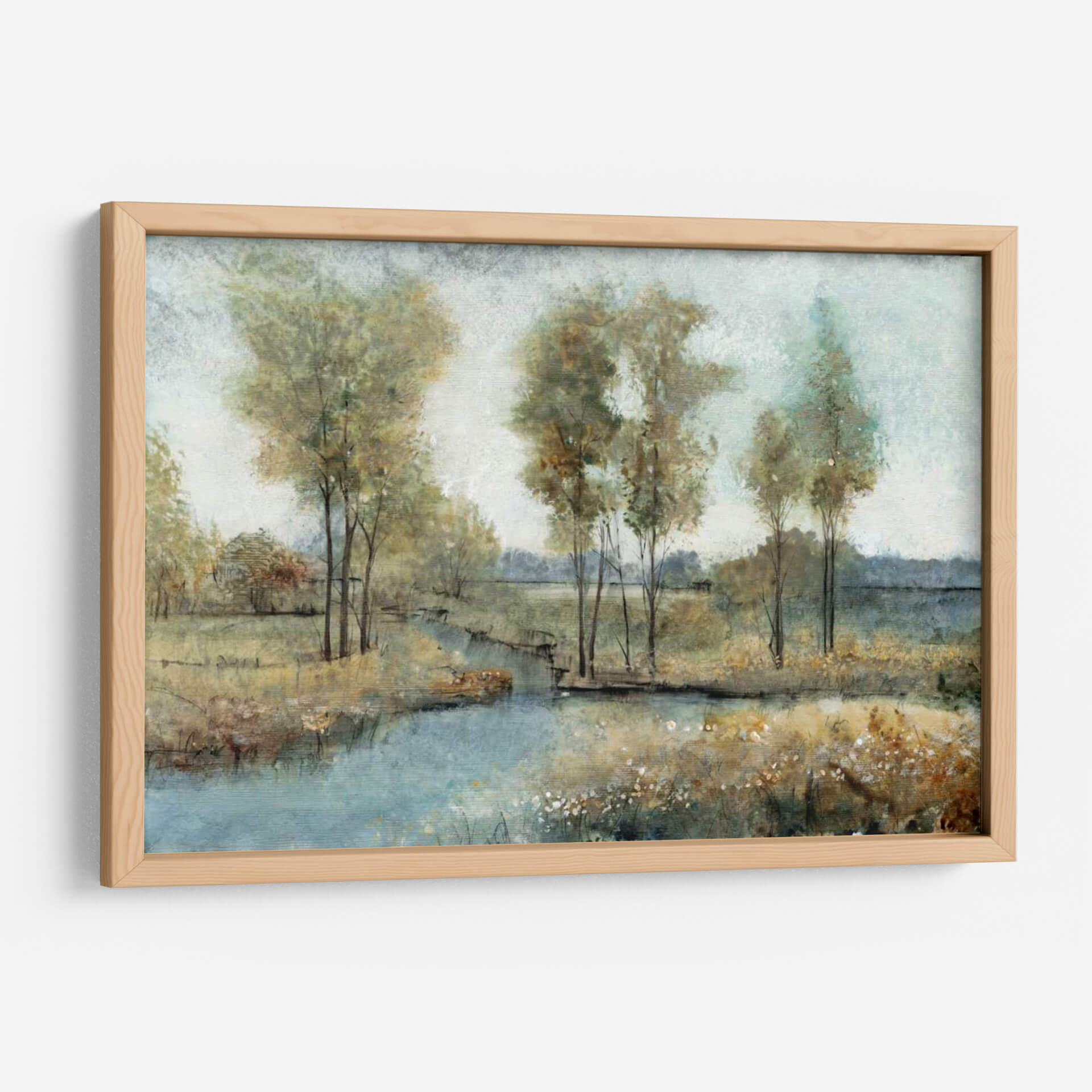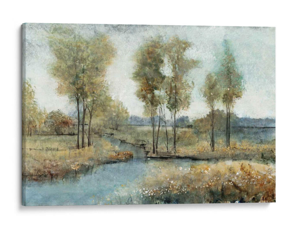 Sumérgete en la serenidad del paisaje con "Lado Corriente I", una obra de arte contemporáneo que captura la esencia de la naturaleza en un momento de calma. Este cuadro decorativo, del artista Tim O'Toole, te transporta a un riachuelo sereno flanqueado por árboles esbeltos y una vegetación exuberante. La paleta de colores, dominada por tonos tierra, ocres, verdes apagados y sutiles azules, crea una atmósfera envolvente y melancólica, evocando la tranquilidad de un paseo otoñal. La técnica pictórica, con pinceladas sueltas y texturas sutiles, confiere a la pieza una cualidad etérea, invitando a la contemplación. "Lado Corriente I" es más que una simple decoración; es una ventana a la paz interior, ideal para espacios que buscan reflejar armonía y conexión con el entorno natural. Este cuadro decorativo es perfecto para añadir un toque de sofisticación y serenidad a tu sala de estar, dormitorio u oficina, convirtiéndose en un punto focal que inspira tranquilidad y respiro en tu día a día. Deja que esta pieza transforme tu hogar en un santuario de paz.
