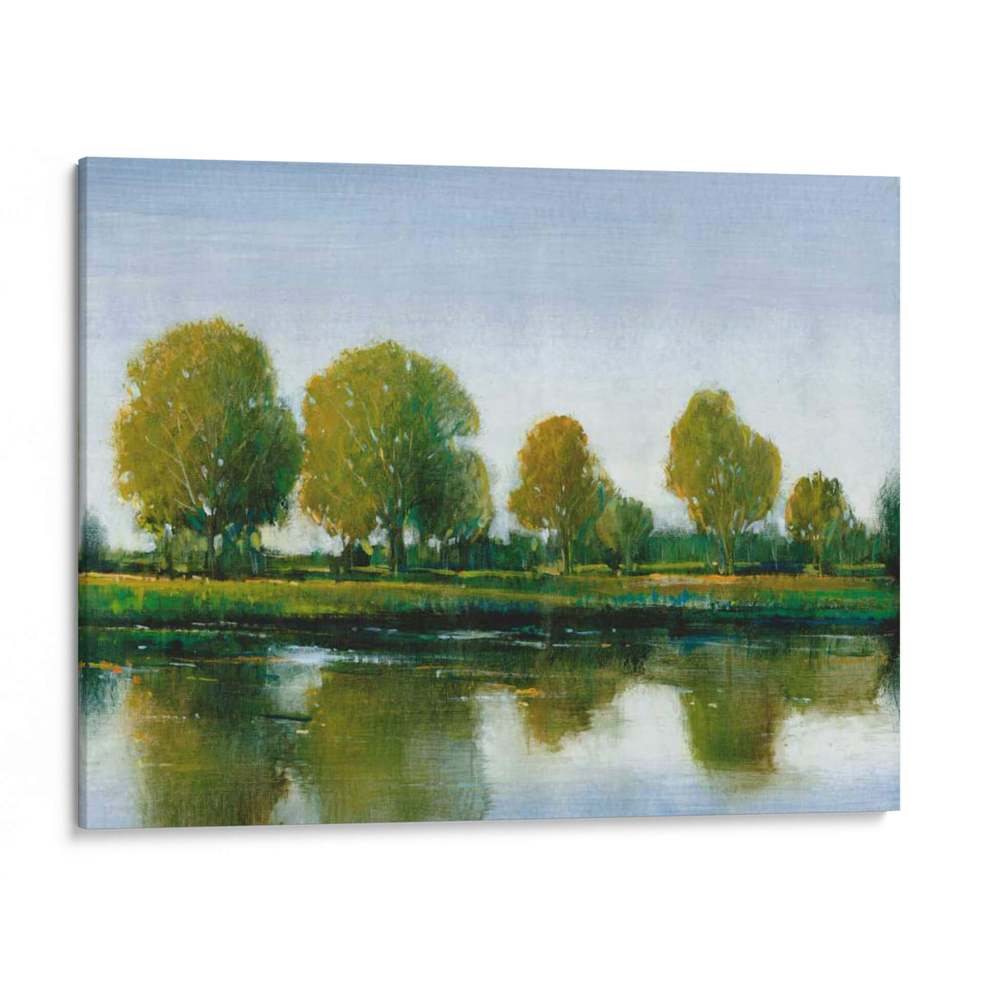 Sumérgete en la serenidad de 'Las Reflexiones Del Río II', una cautivadora obra de arte del artista Tim O'Toole. Este cuadro decorativo captura la esencia de un paisaje tranquilo, donde la naturaleza se despliega en una sinfonía de verdes vibrantes y azules serenos. La técnica impresionista del artista da vida a los árboles frondosos y a la superficie espejada del río, creando un efecto visual dinámico y a la vez pacífico. Los colores se mezclan con pinceladas sueltas, evocando la luz y la atmósfera de un día tranquilo junto al agua. Cada elemento, desde las texturas de la vegetación hasta los sutiles reflejos en el agua, invita a la contemplación y a la calma. 'Las Reflexiones Del Río II' es más que una simple pieza decorativa; es una ventana a un momento de paz natural, ideal para añadir un toque de sofisticación y serenidad a tu sala de estar, dormitorio u oficina. Transforma tu espacio con este evocador paisaje que resonará con tu amor por la naturaleza y el arte contemporáneo.