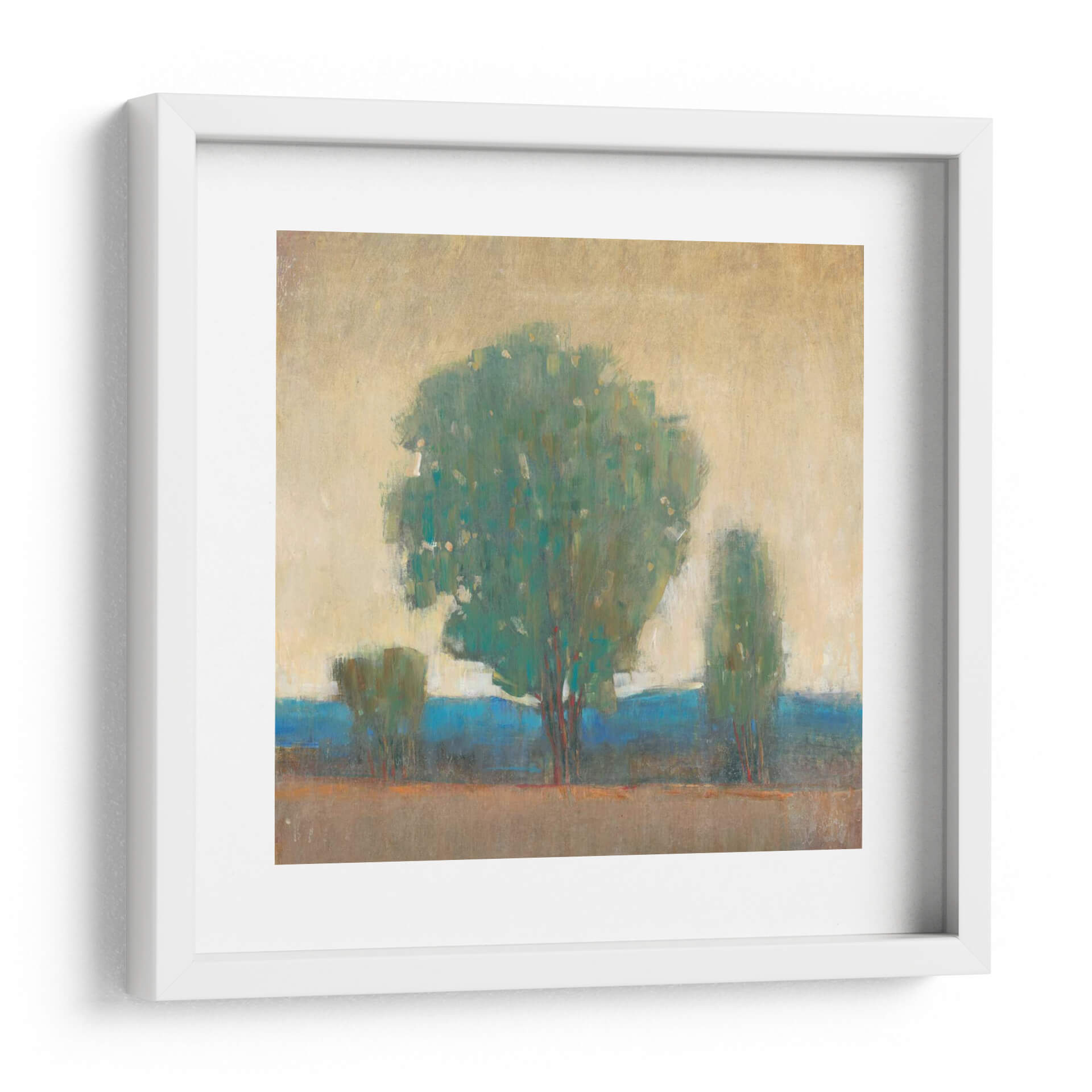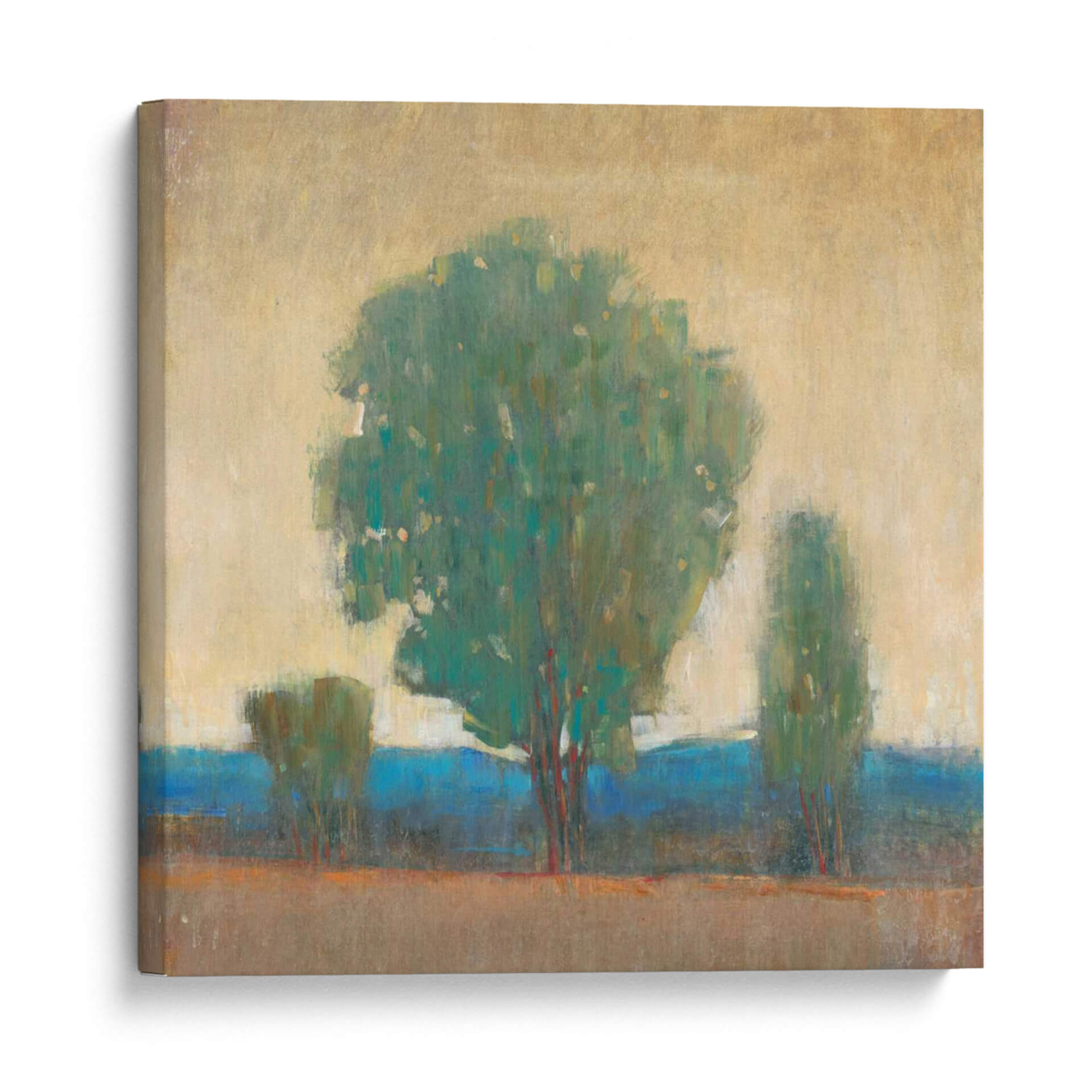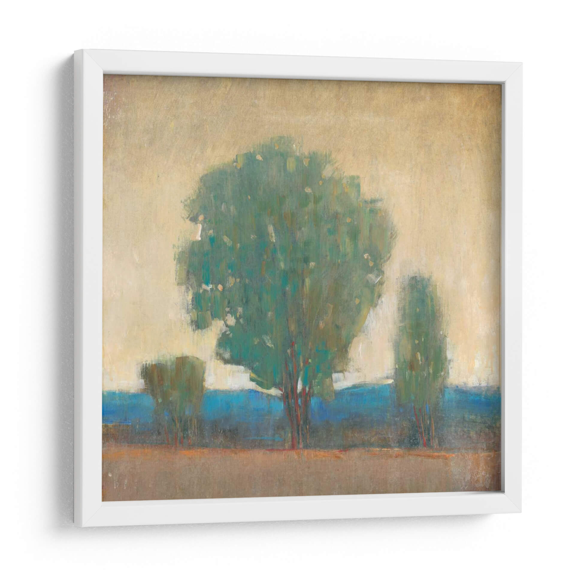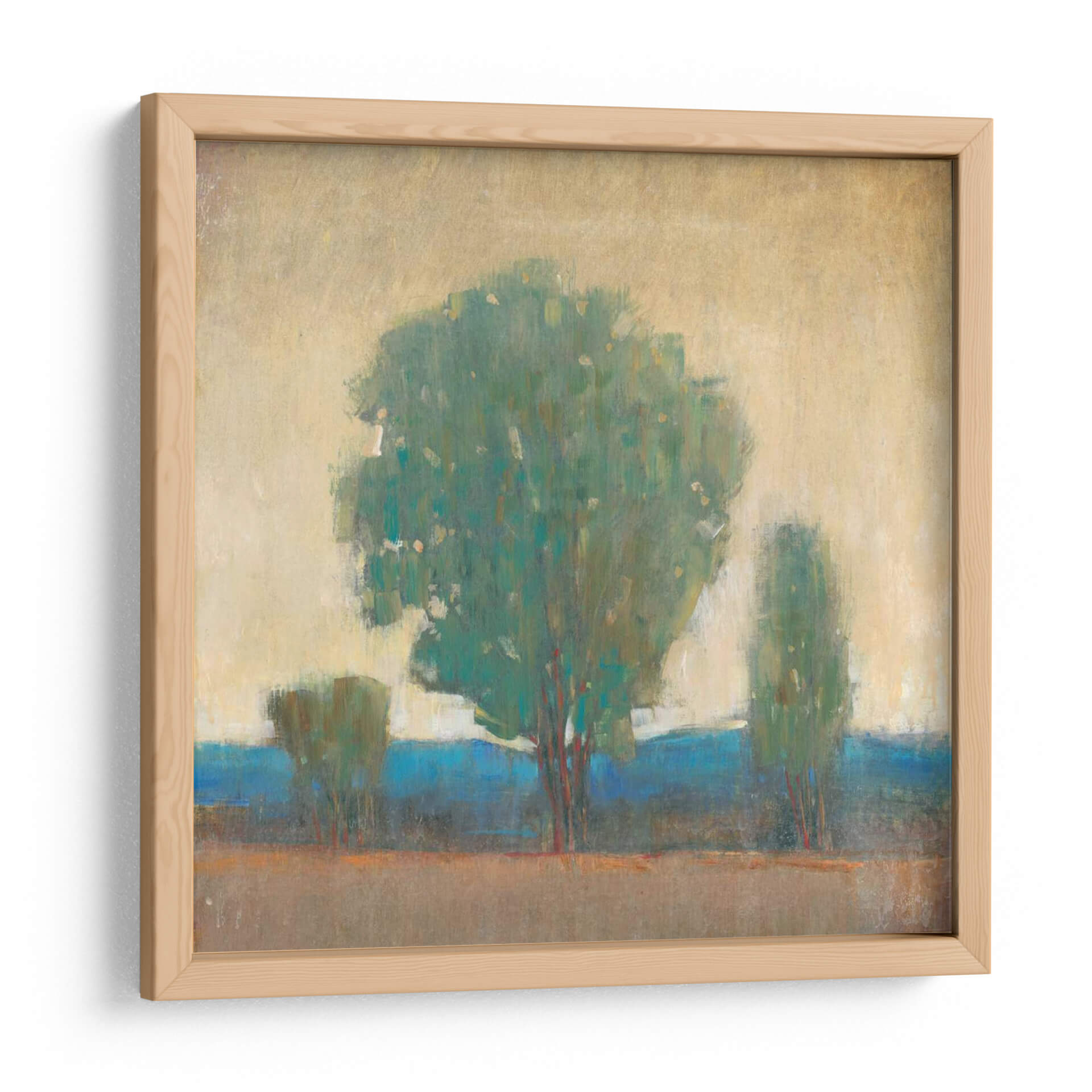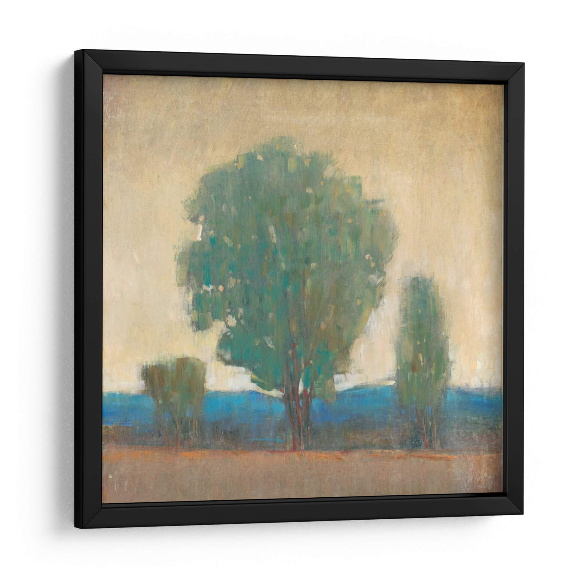 Sumérgete en la serenidad y la fuerza de la naturaleza con "Limpiando La Tormenta I", una obra de arte contemporáneo de Tim O'Toole. Este cuadro decorativo captura la esencia de un paisaje apacible después de un evento climático, invitando a la calma y la reflexión a tu hogar u oficina. La paleta de colores, dominada por verdes profundos, azules vibrantes y tonos tierra cálidos, crea una atmósfera de tranquilidad y renovación. Las pinceladas expresivas y el estilo semi-abstracto otorgan profundidad y textura a la composición, centrada en la imponente figura de un árbol frondoso flanqueado por siluetas más sutiles. Es una pieza que evoca resiliencia y la belleza efímera de la naturaleza, perfecta para ser el punto focal en salones modernos, dormitorios acogedores o espacios de trabajo que buscan inspirar paz y claridad. Este cuadro es ideal para quienes aprecian el arte abstracto con un toque orgánico, añadiendo un elemento de sofisticación y conexión con el mundo natural a cualquier decoración.