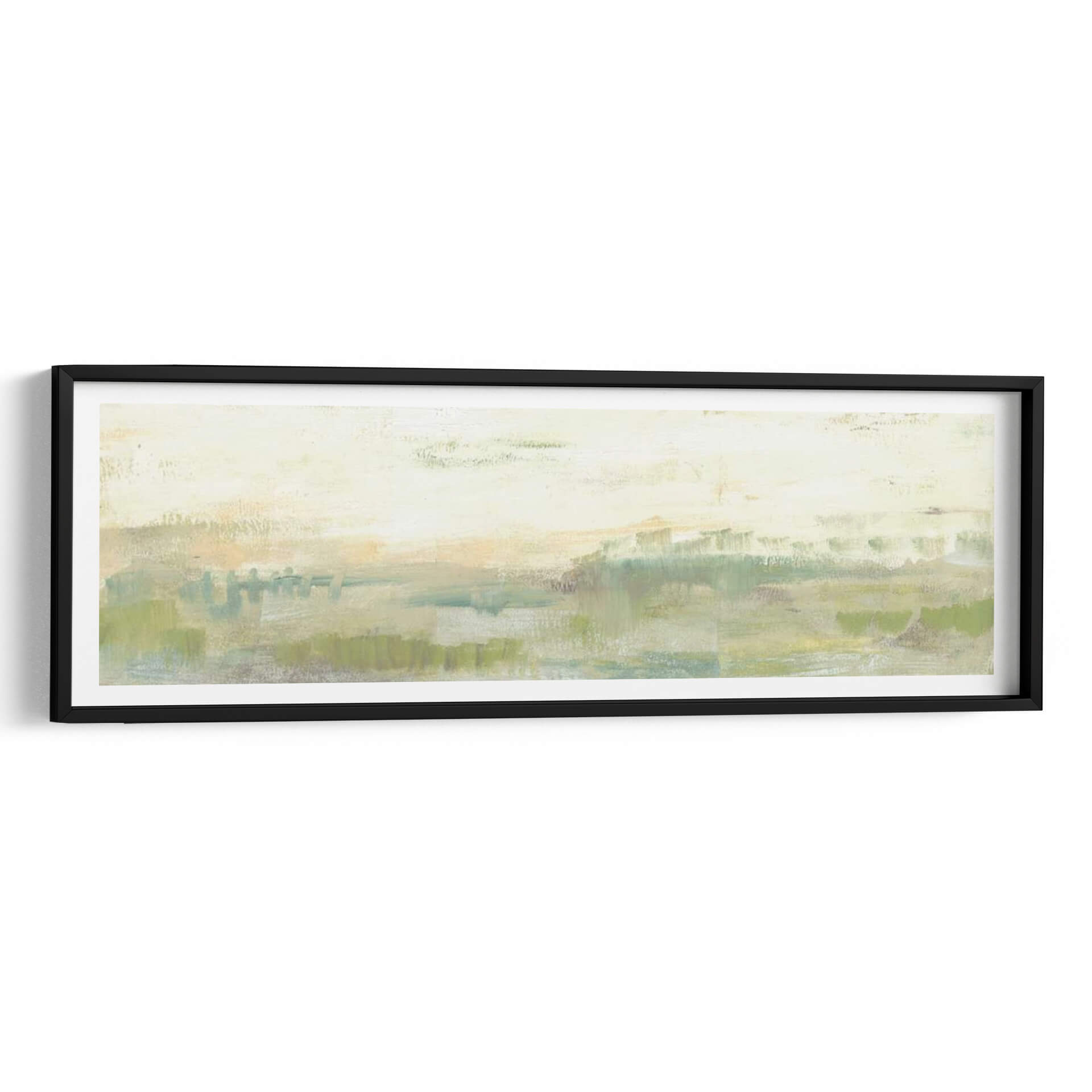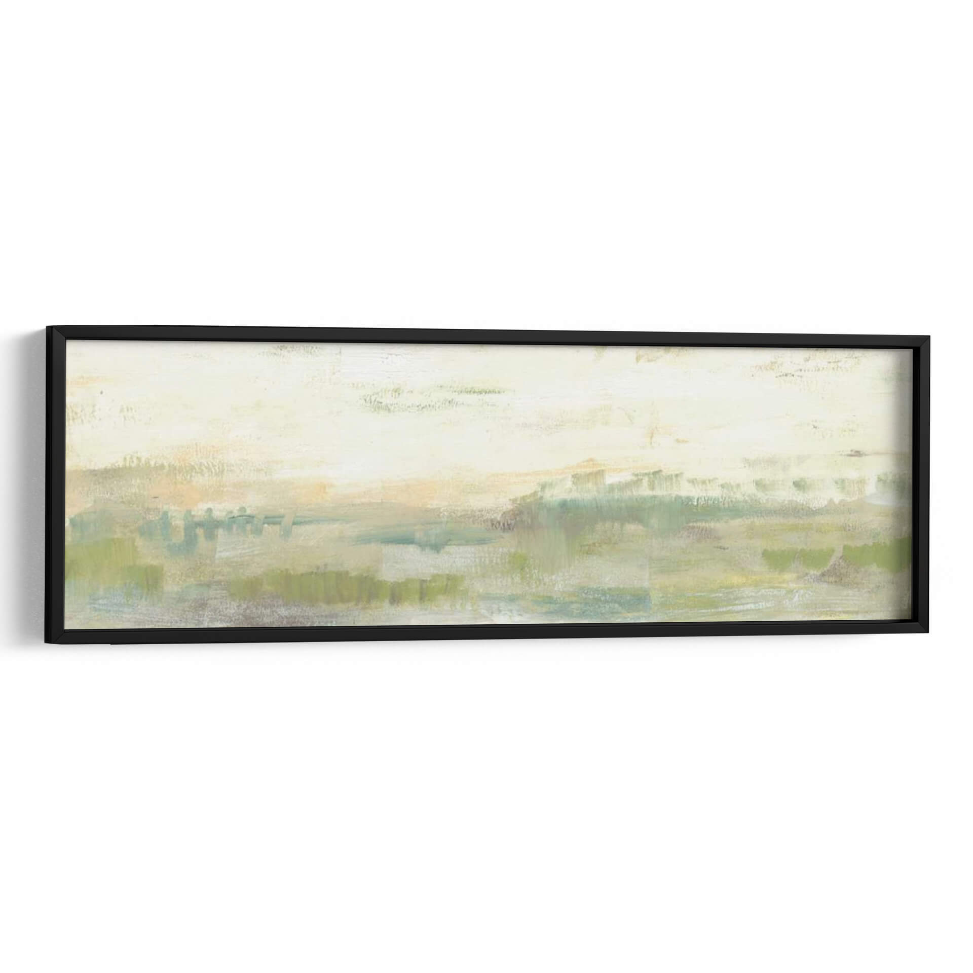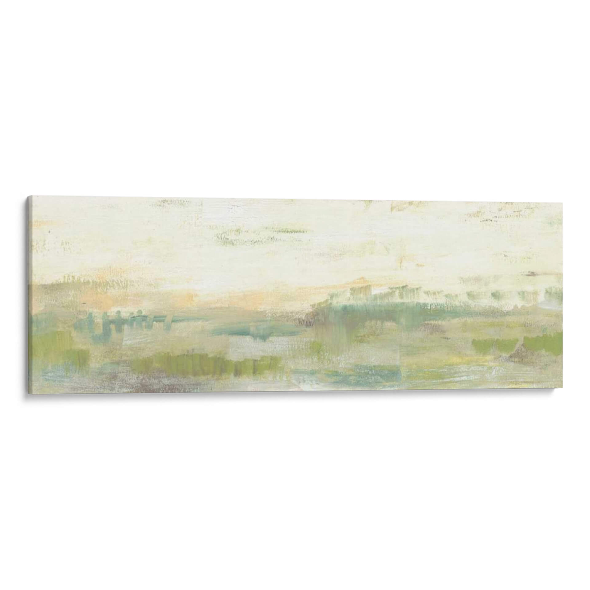Sumérgete en la serenidad de 'Línea De Horizonte Verde I', una obra de arte contemporáneo que captura la esencia de un paisaje etéreo con pinceladas expresivas. Jennifer Goldberger nos transporta a un espacio de calma y contemplación a través de una paleta de colores suaves, dominada por verdes naturales, toques de ocre y celestes, que evocan la tranquilidad de la naturaleza al amanecer o al atardecer. Su estilo abstracto y minimalista permite una interpretación personal, invitando al espectador a perderse en sus texturas y capas de color. Este cuadro decorativo es perfecto para crear un ambiente relajante en tu hogar u oficina, aportando una sensación de paz y conexión con el entorno natural. La composición horizontal y alargada de la obra la hace ideal para espacios amplios o como pieza central que unifica la decoración. Ya sea que busques un punto focal sutil o una inyección de color terroso y suave, 'Línea De Horizonte Verde I' es una elección sofisticada que realza cualquier ambiente con su belleza atemporal y su mensaje de serenidad.