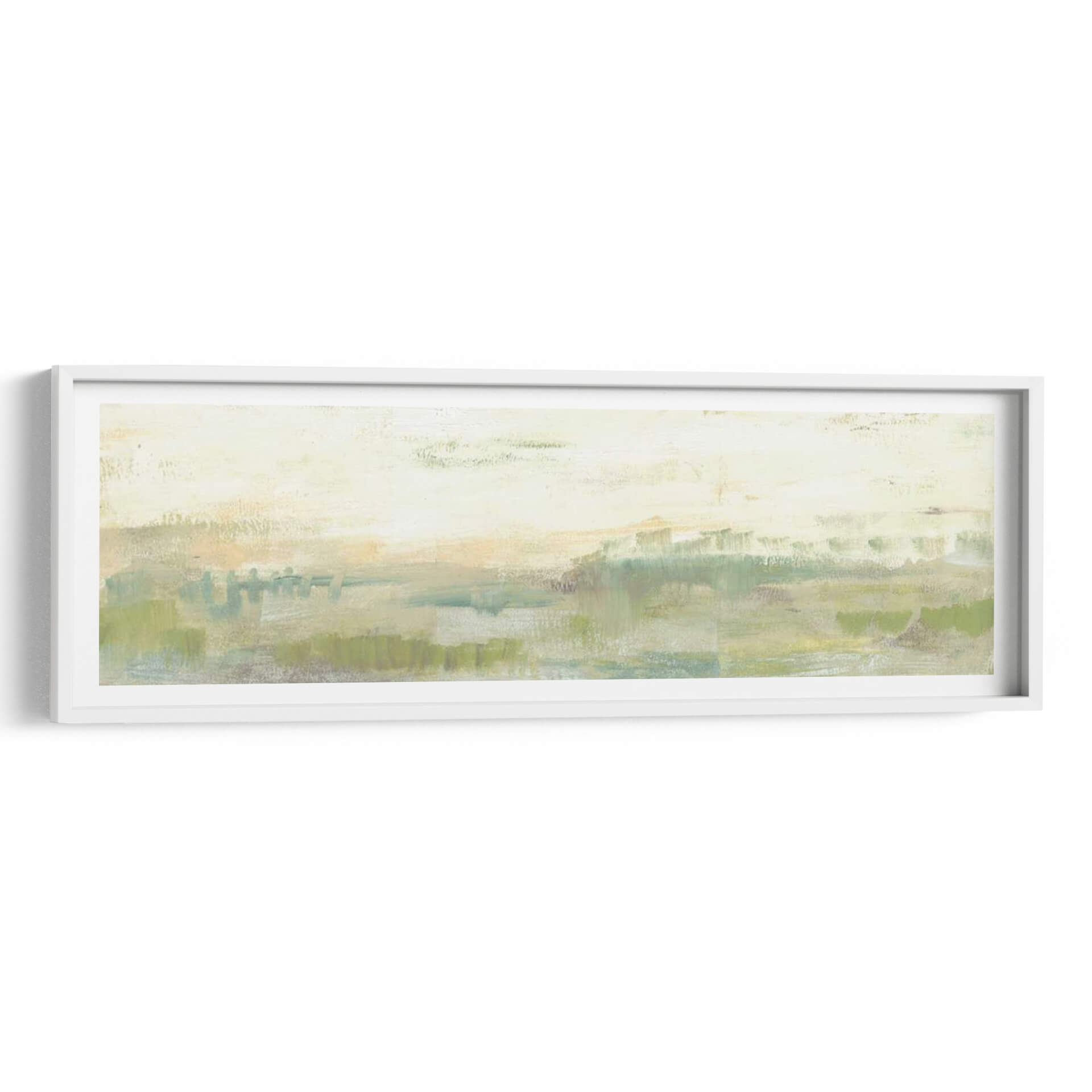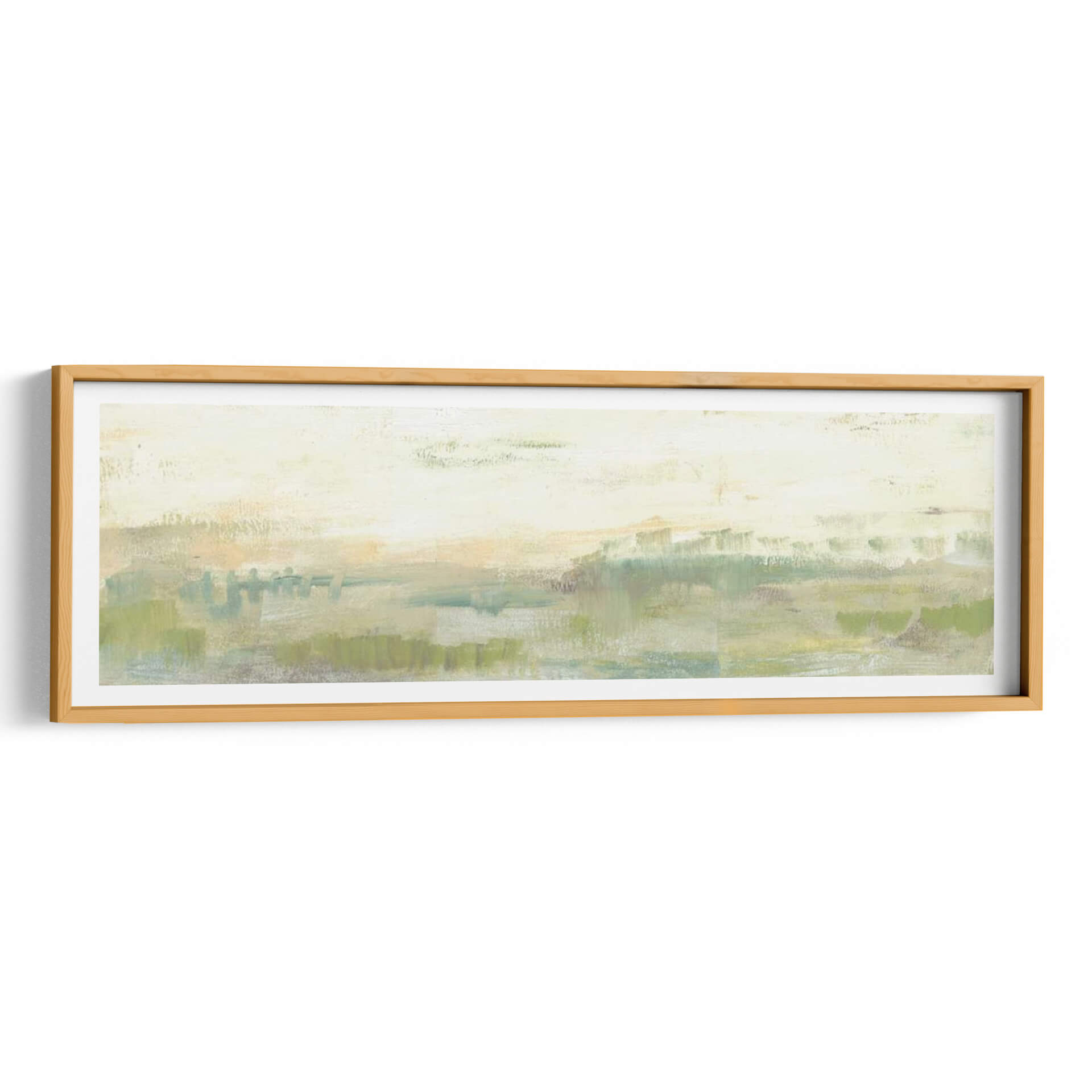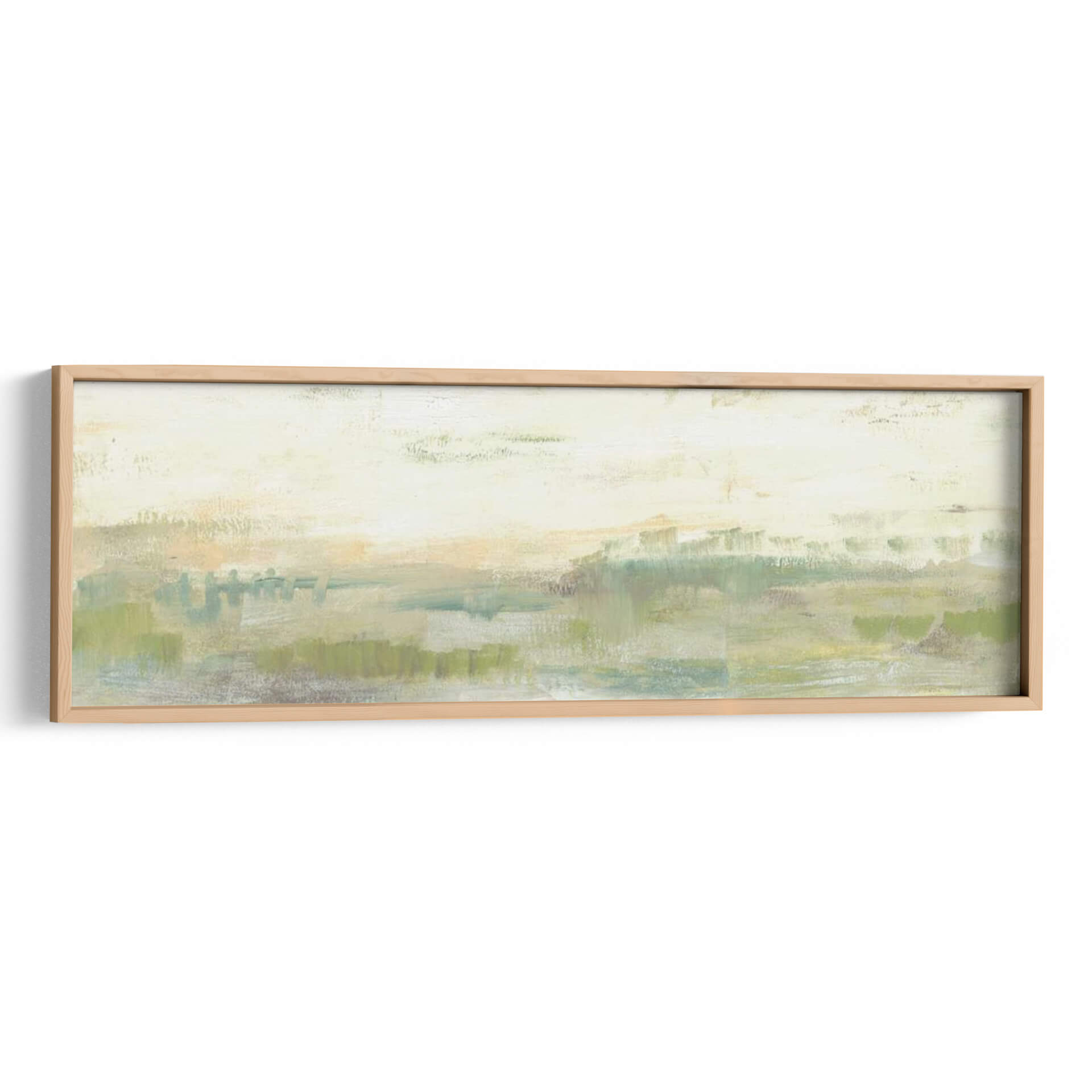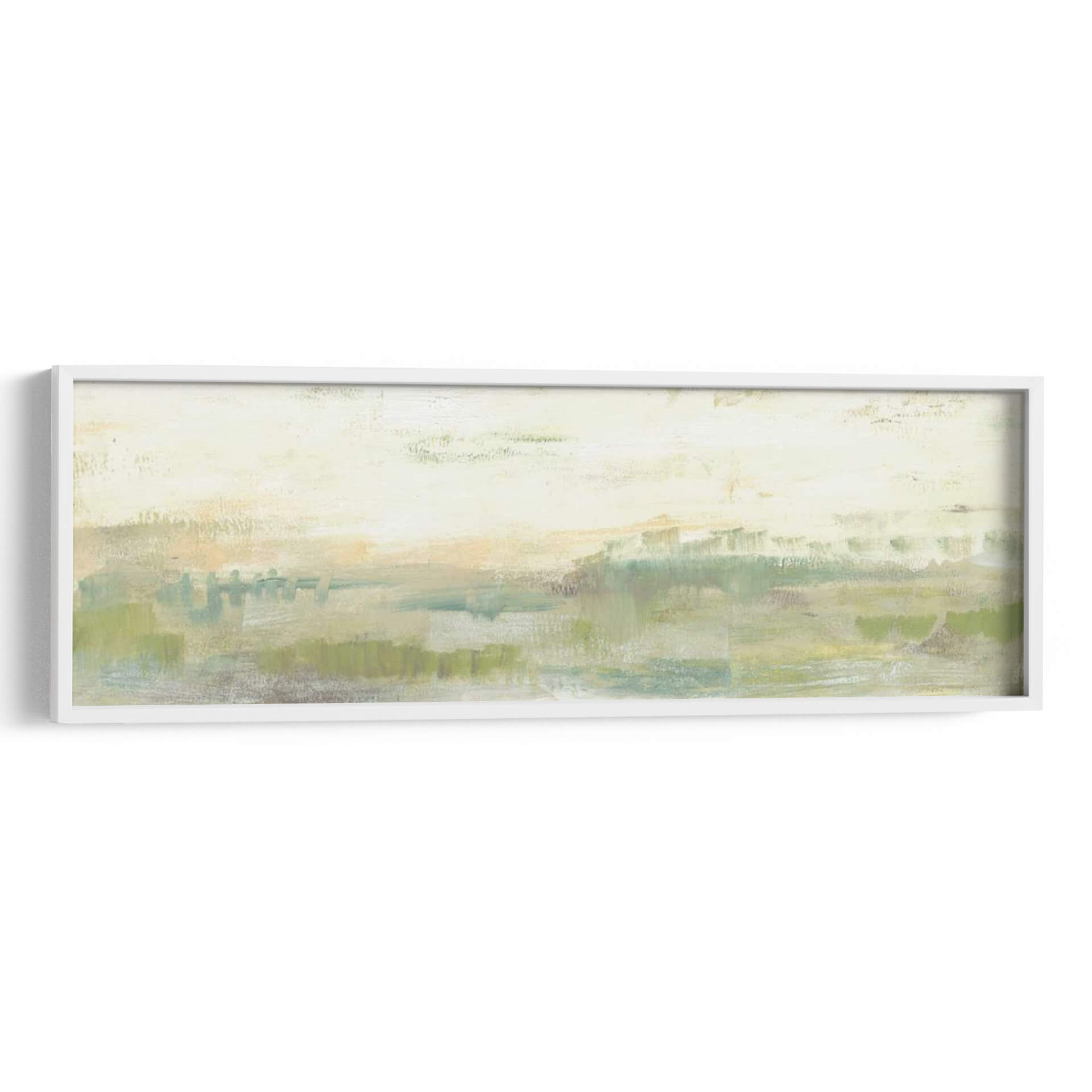 Sumérgete en la serenidad de 'Línea De Horizonte Verde I', una obra de arte contemporáneo que captura la esencia de un paisaje etéreo con pinceladas expresivas. Jennifer Goldberger nos transporta a un espacio de calma y contemplación a través de una paleta de colores suaves, dominada por verdes naturales, toques de ocre y celestes, que evocan la tranquilidad de la naturaleza al amanecer o al atardecer. Su estilo abstracto y minimalista permite una interpretación personal, invitando al espectador a perderse en sus texturas y capas de color. Este cuadro decorativo es perfecto para crear un ambiente relajante en tu hogar u oficina, aportando una sensación de paz y conexión con el entorno natural. La composición horizontal y alargada de la obra la hace ideal para espacios amplios o como pieza central que unifica la decoración. Ya sea que busques un punto focal sutil o una inyección de color terroso y suave, 'Línea De Horizonte Verde I' es una elección sofisticada que realza cualquier ambiente con su belleza atemporal y su mensaje de serenidad.