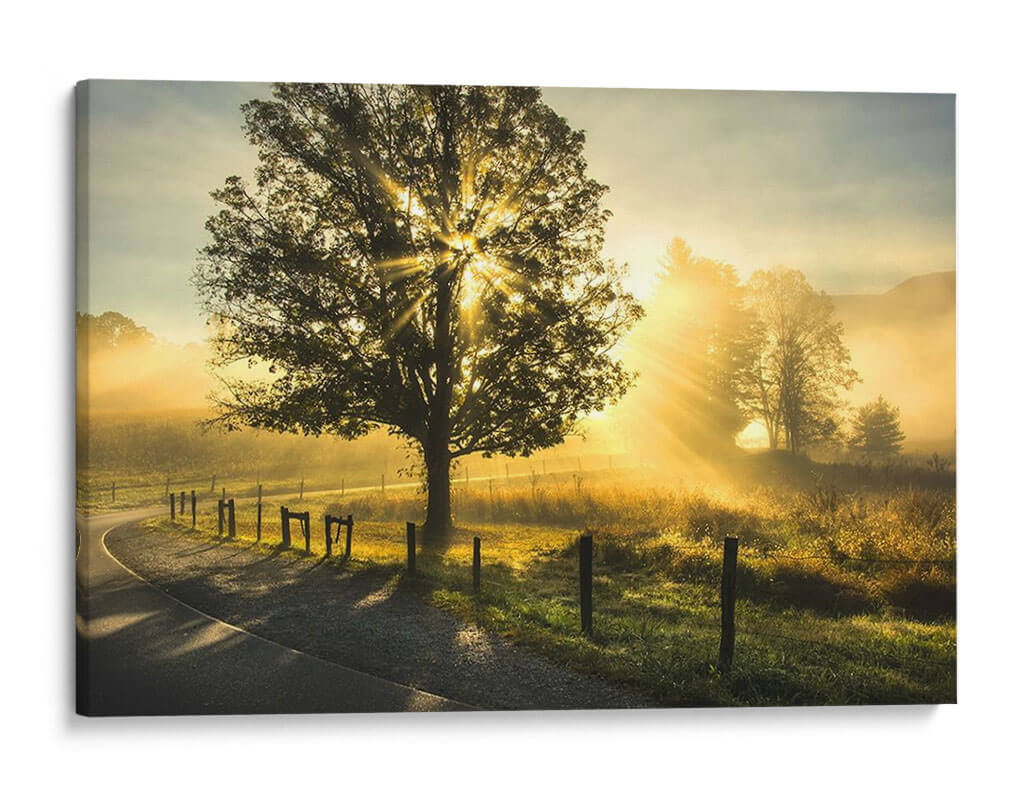Captura la serenidad y la luz dorada de un amanecer campestre con este impresionante cuadro decorativo "Llamada De Despertador Personalizado" de Danny Head. La obra maestra visual transporta al espectador a un paisaje idílico, donde un camino serpentea a través de campos bañados por los primeros rayos del sol. La luz del amanecer se filtra a través de las ramas de un árbol imponente, creando un efecto de rayos de luz que ilumina la neblina matutina y baña la escena en tonos cálidos y dorados. La paleta de colores, dominada por amarillos, naranjas y verdes suaves, evoca una sensación de paz, renovación y esperanza. La composición, que guía la mirada a través del camino hacia el horizonte brumoso, invita a la contemplación y al descubrimiento. Este cuadro es ideal para infundir calma y belleza natural en cualquier espacio, ya sea un dormitorio, una sala de estar o una oficina, convirtiéndose en un punto focal que inspira tranquilidad y un comienzo de día lleno de optimismo. Su estilo fotorealista, con un toque artístico, lo hace versátil para una amplia gama de decoraciones interiores, aportando una atmósfera de naturaleza serena y luminosa a tu hogar.