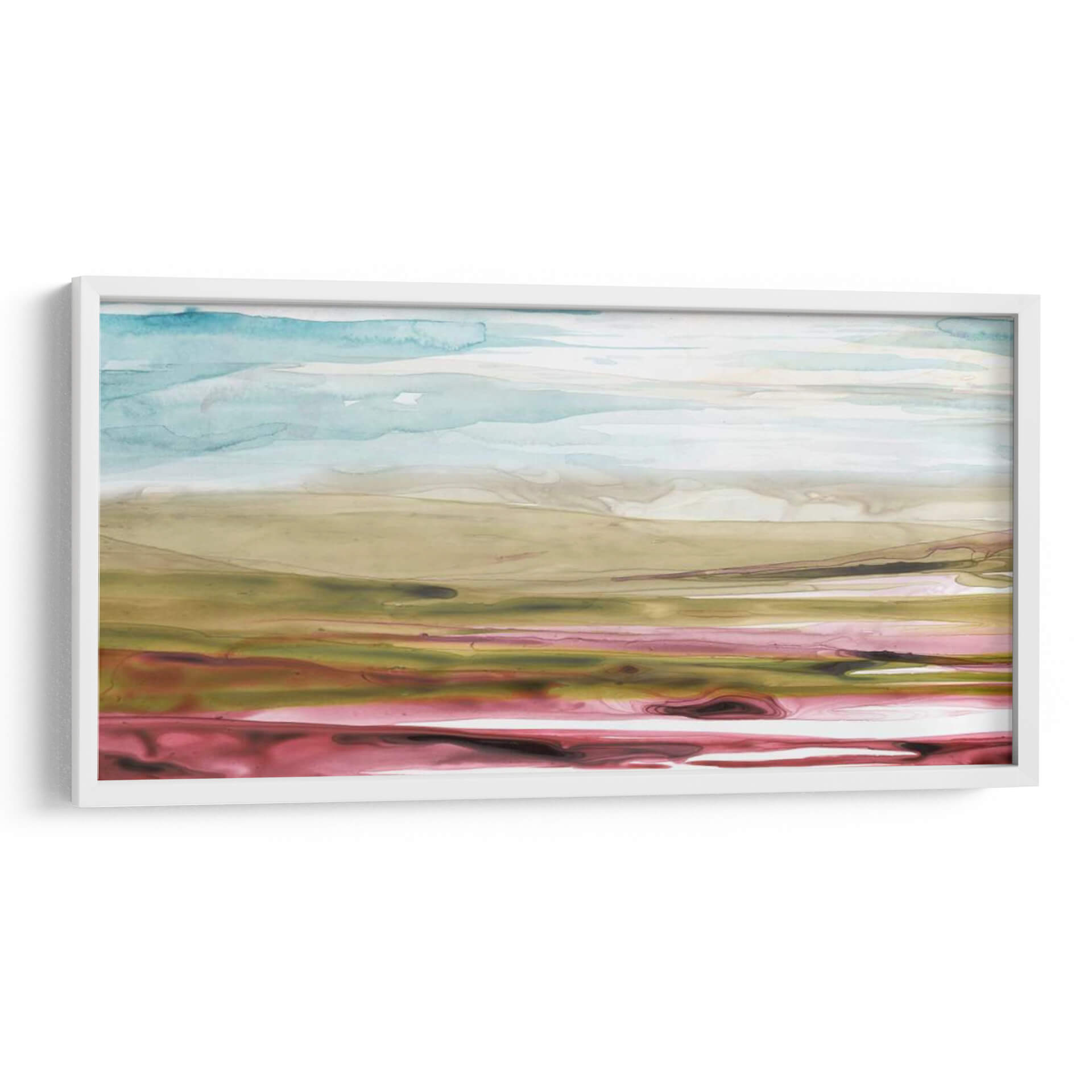 Sumérgete en la serenidad etérea de "Llanuras Solares I", una obra de arte cautivadora del artista Grace Popp. Este cuadro decorativo abstracto evoca la tranquilidad de un paisaje bañado por la luz, con delicadas capas de acuarela que fluyen y se entrelazan. La paleta de colores, que transita suavemente desde celestes etéreos hasta verdes terrosos y vibrantes tonos rosados y rojizos en el primer plano, crea una atmósfera de calma y contemplación. Las pinceladas fluidas y las sutiles transiciones tonales invitan a la reflexión, haciendo de esta pieza un complemento perfecto para cualquier espacio que busque un toque de serenidad y sofisticación. Su estilo abstracto contemporáneo se adapta a una variedad de decoraciones, desde salas de estar modernas hasta dormitorios acogedores o estudios creativos, aportando una sensación de amplitud y paz. "Llanuras Solares I" no es solo una decoración de pared, sino una ventana a un mundo de color y emoción, diseñada para inspirar y elevar tu entorno diario. Descubre la belleza de lo sutil y la potencia del color en esta exquisita pieza de arte contemporáneo.