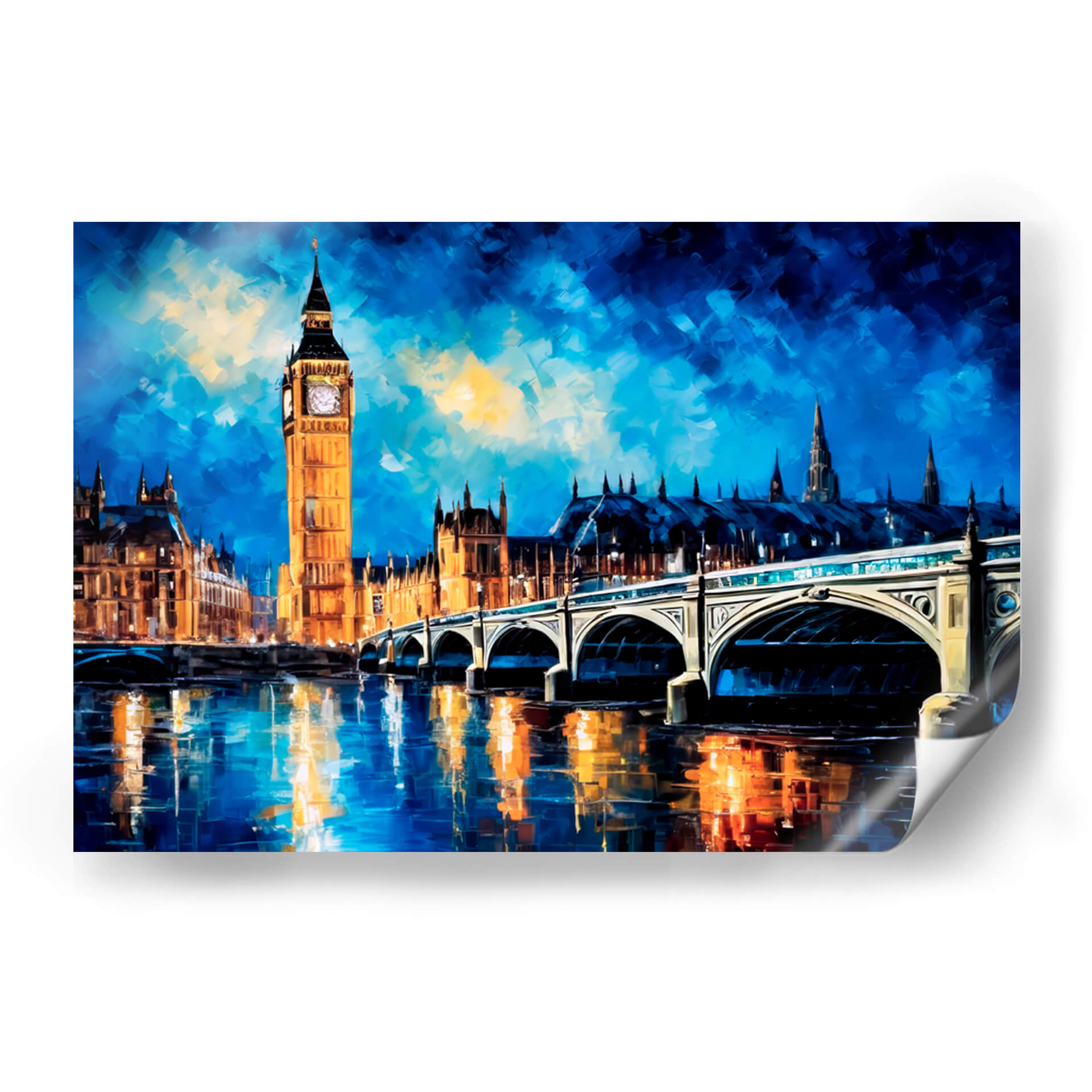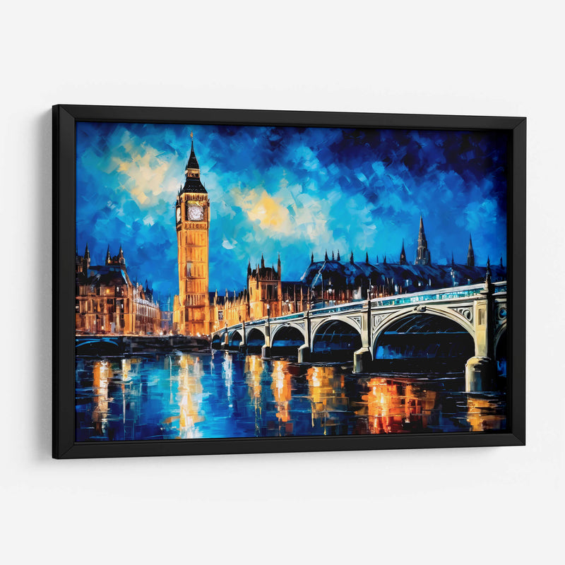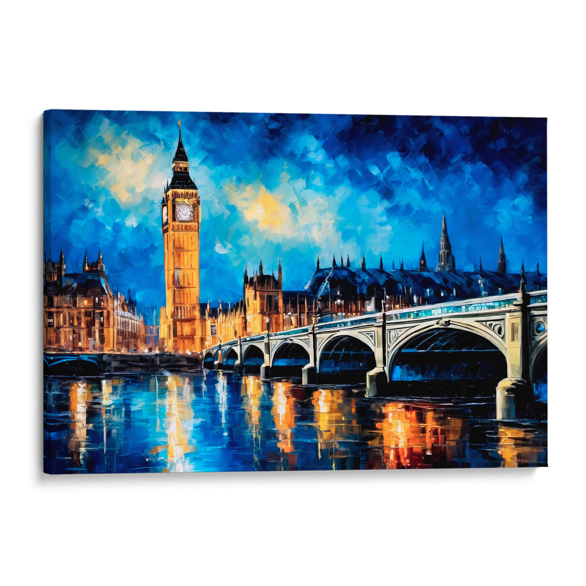 Capture la esencia vibrante de Londres con este impactante cuadro decorativo, inspirado en el distintivo estilo postimpresionista de Van Gogh. La obra representa la icónica silueta del Big Ben y el Palacio de Westminster, bañados por la luz dorada del atardecer o el amanecer, con el río Támesis reflejando intensamente los colores cálidos y las luces urbanas. Las pinceladas audaces y texturizadas evocan la energía y el movimiento característicos del maestro holandés, transformando un paisaje urbano familiar en una explosión de color y emoción. Los azules profundos del cielo contrastan magistralmente con los ocres y naranjas de los edificios y sus reflejos acuáticos, creando una atmósfera dinámica y cautivadora. Este cuadro decorativo es ideal para añadir un toque de sofisticación y vitalidad a cualquier sala de estar, estudio u oficina, convirtiéndose en un punto focal que invita a la contemplación y al diálogo. Su interpretación artística de un hito mundial lo hace perfecto para amantes del arte, viajeros y aquellos que buscan una pieza decorativa única y llena de carácter.