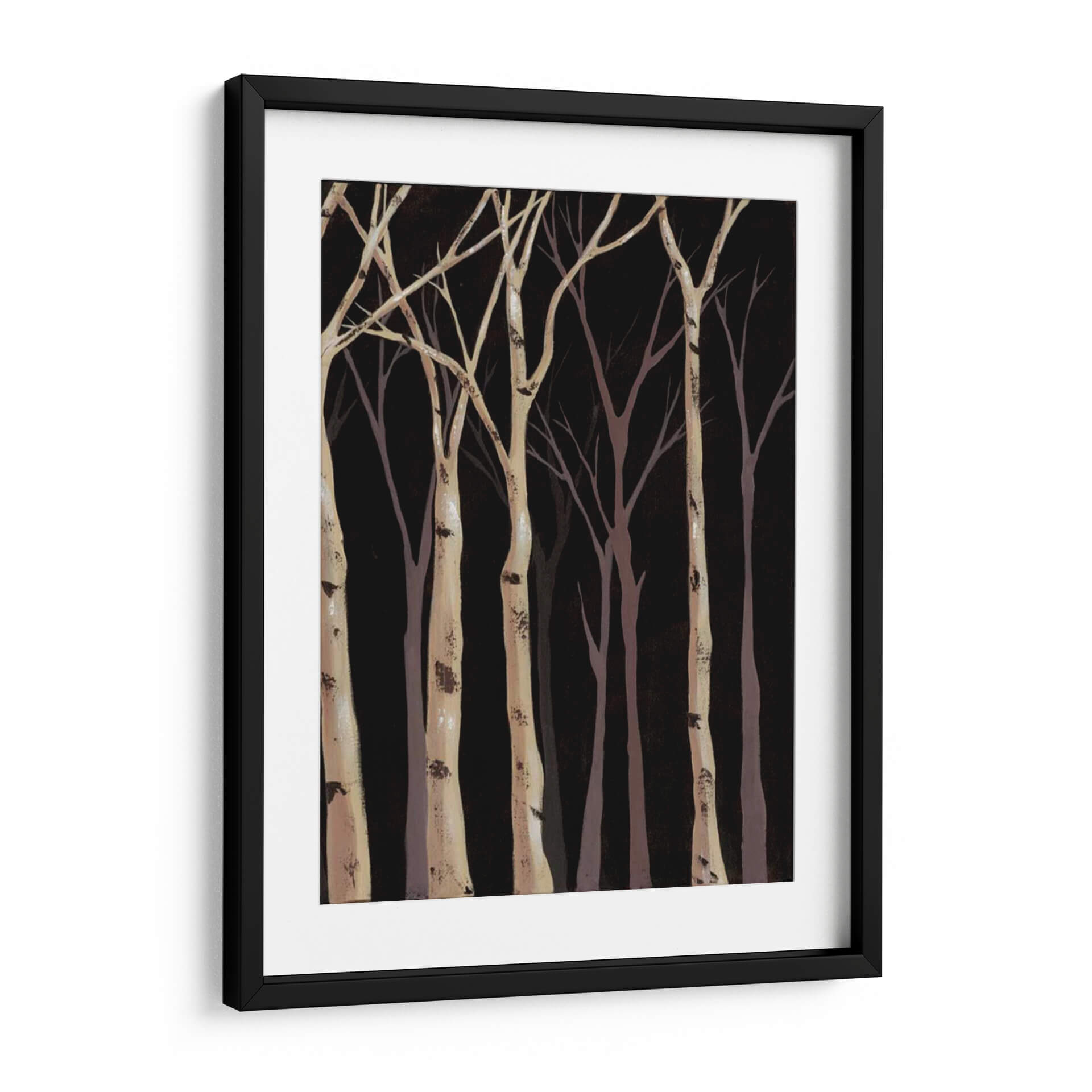 Sumérgete en la serena y enigmática atmósfera de "Los Abedules Medianoche II", una obra de arte contemporáneo que captura la belleza etérea de un bosque nocturno. La artista Jade Reynolds nos presenta un cautivador paisaje donde los troncos de abedules se alzan con gracia contra un fondo de profunda oscuridad, salpicado por sutiles tonos de gris y morado. La paleta de colores, dominada por cremas, beiges y sombras profundas, crea un contraste hipnótico que invita a la contemplación. Las líneas finas y entrelazadas de las ramas desnudas añaden una textura visual intrigante, sugiriendo un momento de quietud invernal o el misterio de la noche. Este cuadro decorativo es perfecto para quienes buscan infundir calma y sofisticación en su hogar u oficina. Ideal para salas de estar, dormitorios o incluso pasillos, "Los Abedules Medianoche II" actúa como un portal a un mundo de tranquilidad y belleza natural, aportando un toque de elegancia sutil a cualquier espacio. Su estilo único, que combina elementos figurativos con una sensibilidad abstracta, lo convierte en una pieza versátil capaz de complementar una amplia gama de decoraciones interiores, desde las más modernas hasta las más clásicas. Deja que esta obra de arte transforme tu entorno y despierte sensaciones de paz y asombro.
