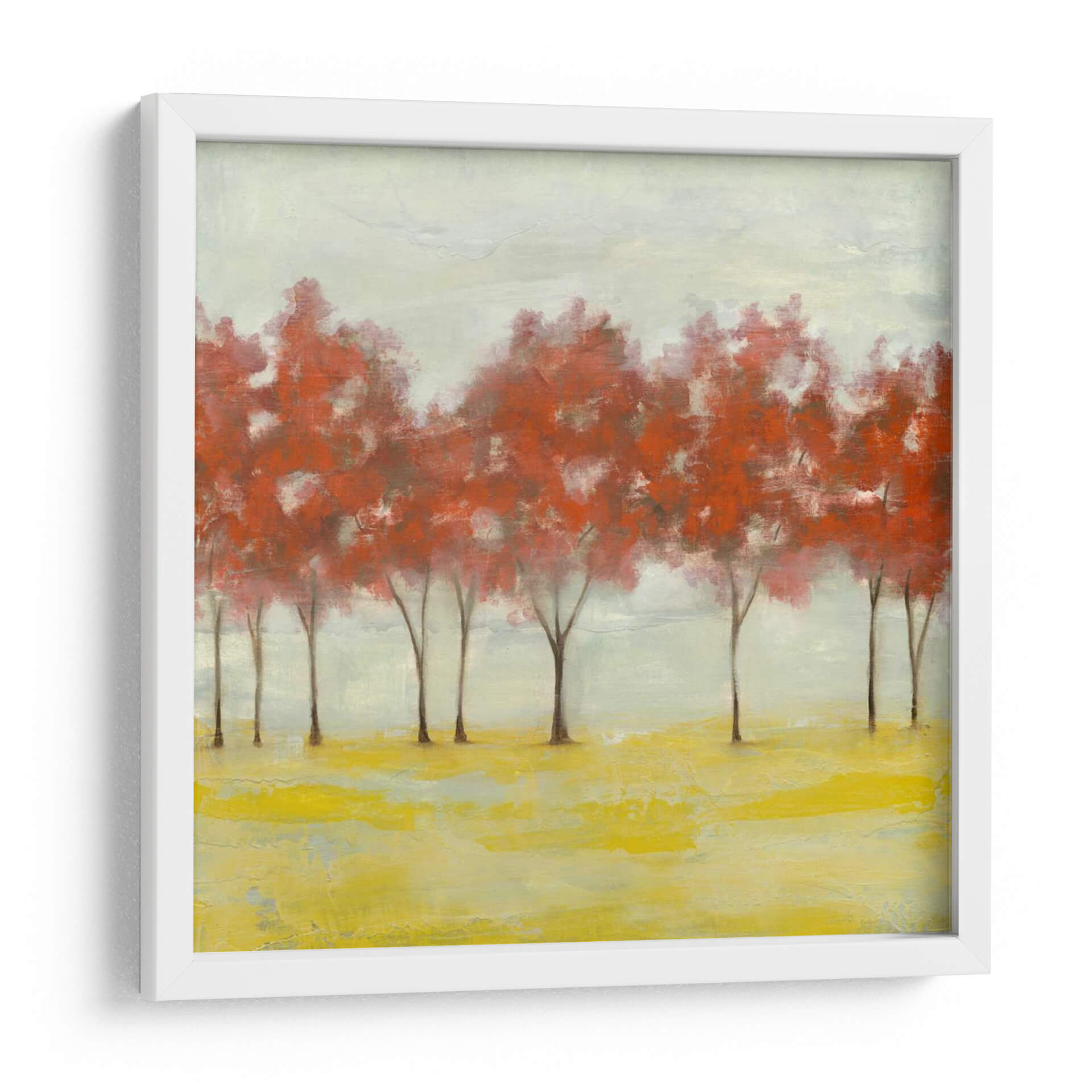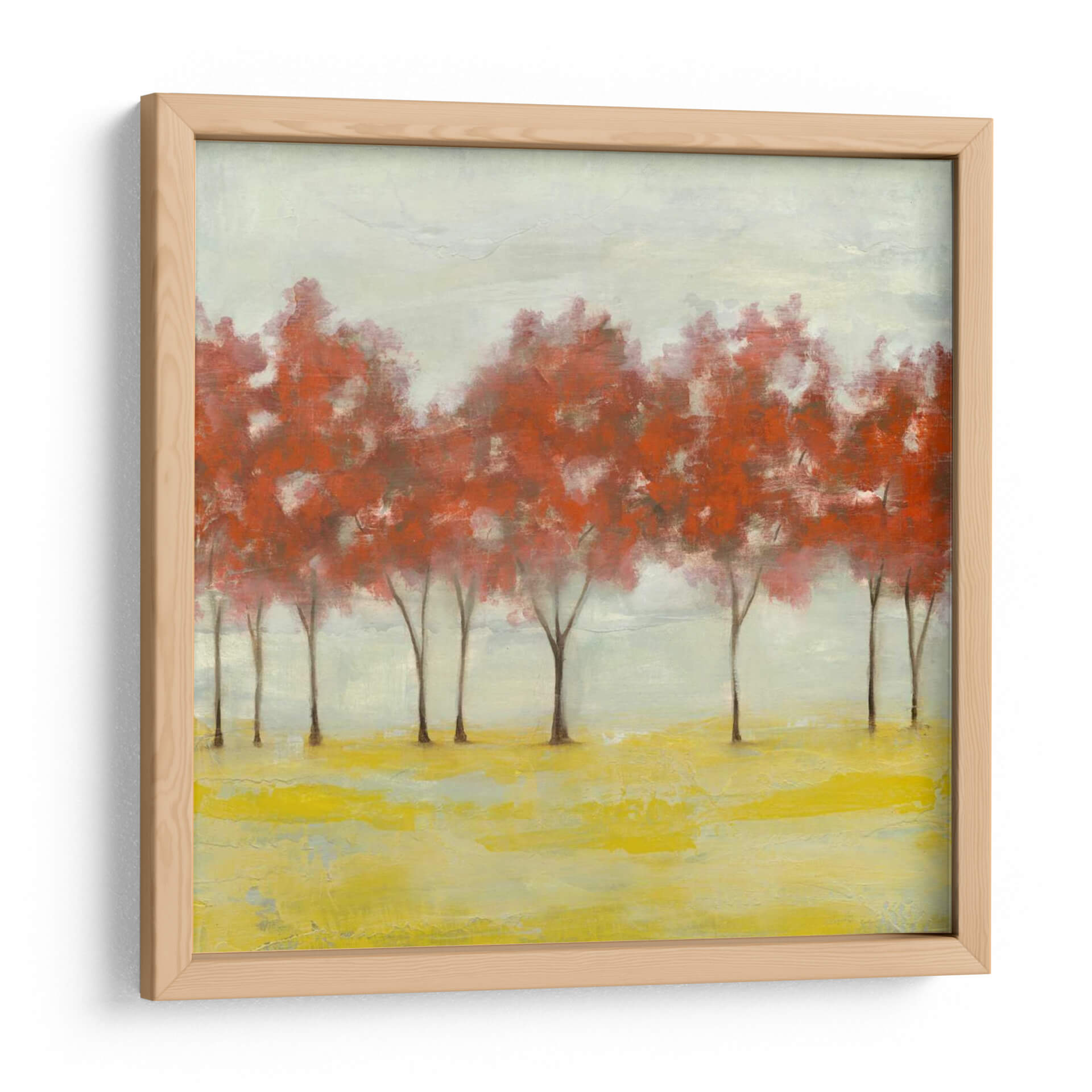 Sumérgete en la evocadora belleza de "Los Árboles De La Terracota I", una obra de arte contemporáneo de Jennifer Goldberger que captura la esencia de un paisaje otoñal con un toque vibrante. Los árboles, representados con pinceladas audaces en tonos terracota y rojos intensos, se alinean en una composición armoniosa, evocando una sensación de calidez y vitalidad. El fondo, con sutiles matices de gris y azul pálido, crea una atmósfera etérea y serena, mientras que el primer plano se baña en un amarillo luminoso que aporta energía y contraste. Esta pieza, con su estilo semi-abstracto y texturas ricas, es ideal para transformar cualquier espacio en un refugio de estilo y color. Imagina este cuadro decorativo como un punto focal en tu sala de estar moderna, aportando un toque de naturaleza estilizada a tu oficina, o añadiendo una pincelada de sofisticación a tu comedor. "Los Árboles De La Terracota I" no es solo una obra de arte, sino una invitación a la contemplación y a la apreciación de la belleza en su forma más expresiva, perfecta para quienes buscan añadir carácter y emoción a su decoración.