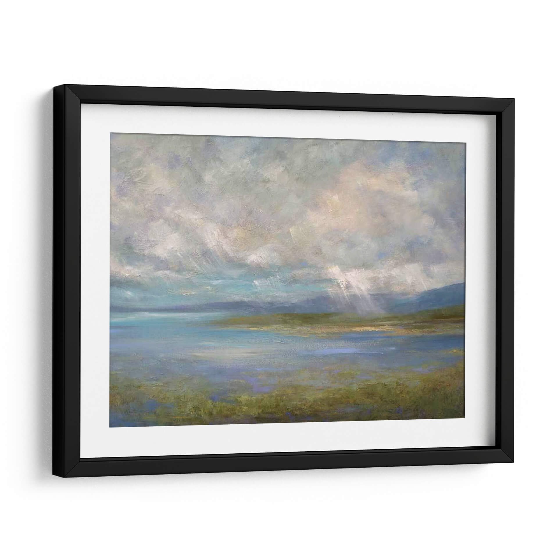Sumérgete en la serenidad de "Luces De South Bay", una obra de arte que captura la atmósfera etérea de un paisaje costero bañado por rayos de luz celestial. Sheila Finch nos transporta a un momento de quietud y belleza natural, donde el cielo nublado se abre para dejar pasar haces de luz que iluminan el agua tranquila y la vegetación exuberante. La paleta de colores, dominada por azules serenos, verdes terrosos y toques de blanco y gris en las nubes, crea una sensación de calma profunda y contemplación. El estilo impresionista de Finch, con pinceladas sueltas y expresivas, añade textura y vida a la escena, invitando al espectador a sentir la brisa marina y la luz radiante. Este cuadro decorativo es ideal para crear un oasis de paz en tu hogar u oficina, aportando un toque de naturaleza inspiradora y sofisticación a cualquier espacio. Transforma tu ambiente con esta pieza que evoca la magia de la luz y la tranquilidad de la costa.