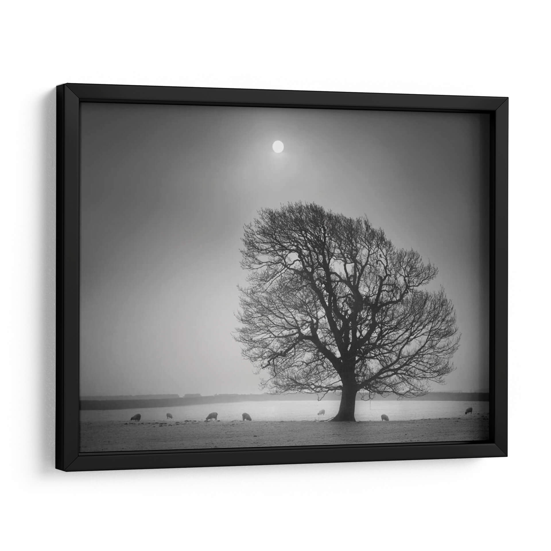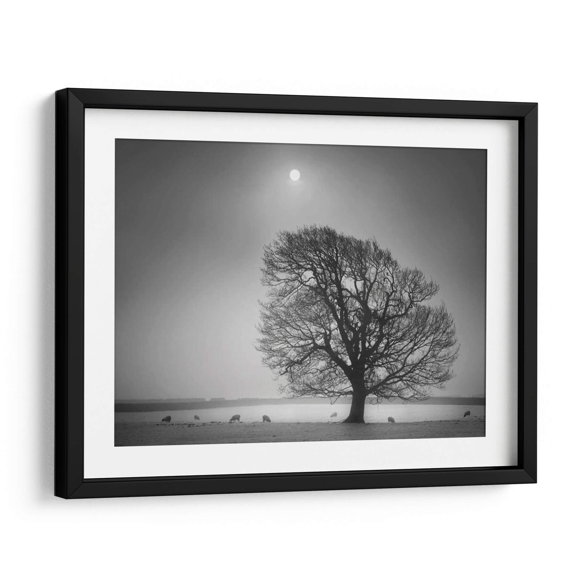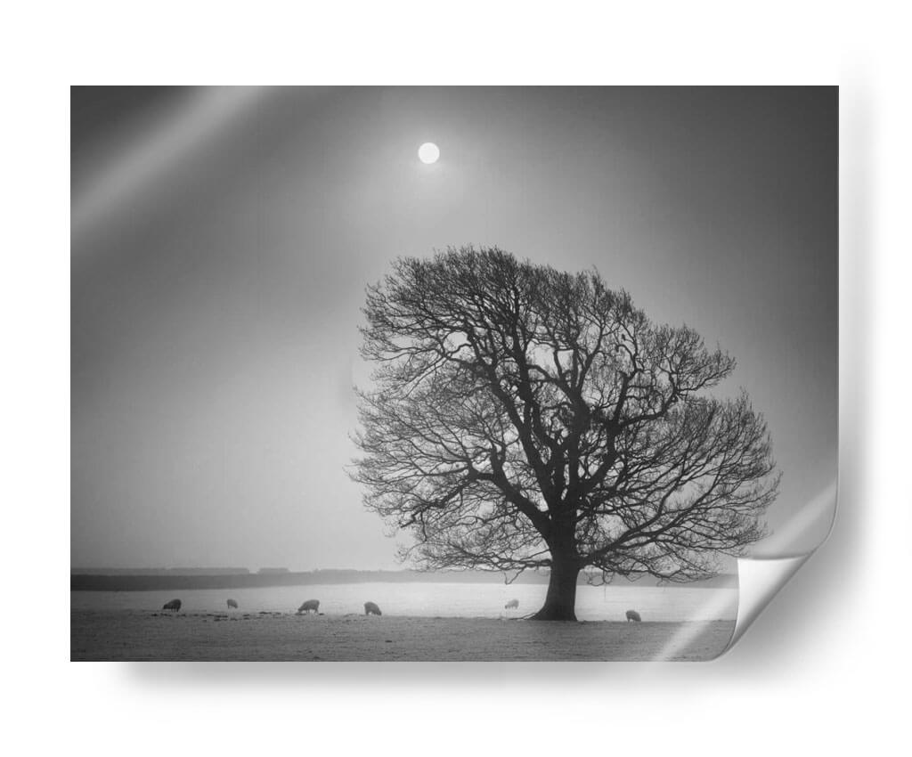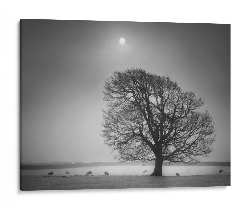 Sumérgete en la serena belleza de "Luz De La Tarde II", una obra maestra de Martin Henson que captura la esencia de un paisaje campestre bañado por una luz tenue y etérea. Este cuadro decorativo, presentado en una cautivadora escala de grises, evoca una profunda sensación de paz y contemplación. El protagonista es un árbol majestuoso, cuyas ramas desnudas se extienden como intrincadas venas contra un cielo brumoso, coronado por un sol difuso que parece ser el único testigo del paso del tiempo. A lo lejos, unas ovejas pastan tranquilamente, añadiendo un toque de vida rústica y orgánica a la escena, creando una atmósfera de simplicidad y conexión con la naturaleza. La composición, con su horizonte bajo y el vasto cielo, genera una sensación de amplitud y melancolía reflexiva. "Luz De La Tarde II" es ideal para aquellos que buscan infundir a su hogar u oficina una atmósfera de calma, introspección y elegancia atemporal. Este cuadro decorativo transformará cualquier espacio en un refugio de tranquilidad, perfecto para salas de estar, dormitorios o estudios que anhelan un toque de serenidad y sofisticación natural.
