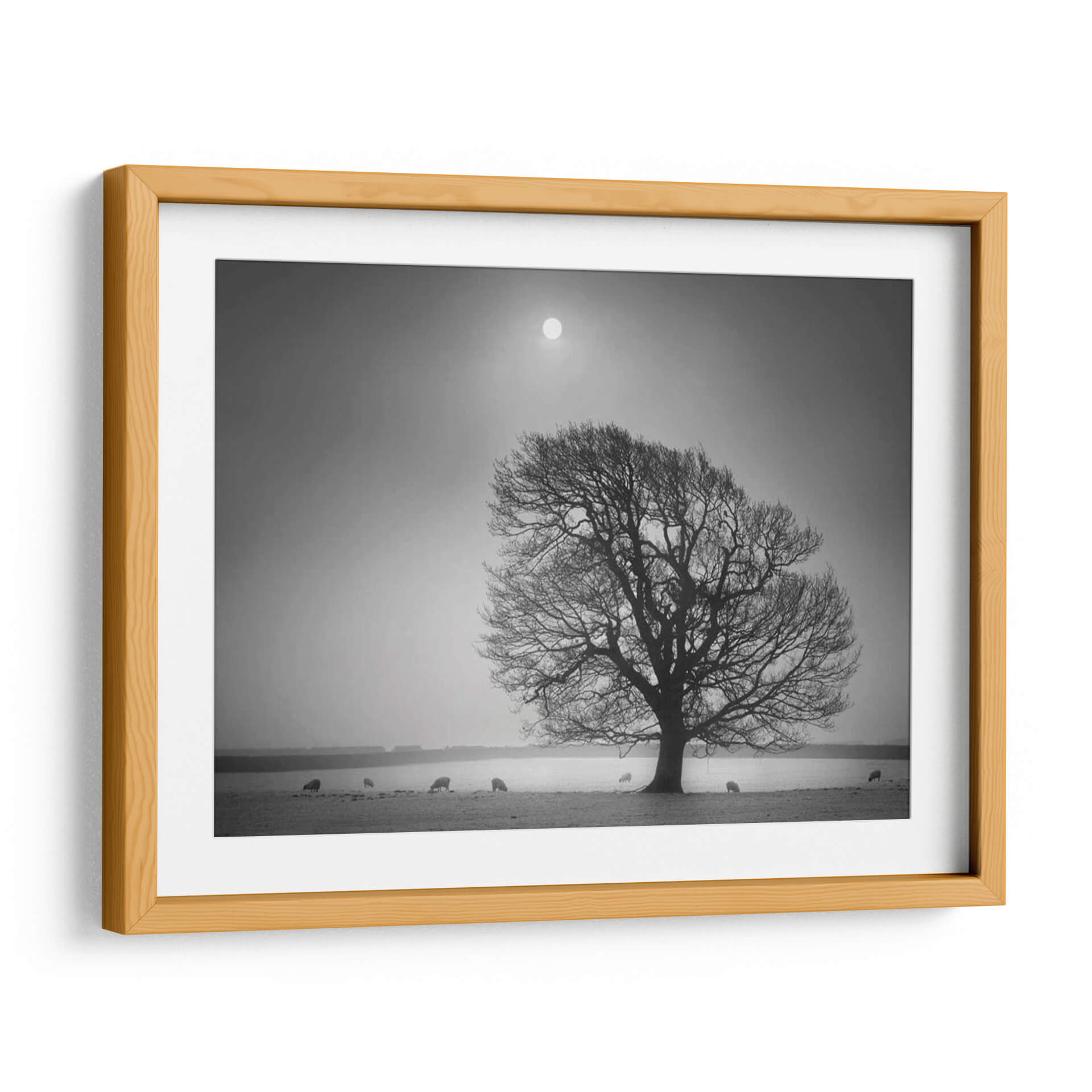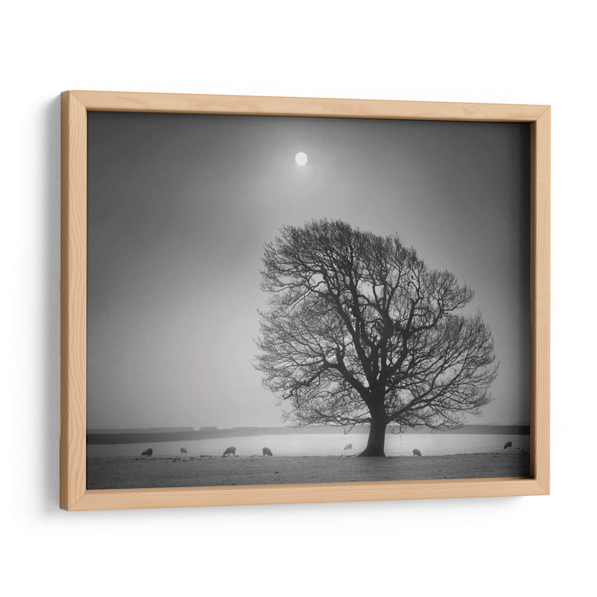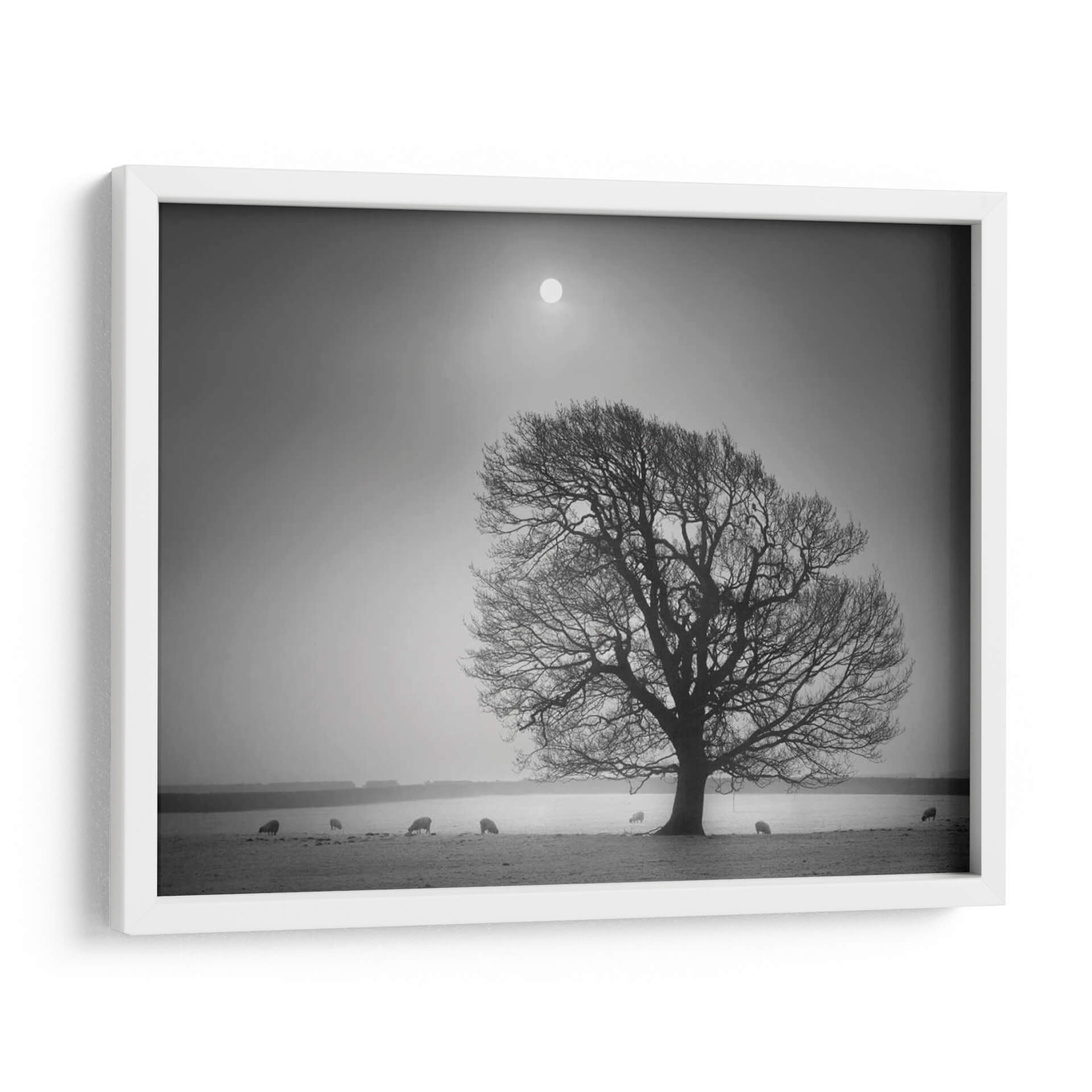 Sumérgete en la serena belleza de "Luz De La Tarde II", una obra maestra de Martin Henson que captura la esencia de un paisaje campestre bañado por una luz tenue y etérea. Este cuadro decorativo, presentado en una cautivadora escala de grises, evoca una profunda sensación de paz y contemplación. El protagonista es un árbol majestuoso, cuyas ramas desnudas se extienden como intrincadas venas contra un cielo brumoso, coronado por un sol difuso que parece ser el único testigo del paso del tiempo. A lo lejos, unas ovejas pastan tranquilamente, añadiendo un toque de vida rústica y orgánica a la escena, creando una atmósfera de simplicidad y conexión con la naturaleza. La composición, con su horizonte bajo y el vasto cielo, genera una sensación de amplitud y melancolía reflexiva. "Luz De La Tarde II" es ideal para aquellos que buscan infundir a su hogar u oficina una atmósfera de calma, introspección y elegancia atemporal. Este cuadro decorativo transformará cualquier espacio en un refugio de tranquilidad, perfecto para salas de estar, dormitorios o estudios que anhelan un toque de serenidad y sofisticación natural.