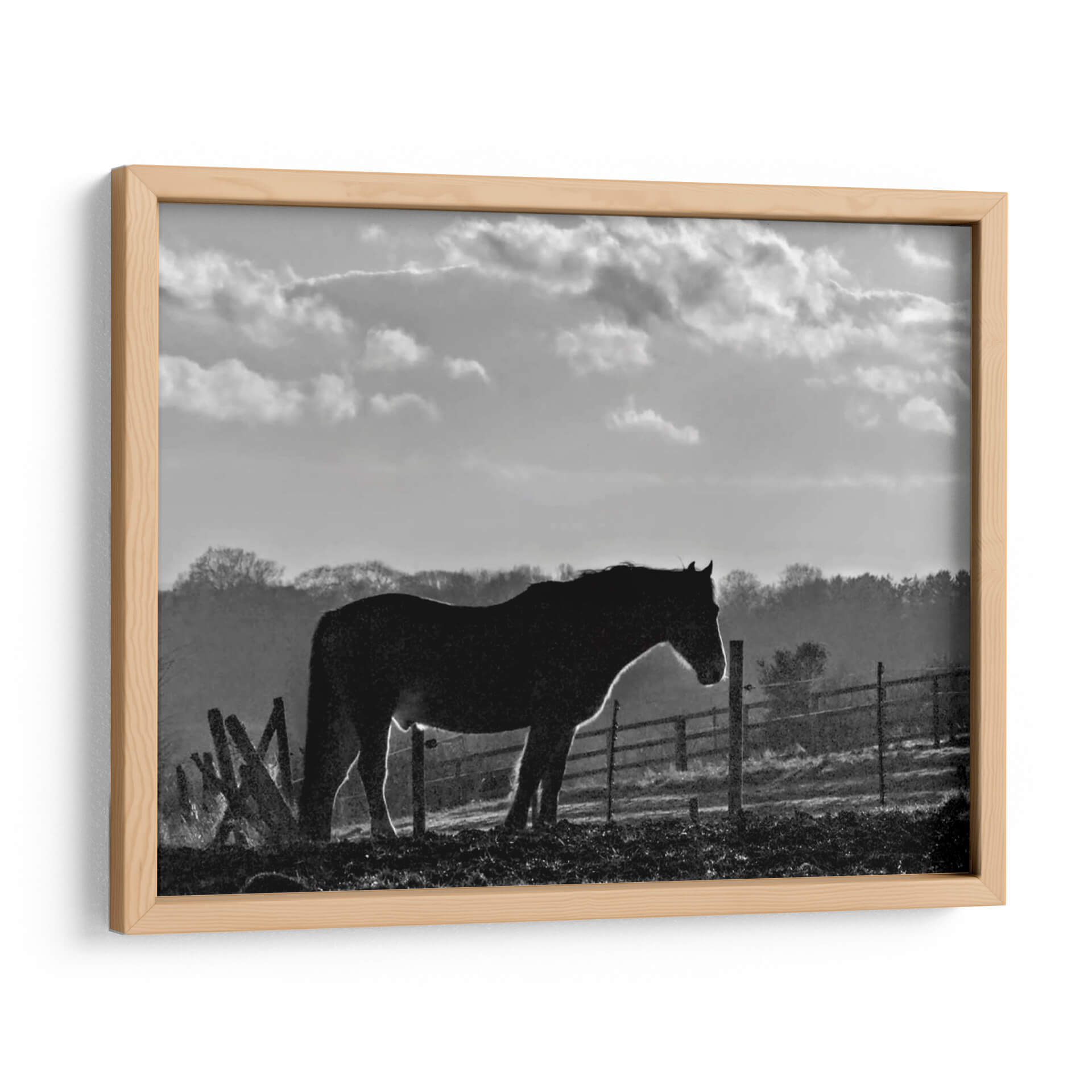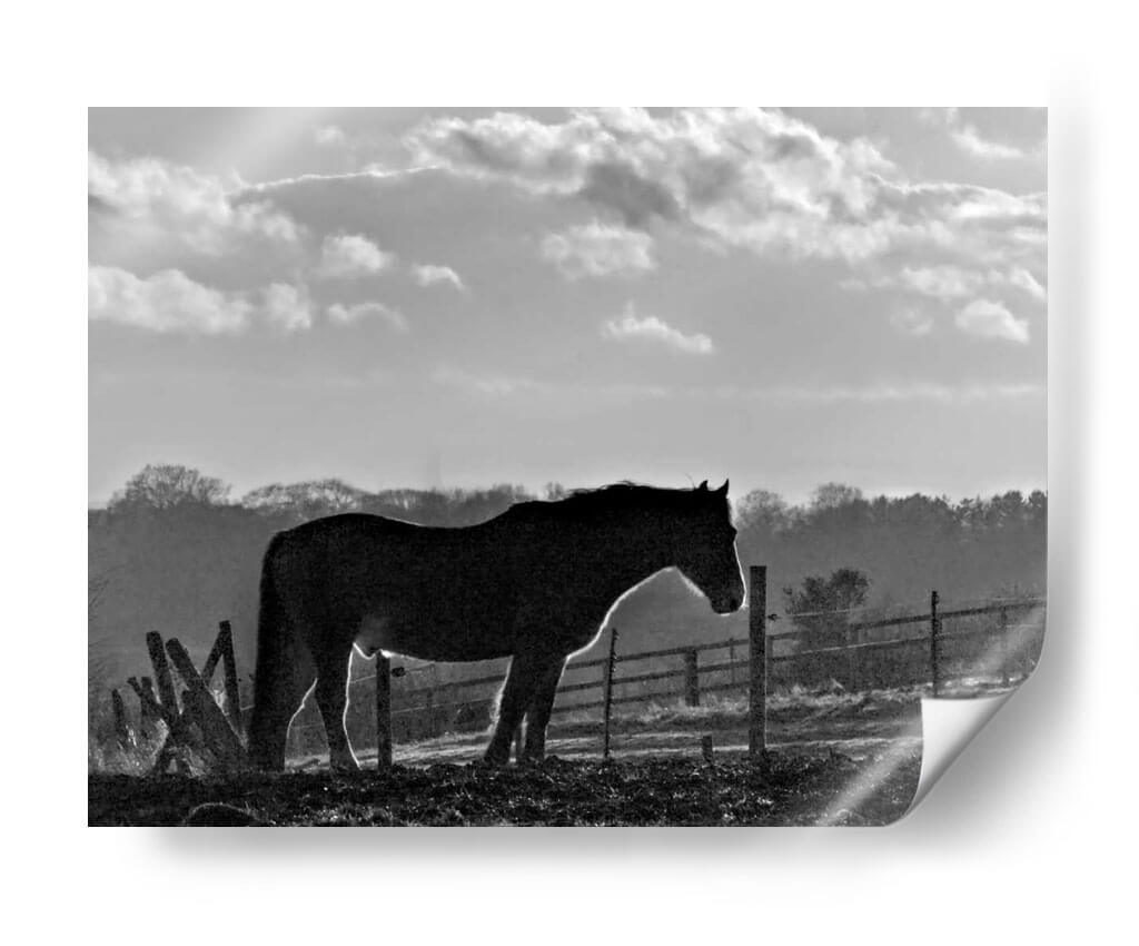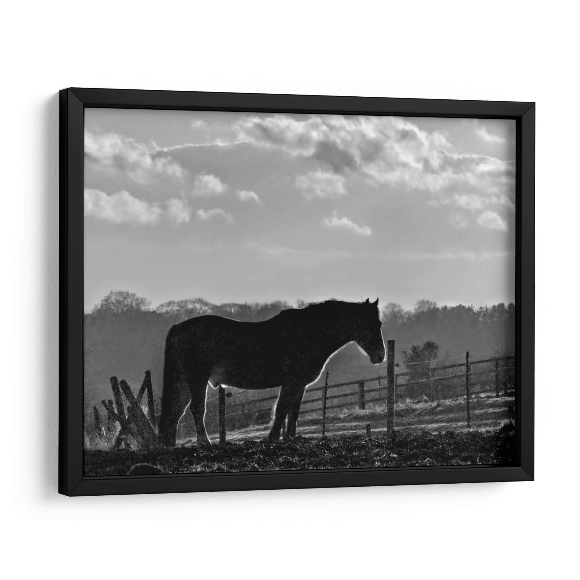 Captura la majestuosidad y la serenidad de la naturaleza con "Luz De La Tarde III", una obra de Martin Henson que te transportará a un atardecer campestre. Este cuadro decorativo en blanco y negro presenta la silueta de un caballo solitario, recortado contra un cielo dramático y nubes texturizadas. La iluminación suave y difusa que envuelve la figura del equino crea una atmósfera de introspección y calma, invitando a la contemplación. La composición, con el caballo de pie junto a una valla rústica, evoca una sensación de libertad y conexión con el entorno rural. Los tonos grises y las sutiles variaciones de luz y sombra añaden profundidad y realismo a la escena, mientras que la simplicidad del estilo fotográfico resalta la belleza del sujeto y el paisaje. Ideal para añadir un toque de elegancia rústica y paz a tu sala de estar, dormitorio o estudio. Este cuadro decorativo es perfecto para amantes de los caballos, la fotografía de paisajes y aquellos que buscan una pieza de arte atemporal y evocadora para su hogar u oficina. Transforma tu espacio con la quietud y la fuerza de "Luz De La Tarde III".