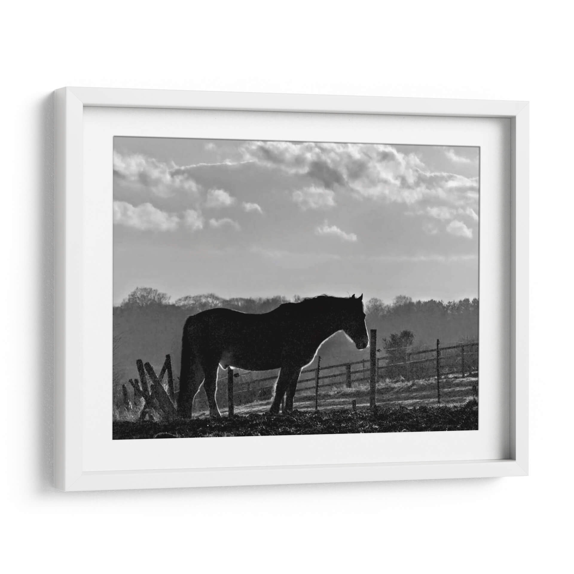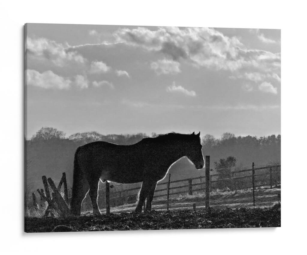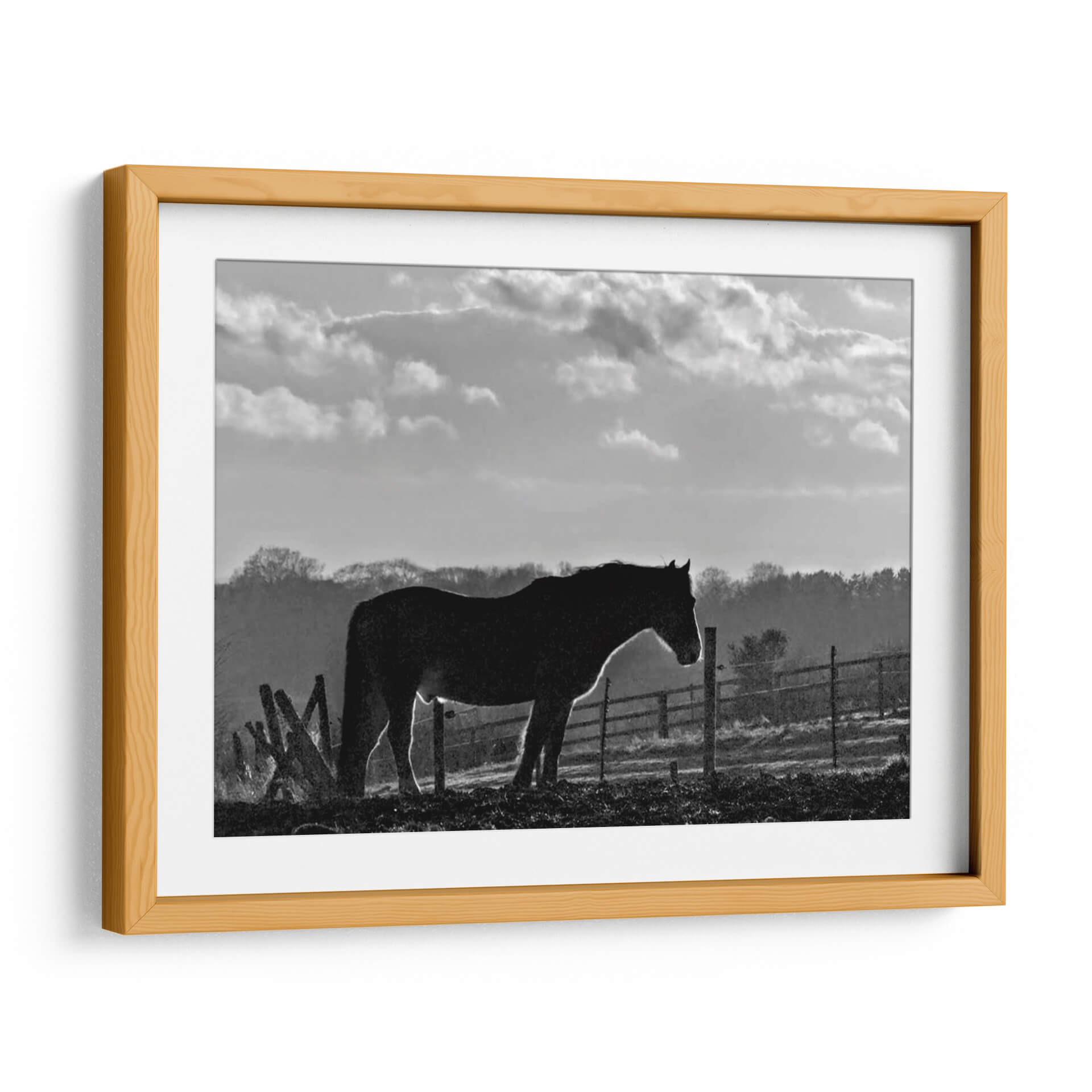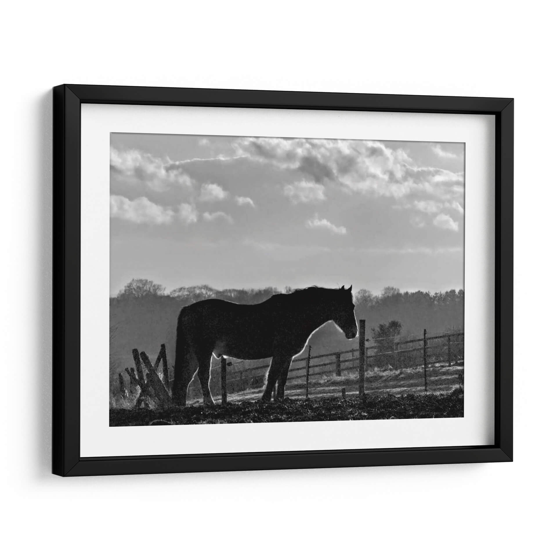 Captura la majestuosidad y la serenidad de la naturaleza con "Luz De La Tarde III", una obra de Martin Henson que te transportará a un atardecer campestre. Este cuadro decorativo en blanco y negro presenta la silueta de un caballo solitario, recortado contra un cielo dramático y nubes texturizadas. La iluminación suave y difusa que envuelve la figura del equino crea una atmósfera de introspección y calma, invitando a la contemplación. La composición, con el caballo de pie junto a una valla rústica, evoca una sensación de libertad y conexión con el entorno rural. Los tonos grises y las sutiles variaciones de luz y sombra añaden profundidad y realismo a la escena, mientras que la simplicidad del estilo fotográfico resalta la belleza del sujeto y el paisaje. Ideal para añadir un toque de elegancia rústica y paz a tu sala de estar, dormitorio o estudio. Este cuadro decorativo es perfecto para amantes de los caballos, la fotografía de paisajes y aquellos que buscan una pieza de arte atemporal y evocadora para su hogar u oficina. Transforma tu espacio con la quietud y la fuerza de "Luz De La Tarde III".