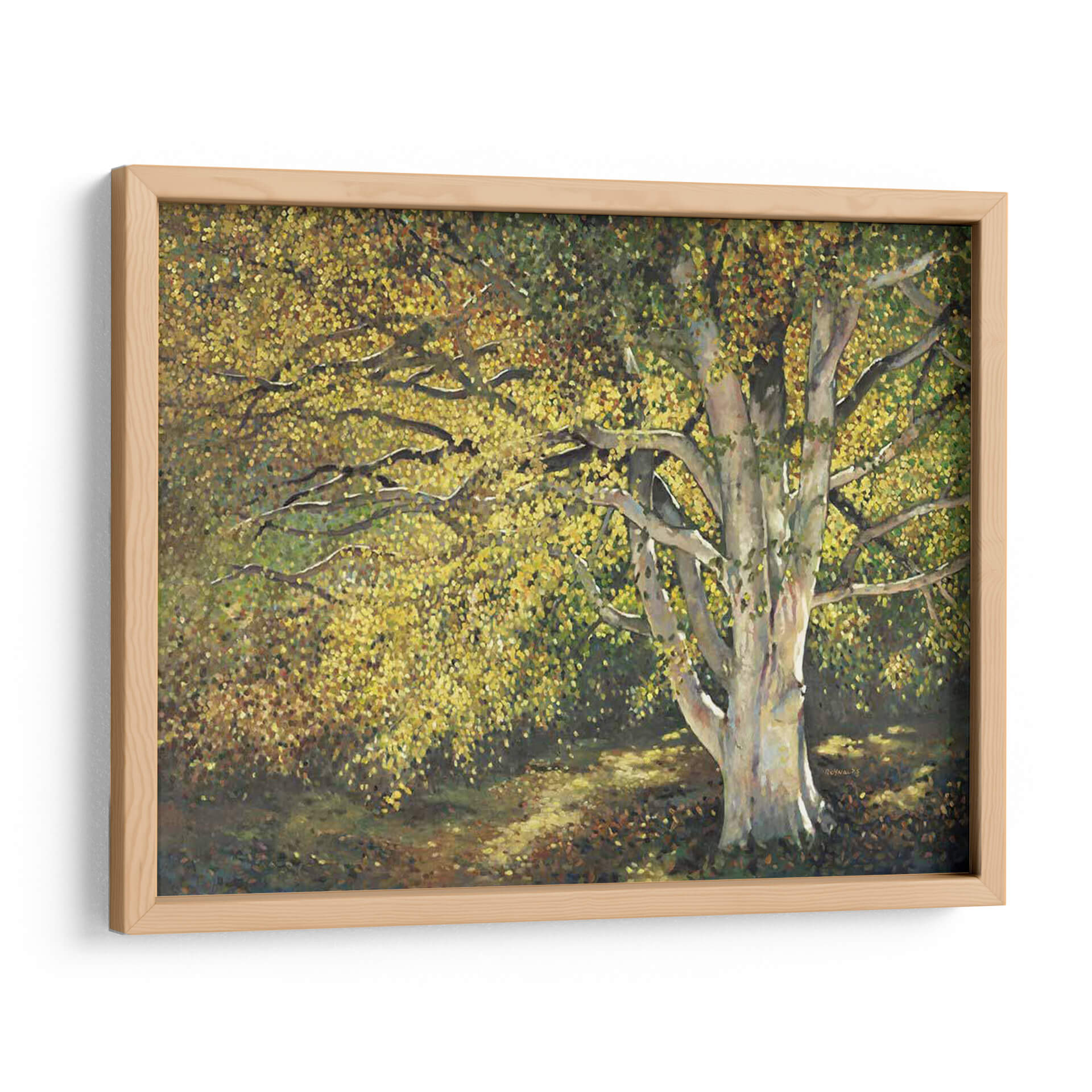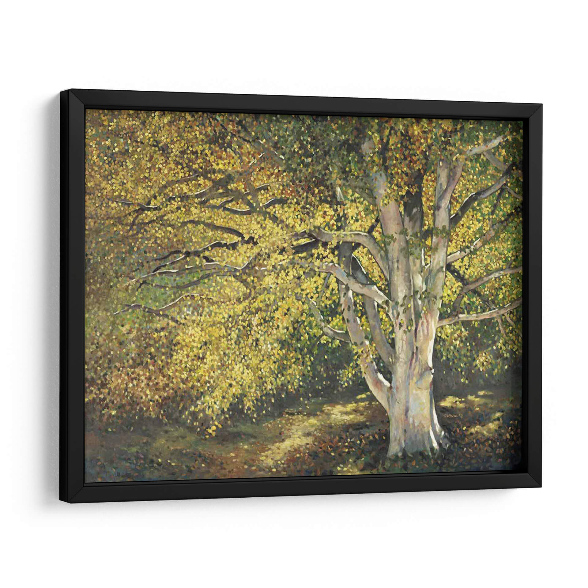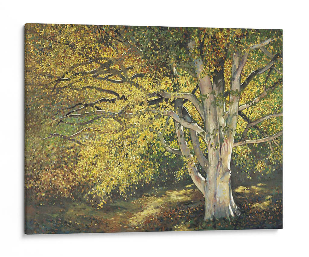 Sumérgete en la serenidad otoñal con "Luz De Oro Personalizada I (Ceniza)" de Graham Reynolds, una obra de arte que captura la esencia de un árbol majestuoso bañado en la luz dorada del sol. La técnica impresionista de Reynolds da vida a las hojas vibrantes y a la corteza texturizada, creando una atmósfera de calidez y tranquilidad. Los tonos tierra y los acentos de oro se entrelazan, ofreciendo una paleta de colores rica y envolvente que transformará cualquier espacio. Este cuadro decorativo es perfecto para quienes buscan añadir un toque de naturaleza y paz a su hogar u oficina. Imagina la luz dorada filtrándose a través de las ramas, proyectando sombras danzantes en el suelo cubierto de hojas; una escena que invita a la contemplación y al descanso. Ideal para salas de estar, dormitorios o estudios, esta pieza evoca la belleza efímera del otoño y la fortaleza perdurable de la naturaleza, convirtiéndose en un punto focal lleno de elegancia y serenidad. Añade esta obra maestra a tu colección y deja que su luz dorada ilumine tus días.