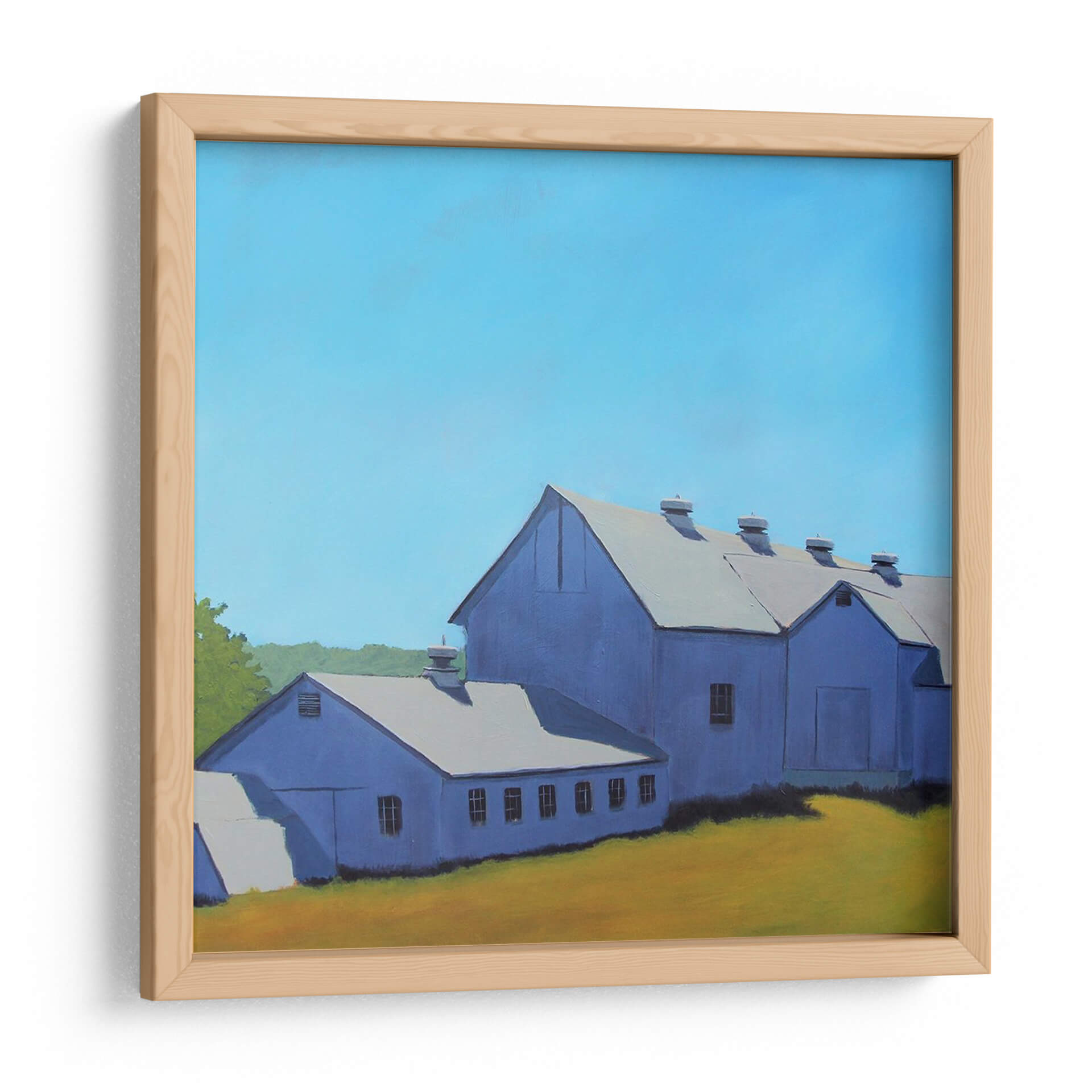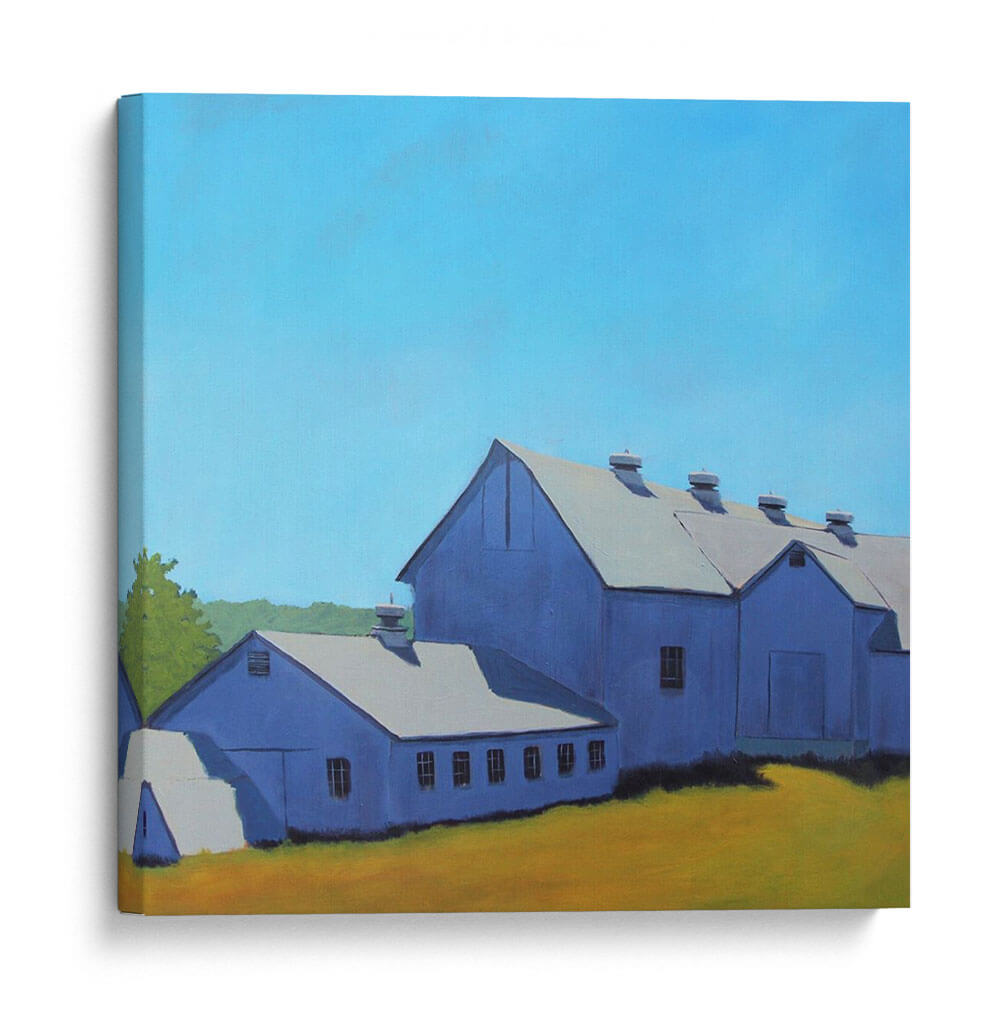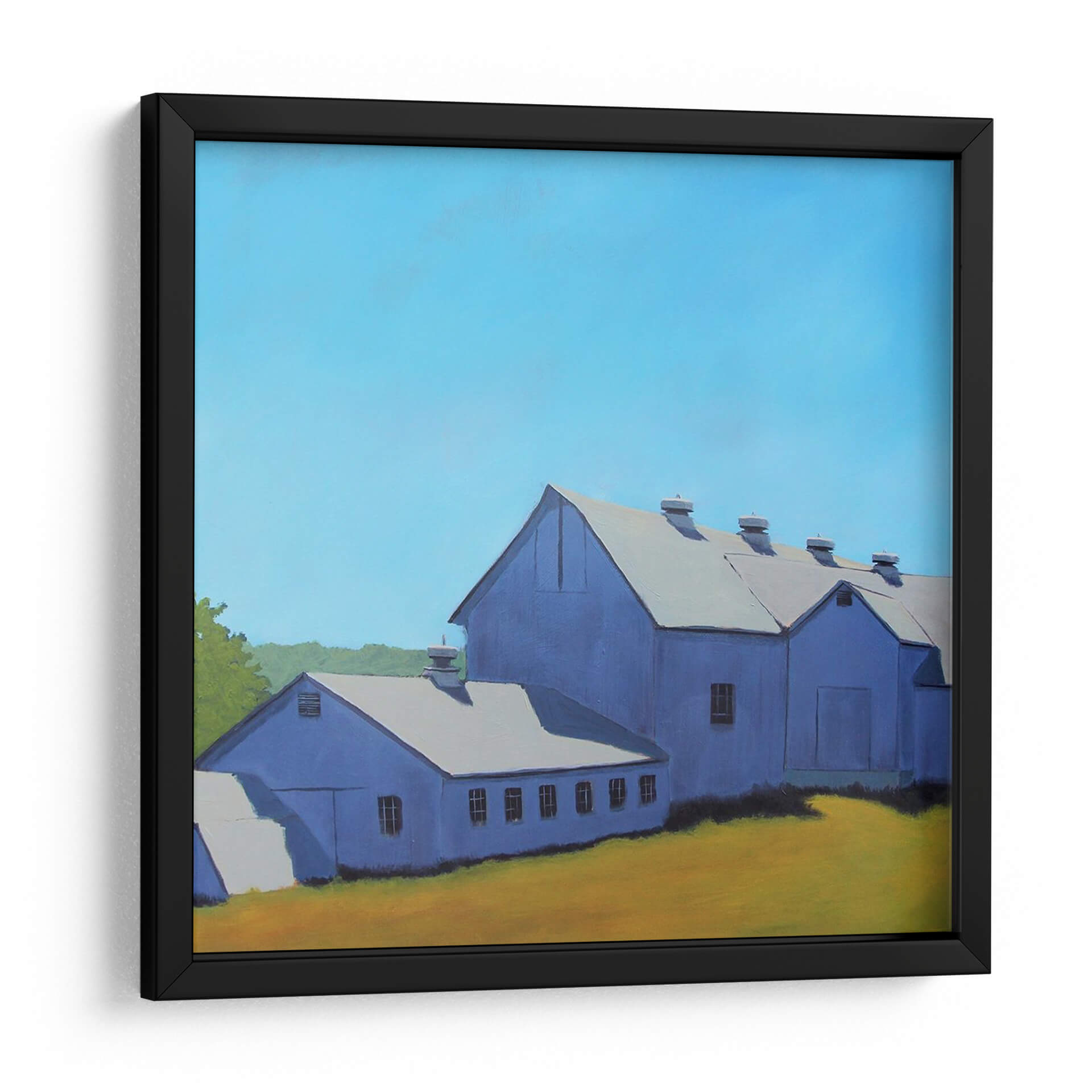 Sumérgete en la serenidad campestre con "Luz Luminosa II", una cautivadora obra de arte que captura la esencia de un día soleado en el campo. La artista Carol Young nos presenta una escena bucólica dominada por imponentes graneros de un vibrante tono azulado, que se alzan contra un cielo de un azul intenso y despejado. La composición, con la línea de edificios extendiéndose horizontalmente, se ve equilibrada por la suave pendiente de un prado dorado que capta la luz del sol. Los detalles sutiles, como las ventanas y las chimeneas en los tejados, añaden profundidad y realismo a la pintura. Los colores, aunque audaces en su representación del cielo y los graneros, crean una atmósfera de calma y estabilidad. Esta pieza es ideal para añadir un toque de tranquilidad rústica a tu hogar u oficina. Imagina este cuadro decorativo en tu sala de estar, aportando una sensación de paz y conexión con la naturaleza, o como un punto focal sereno en tu dormitorio. "Luz Luminosa II" es más que una simple imagen; es una ventana a un momento de paz y belleza atemporal.