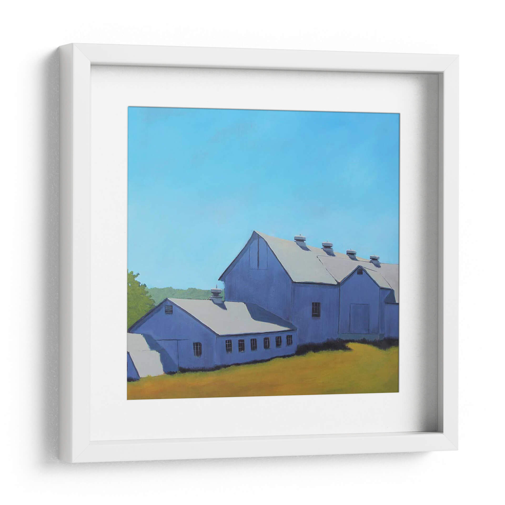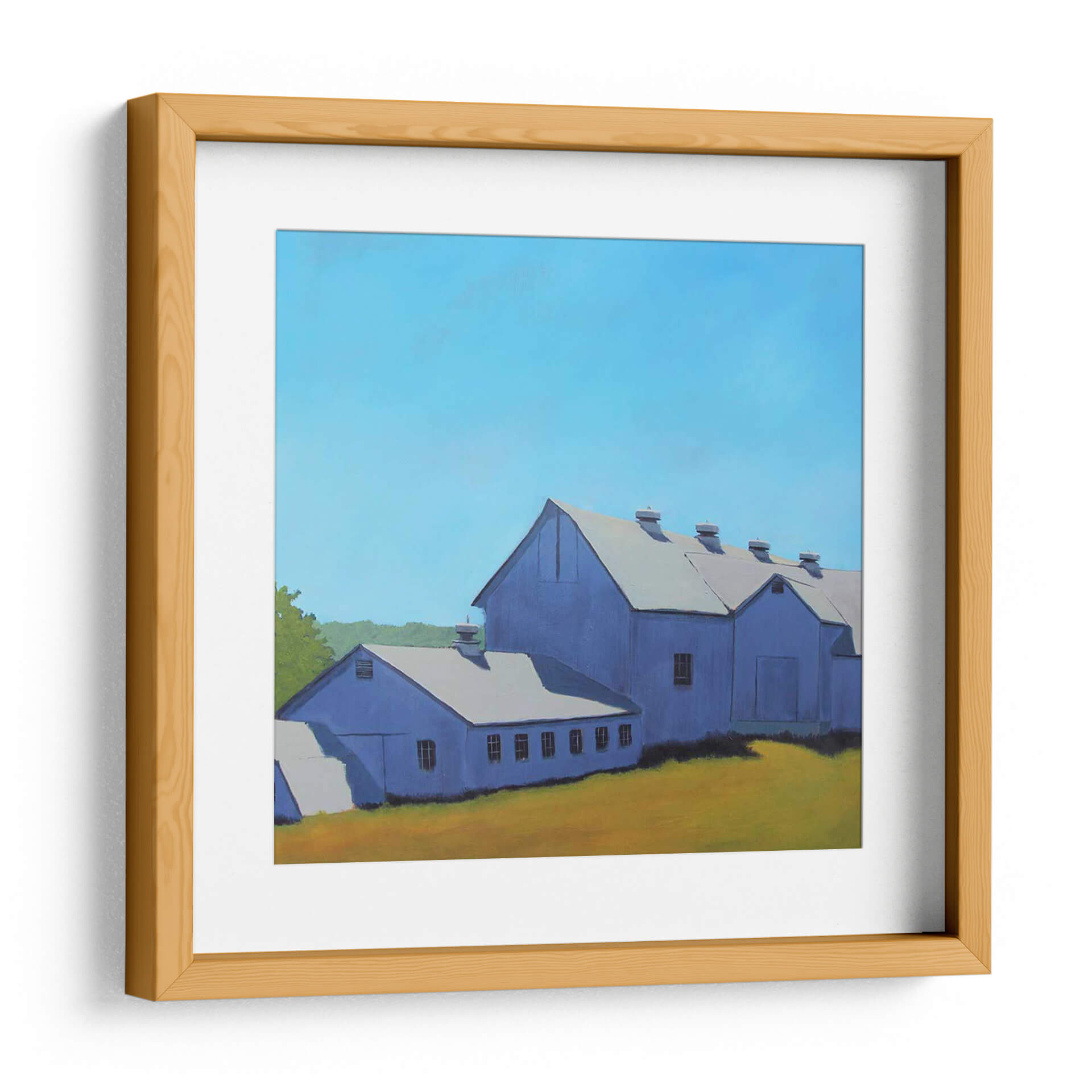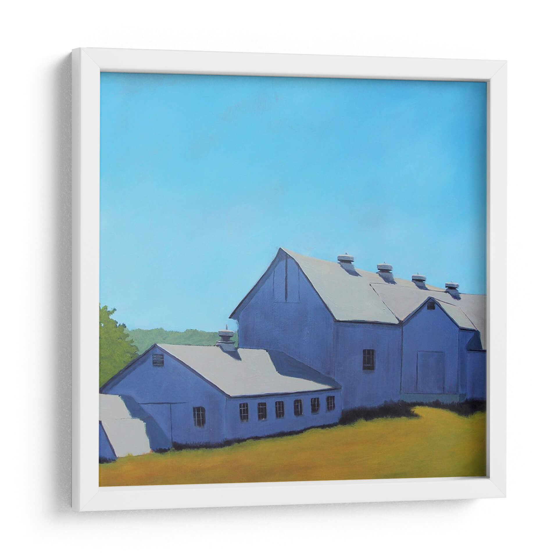 Sumérgete en la serenidad campestre con "Luz Luminosa II", una cautivadora obra de arte que captura la esencia de un día soleado en el campo. La artista Carol Young nos presenta una escena bucólica dominada por imponentes graneros de un vibrante tono azulado, que se alzan contra un cielo de un azul intenso y despejado. La composición, con la línea de edificios extendiéndose horizontalmente, se ve equilibrada por la suave pendiente de un prado dorado que capta la luz del sol. Los detalles sutiles, como las ventanas y las chimeneas en los tejados, añaden profundidad y realismo a la pintura. Los colores, aunque audaces en su representación del cielo y los graneros, crean una atmósfera de calma y estabilidad. Esta pieza es ideal para añadir un toque de tranquilidad rústica a tu hogar u oficina. Imagina este cuadro decorativo en tu sala de estar, aportando una sensación de paz y conexión con la naturaleza, o como un punto focal sereno en tu dormitorio. "Luz Luminosa II" es más que una simple imagen; es una ventana a un momento de paz y belleza atemporal.