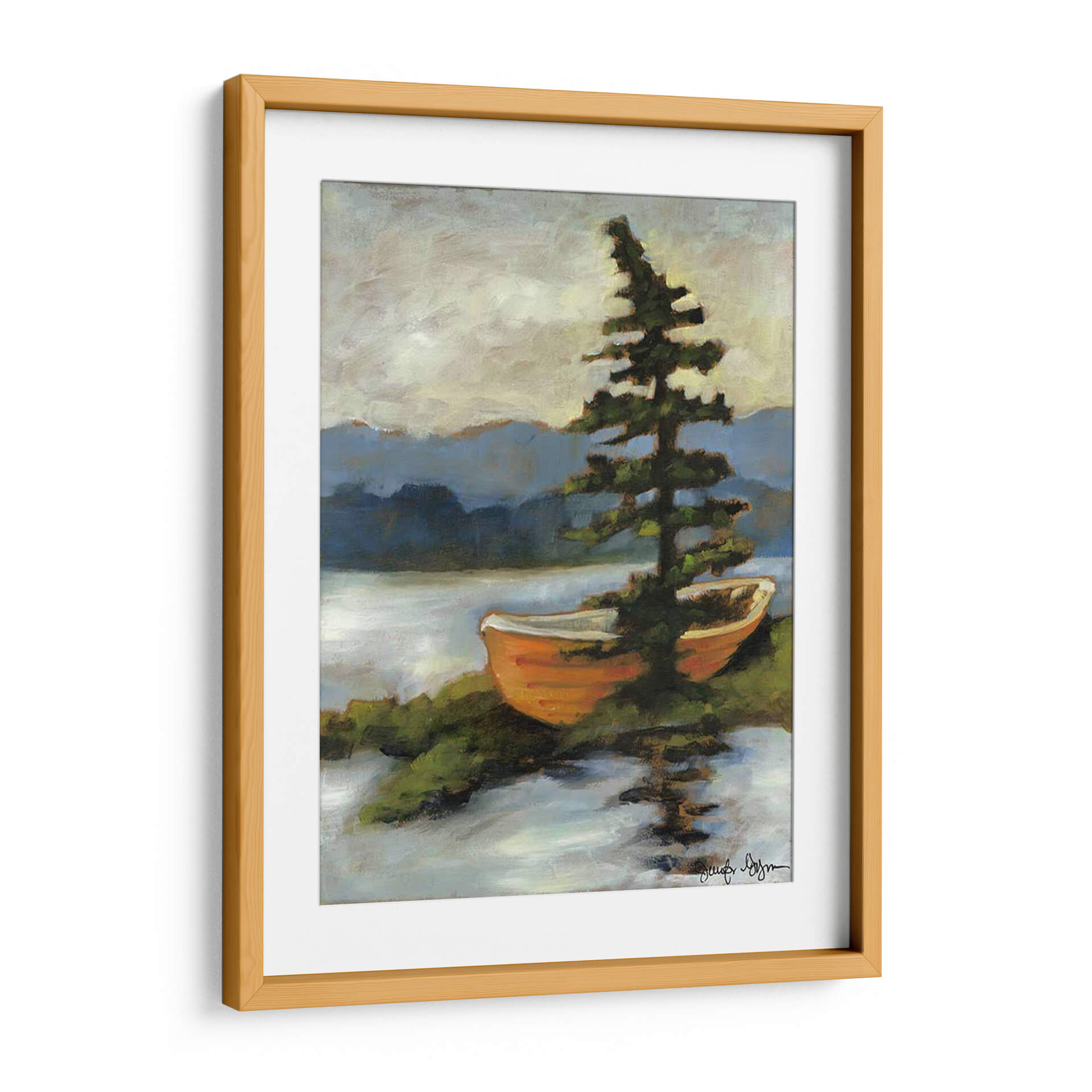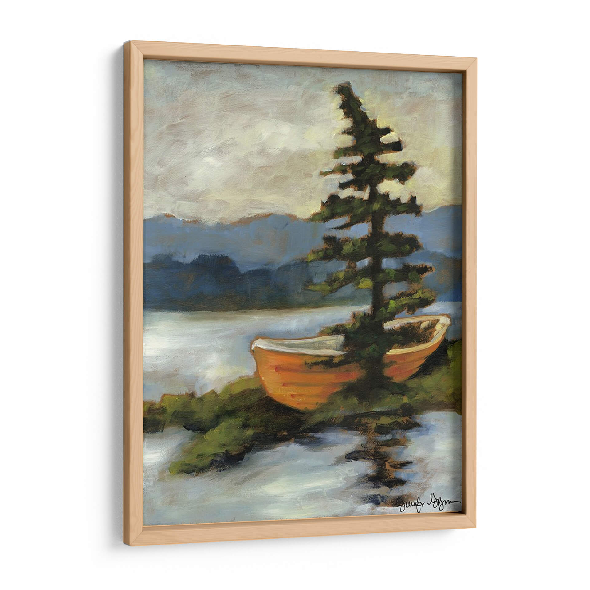 Transporte a un momento de paz y contemplación con "Maine Escape I", una obra de arte cautivadora de Jennifer Goldberger. Este cuadro decorativo captura la serena belleza de un paisaje costero, presentando una barca naranja vibrante anclada junto a un esbelto pino. Las pinceladas evocan una sensación de movimiento en el agua y las montañas distantes se funden suavemente en un cielo nublado, creando una atmósfera etérea. La paleta de colores, dominada por azules suaves, verdes terrosos y el cálido acento de la barca, invita a la calma y la reflexión. Ideal para añadir un toque de tranquilidad natural a tu sala de estar, dormitorio o estudio, esta pieza es perfecta para quienes buscan un refugio visual de la vida cotidiana. "Maine Escape I" es más que una simple decoración; es una invitación a desconectar y encontrar la serenidad en la simplicidad de la naturaleza, convirtiéndose en un punto focal inspirador en cualquier espacio.