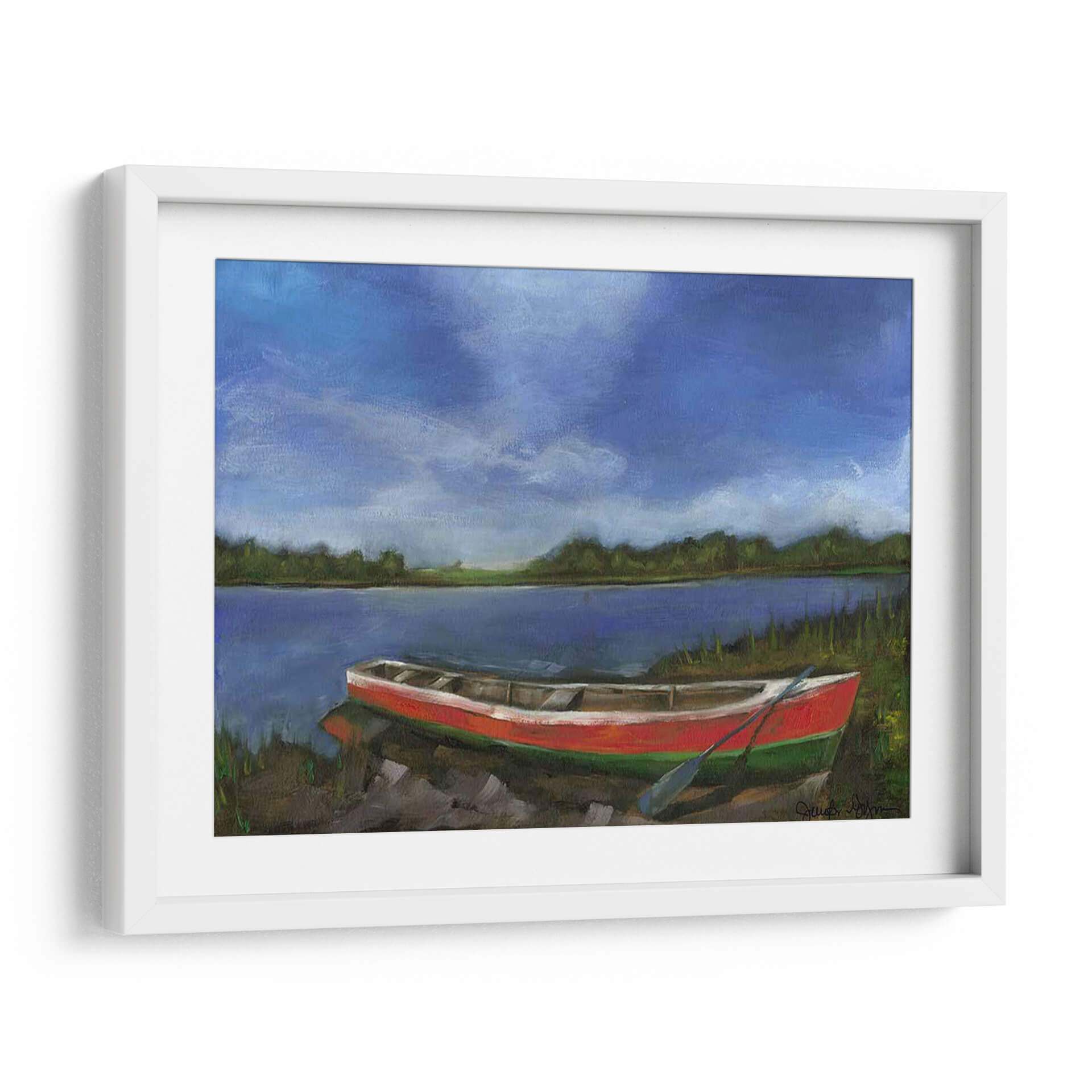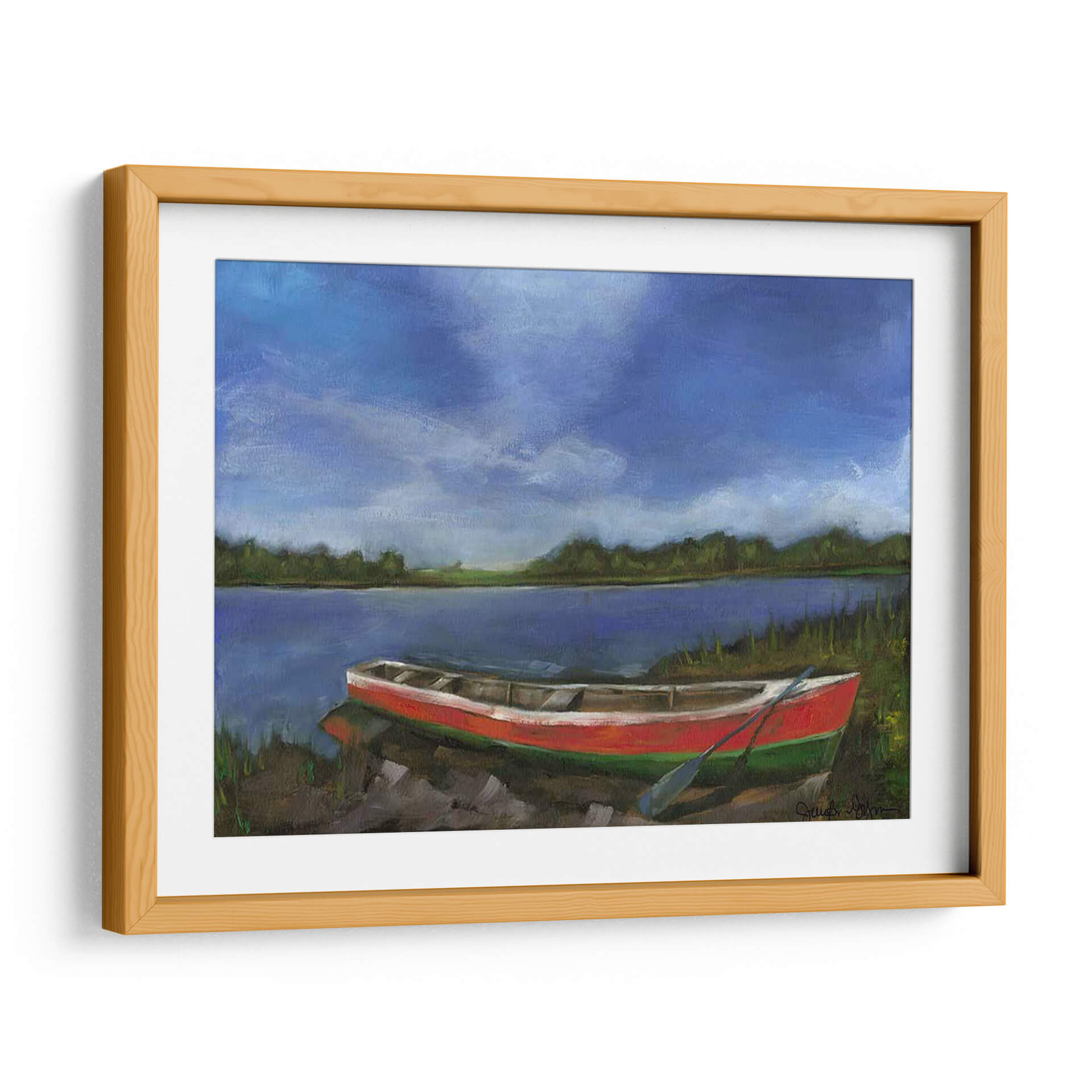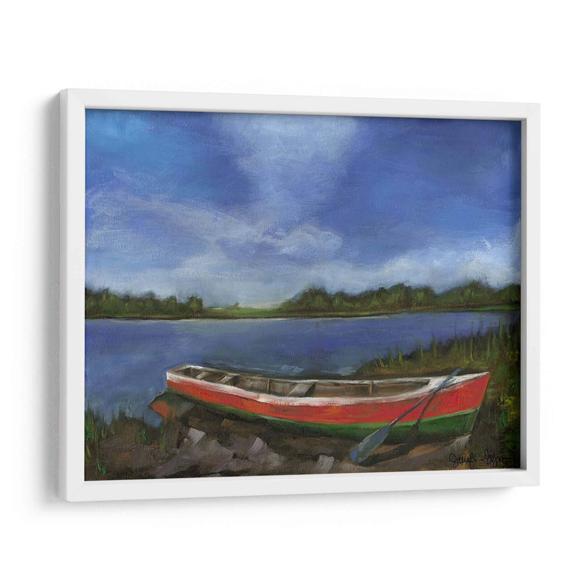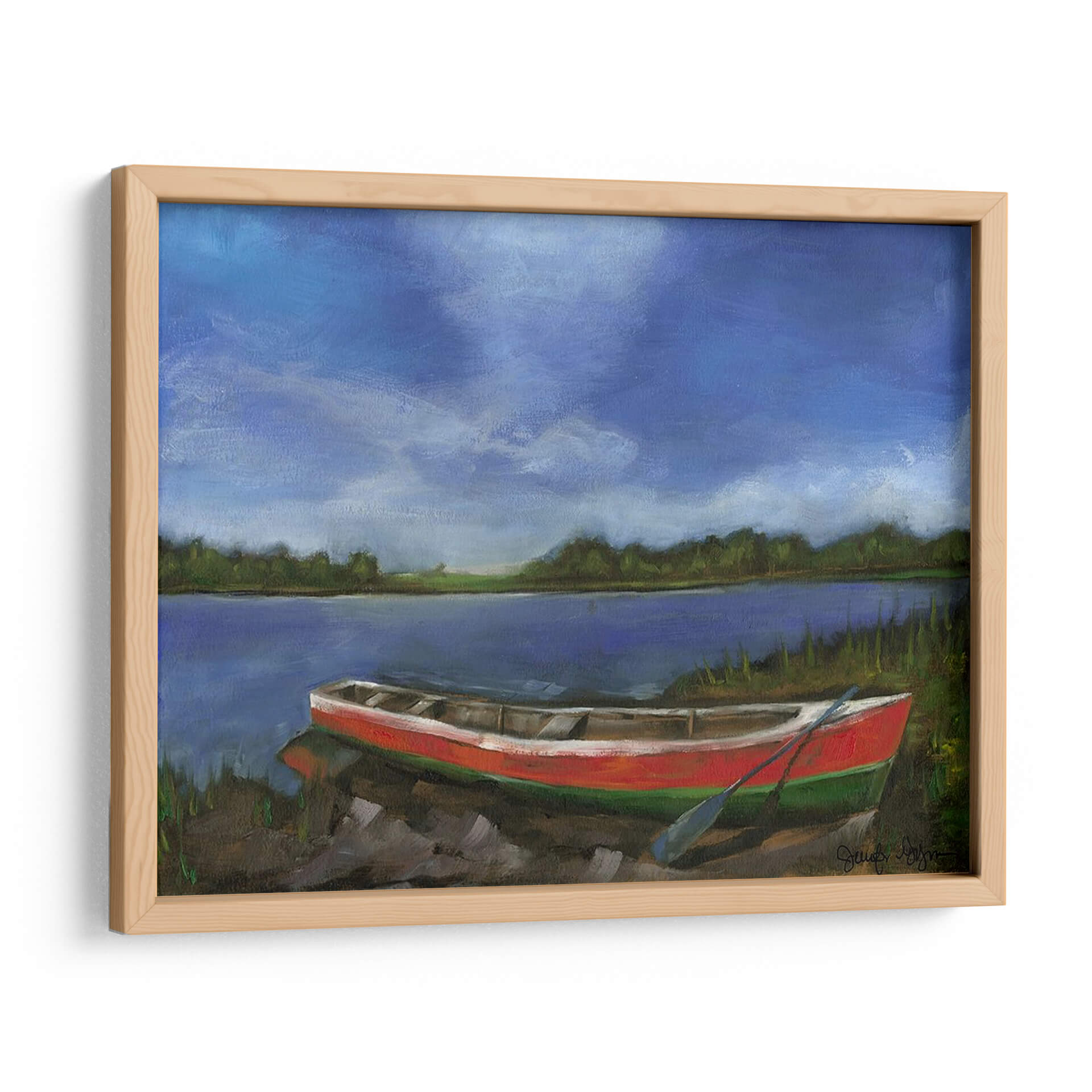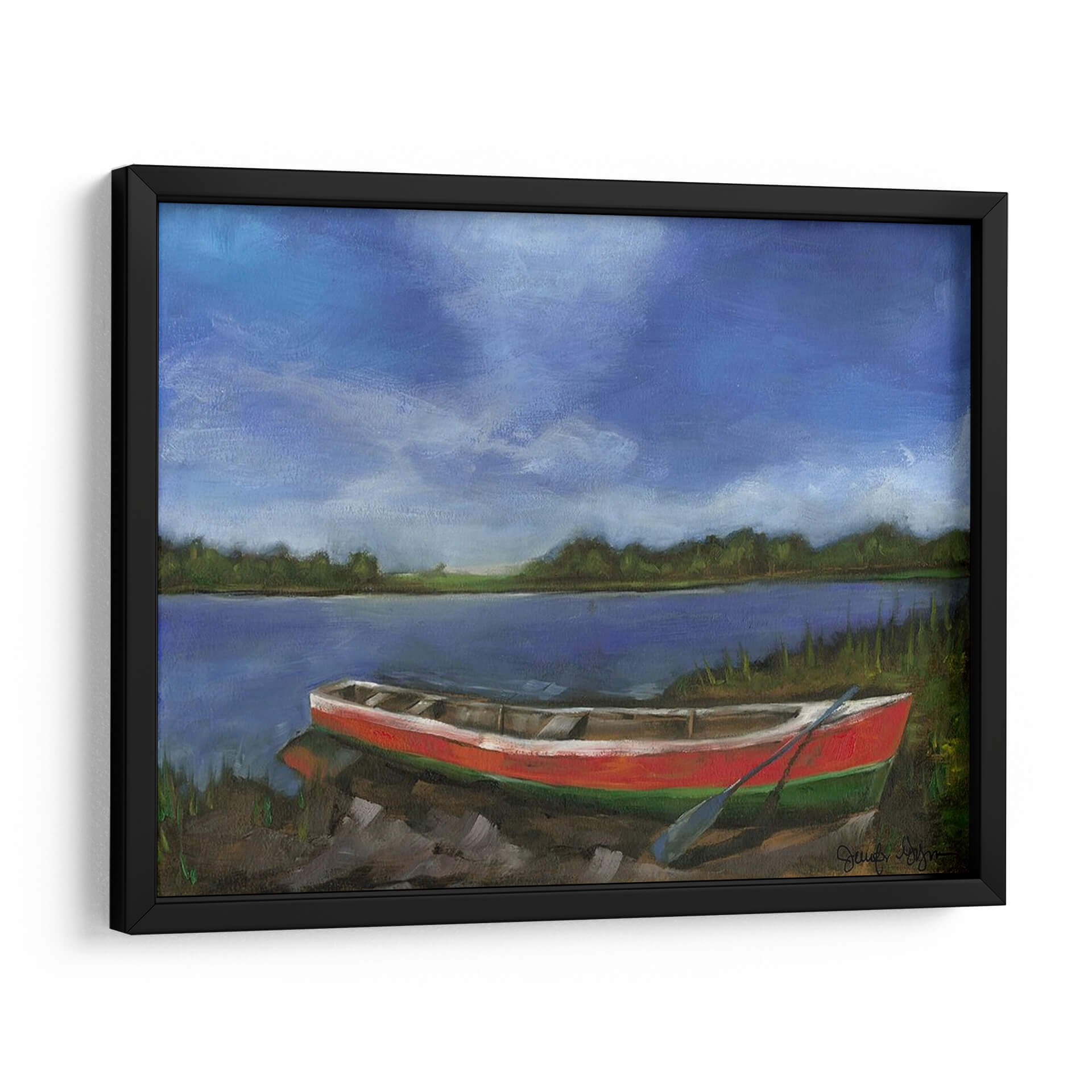 Embárquese en una serena escapada costera con "Maine Escape II", una cautivadora obra de arte que captura la tranquilidad de un día junto al agua. Esta pieza presenta un pintoresco bote rojo y verde varado en la orilla, reflejando la suave luz del sol sobre el agua azul profundo. El horizonte está adornado con una línea de árboles exuberantes y frondosos, coronado por un cielo azul vibrante con nubes tenues que sugieren una brisa suave. La paleta de colores, dominada por azules profundos, verdes naturales y toques cálidos de rojo y tierra, evoca una sensación de paz y conexión con la naturaleza. El estilo impresionista de la pintura, con pinceladas visibles y un enfoque en la luz y la atmósfera, añade una cualidad etérea a la escena. "Maine Escape II" es ideal para añadir un toque de serenidad y encanto rústico a cualquier sala de estar, dormitorio u oficina. Este cuadro decorativo es perfecto para aquellos que buscan un refugio visual de la vida cotidiana, transportándolos a un lugar de calma y contemplación. Su composición equilibrada y los colores evocadores lo convierten en una adición versátil a diversos estilos de decoración, desde la costera hasta la contemporánea, aportando una atmósfera de tranquilidad y belleza natural.