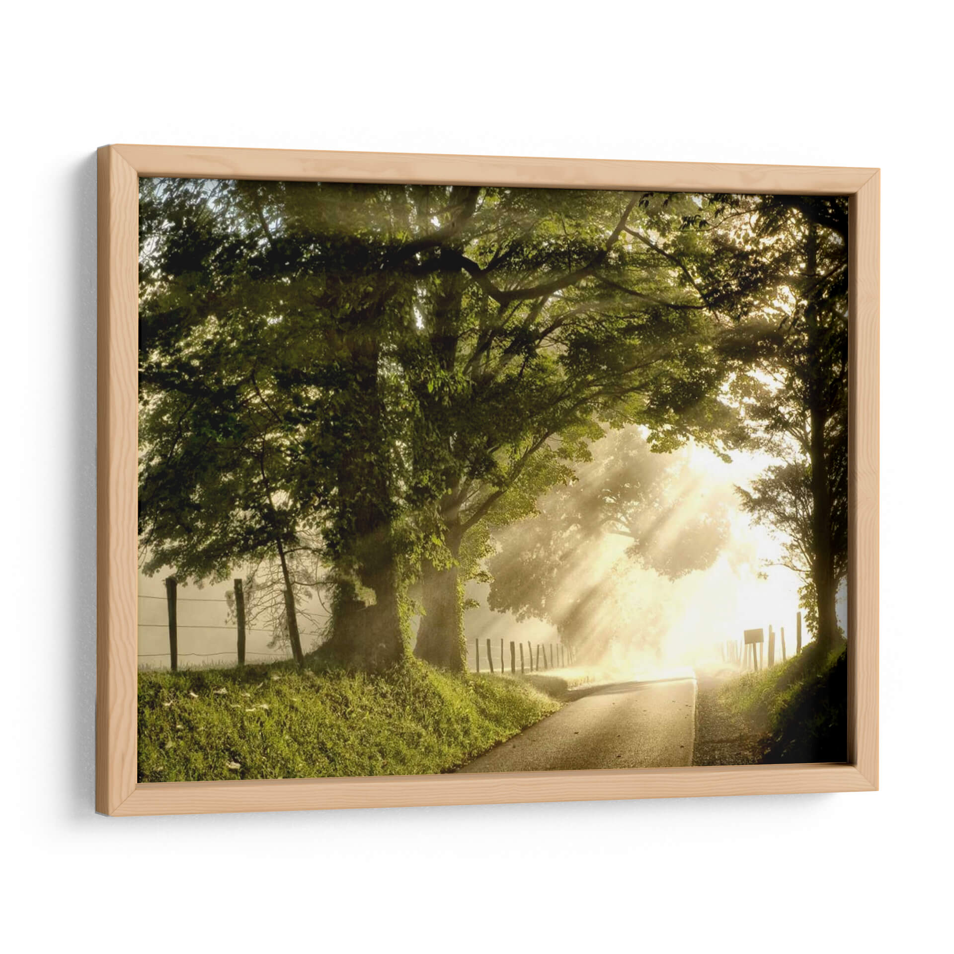 Emb rquese en un viaje visual con "Ma tilde;ana Fresca I", una obra de arte que captura la serena belleza de un camino rural ba tilde;ado por los primeros rayos del sol de la ma tilde;ana. Los rayos de luz se filtran a través de las frondosas copas de los ésrboles, creando un efecto etésreo y mésgico sobre el sendero serpenteante. La paleta de colores, dominada por verdes vibrantes y el dorado céslido del amanecer, evoca una sensaciésn de paz, renovaciésn y esperanza. Las sombras suaves y la niebla tenue a tilde;aden profundidad y misterio a la escena, invitando al espectador a adentrarse en este paisaje idéslico. Este cuadro decorativo es perfecto para a tilde;adir un toque de tranquilidad y naturaleza a cualquier espacio. Ideal para salones, dormitorios o estudios, "Ma tilde;ana Fresca I" transforma tu hogar en un santuario de calma, recordésndote la belleza efésmera de los momentos matutinos y la promesa de un nuevo désa. Su estilo realista y su composiciésn equilibrada la convierten en una adiciésn atemporal a tu decoraciésn.