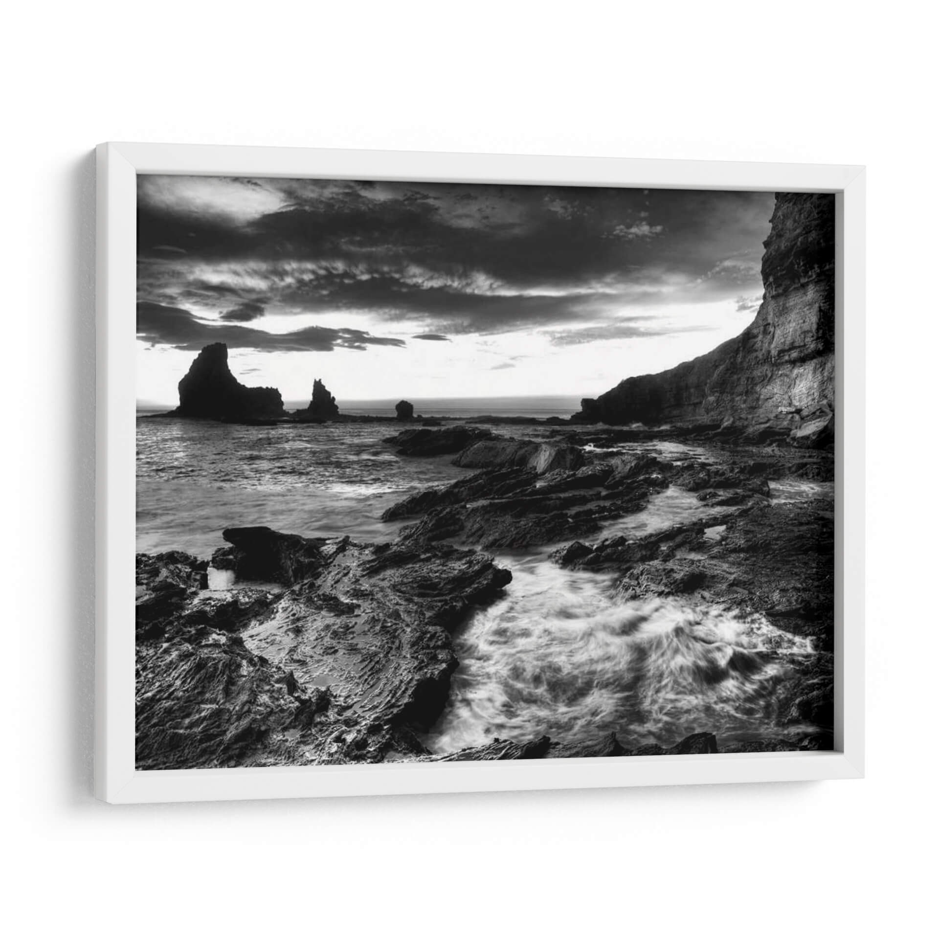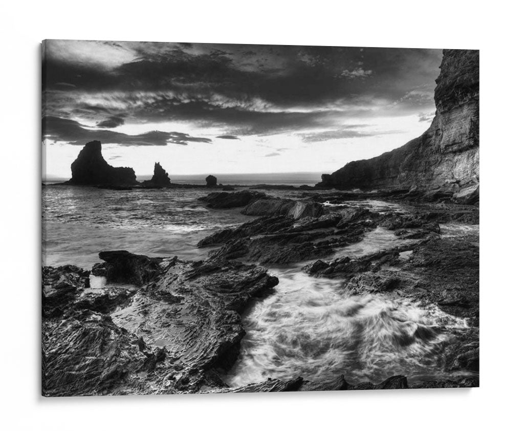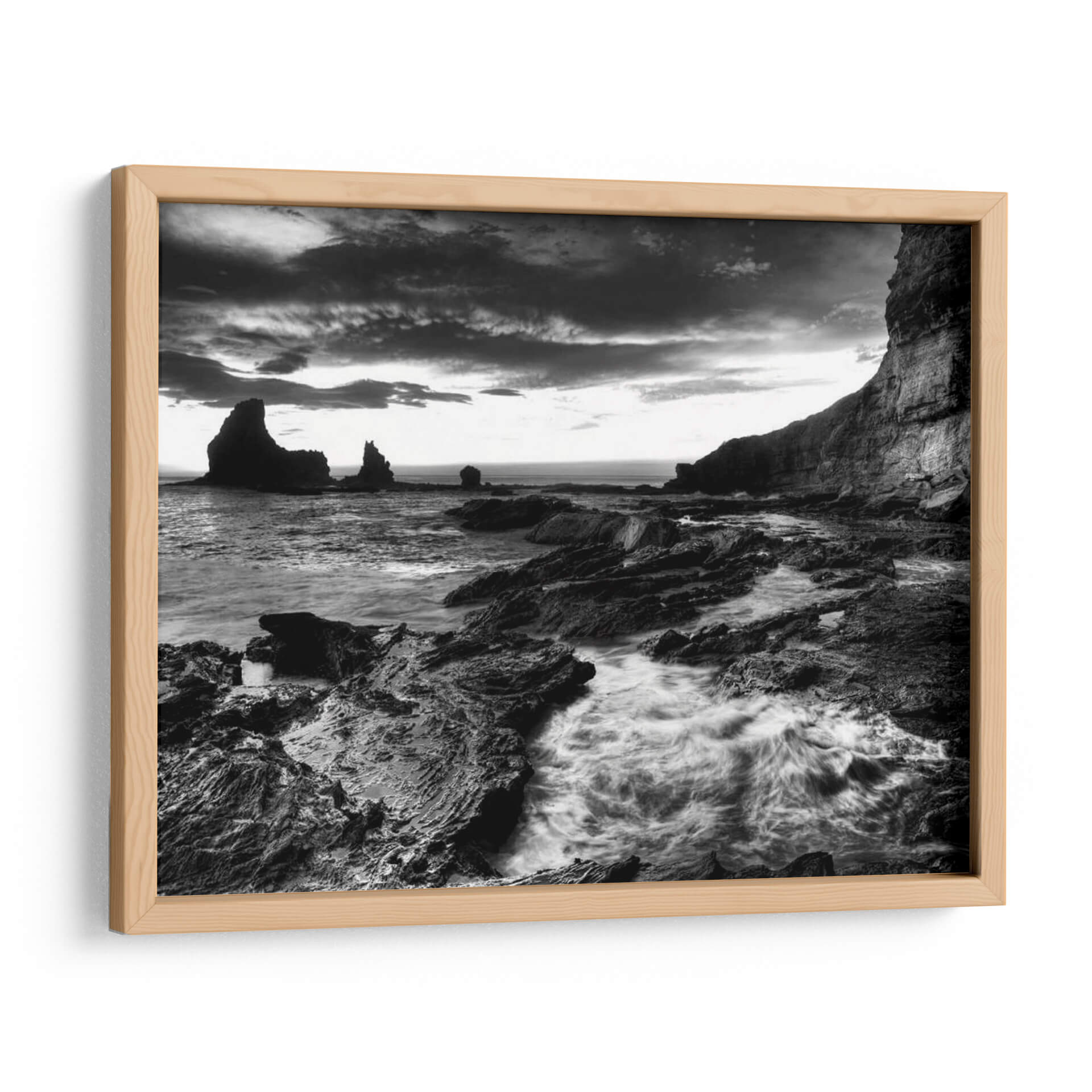 Sumérgete en la potencia y el drama del paisaje marino con "Mareas Apresuradas", una obra de arte que captura la esencia indómita de la costa. Nish Nalbandian nos transporta a un rincón salvaje donde las rocas escarpadas se encuentran con la fuerza del océano. La composición en blanco y negro acentúa las texturas rugosas de la roca y la fluidez etérea del agua en movimiento, creando un contraste visual impactante. Las nubes dramáticas en el cielo añaden una capa de intensidad, sugiriendo la fuerza de la naturaleza en su máxima expresión. Este cuadro decorativo es perfecto para aquellos que buscan infundir a su hogar u oficina una sensación de energía, resiliencia y la belleza cruda del mundo natural. Ideal como punto focal en una sala de estar moderna o para añadir un toque introspectivo a un estudio. "Mareas Apresuradas" no es solo una imagen, es una experiencia sensorial que evoca la conexión primal con el mar y la tierra.