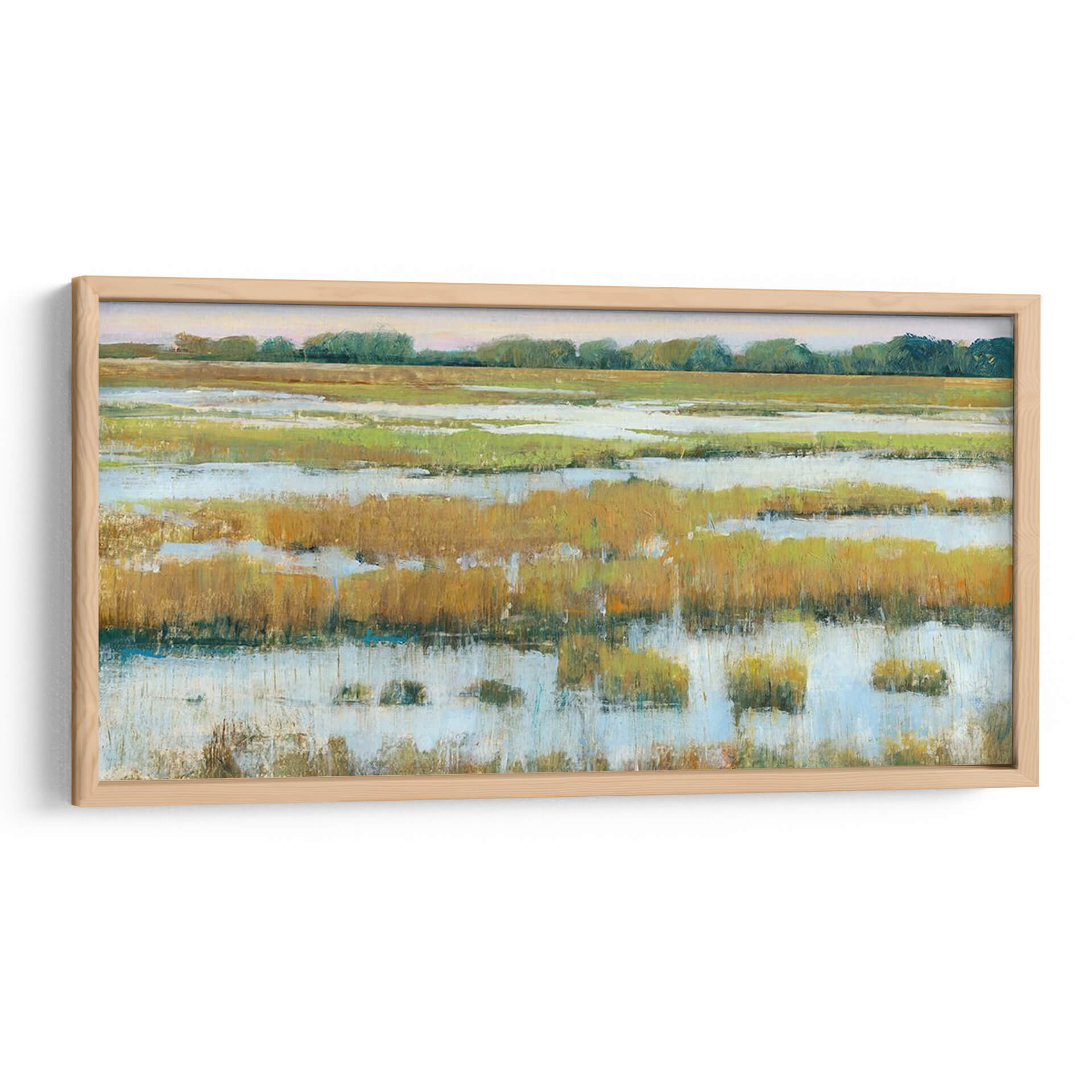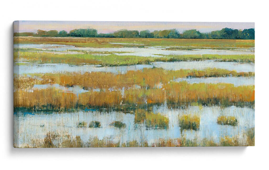 Sumérgete en la serenidad de "Maternidad Serena I" de Tim O'Toole, una obra de arte que captura la esencia de un paisaje de marisma con una delicadeza excepcional. Los tonos cálidos de ocres, dorados y verdes se entrelazan con los reflejos serenos del agua en tonos azules y celestes, creando una atmósfera de paz y contemplación. Las pinceladas expresivas y la composición horizontal evocan la amplitud y la tranquilidad de la naturaleza, transportando al espectador a un momento de calma profunda. Este cuadro decorativo es ideal para quienes buscan añadir un toque de naturaleza serena y sofisticación a su hogar u oficina. Su estilo impresionista moderno, con un enfoque en la luz y el color, lo convierte en una pieza versátil que complementará una amplia gama de estilos decorativos, desde el rústico hasta el contemporáneo. Imagina esta pieza como un punto focal en tu sala de estar, aportando una sensación de escapismo y armonía, o como un recordatorio diario de la belleza tranquila del mundo natural en tu espacio personal. "Maternidad Serena I" no es solo una obra de arte, es una invitación a la reflexión y al bienestar.