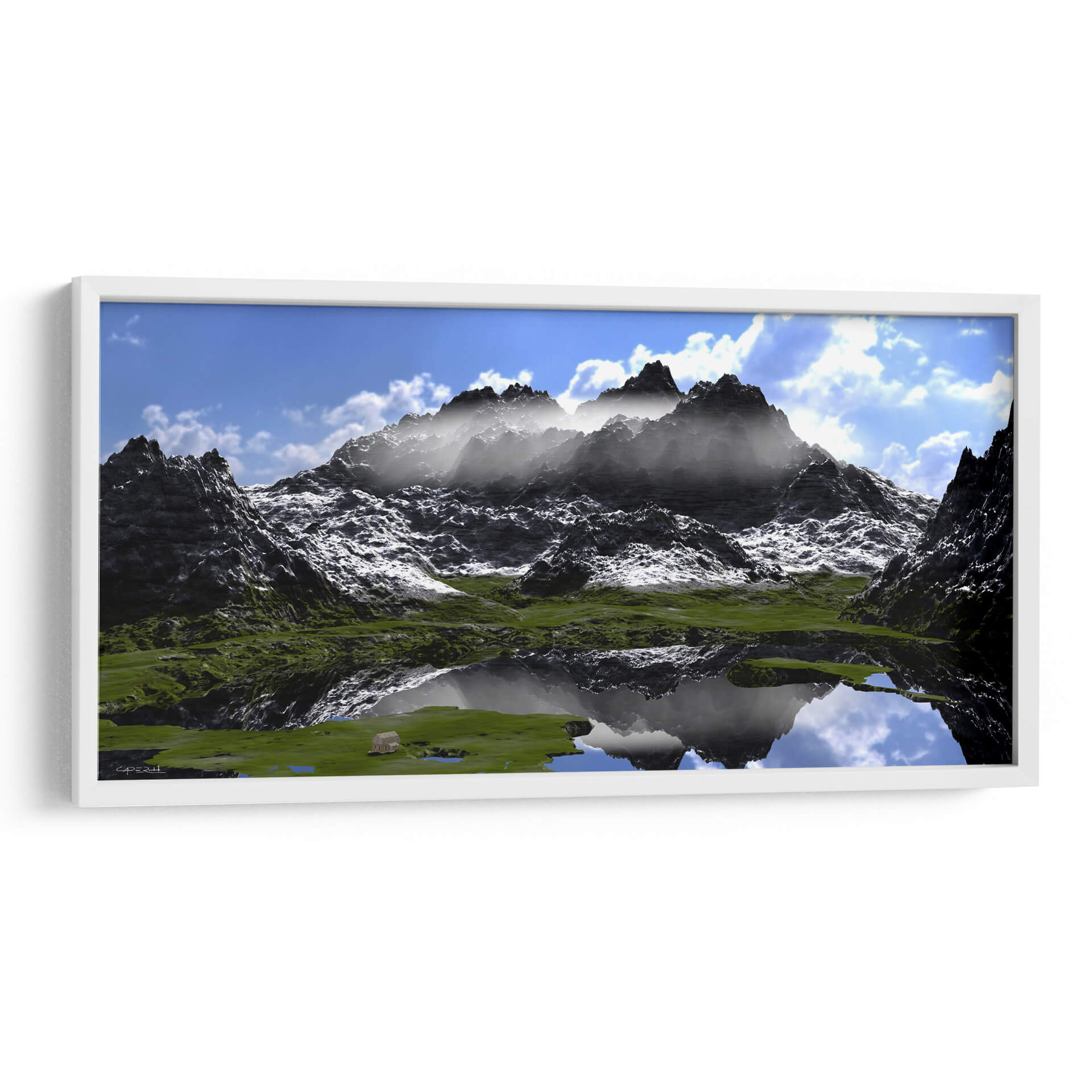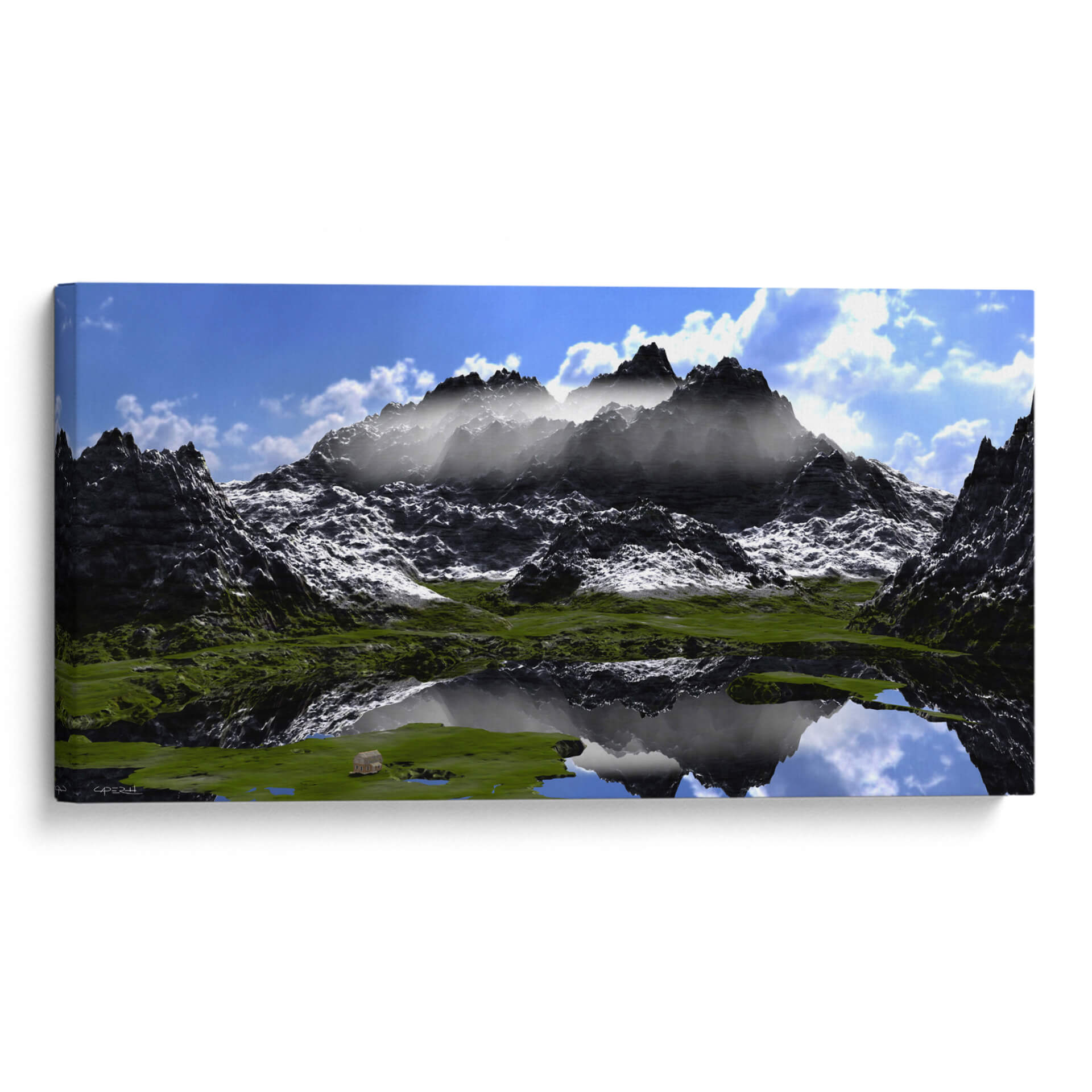 Sumérgete en la majestuosidad de "Montañas Suizas", una obra de arte digital que captura la serena belleza de los Alpes con un realismo asombroso. Este cuadro decorativo te transporta a un paisaje idílico, donde imponentes picos montañosos se alzan hacia un cielo azul vibrante, salpicado de nubes algodonosas que juegan con la luz. La composición maestra resalta las texturas rocosas y el verde exuberante de las laderas, creando un contraste visual cautivador. Un lago cristalino en primer plano refleja fielmente el esplendor de las montañas y el cielo, añadiendo una capa de profundidad y tranquilidad a la escena. La atmósfera es de paz y asombro, ideal para infundir serenidad en cualquier espacio. Los tonos predominantes, desde el azul profundo del cielo hasta el verde fresco de la vegetación y los grises texturizados de las rocas, crean una paleta armoniosa y natural. Este cuadro es perfecto para añadir un toque de naturaleza y sofisticación a tu sala de estar, dormitorio u oficina, invitando a la contemplación y al escape.