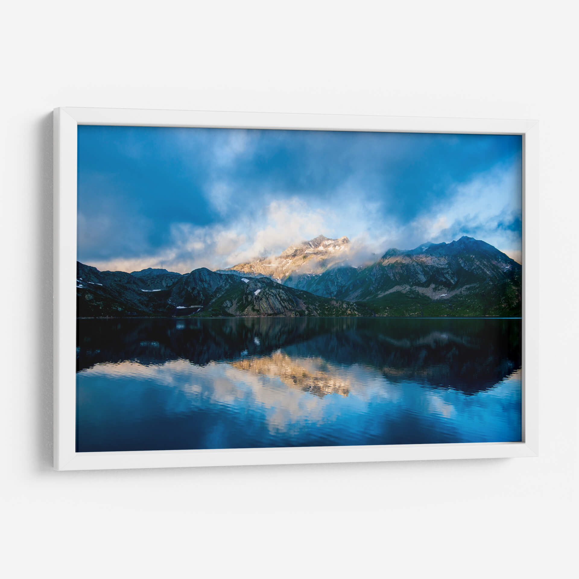 Sumérgete en la serena majestuosidad de 'Montañas y su reflejo', un cuadro decorativo que captura la esencia de un paisaje alpino al amanecer. La obra presenta imponentes montañas cubiertas de nieve en sus cumbres, recortándose contra un cielo azul vibrante y nublado, donde los primeros rayos del sol bañan las alturas en tonos dorados y rosados. Un lago cristalino en primer plano actúa como un espejo perfecto, duplicando la escena montañosa y añadiendo una dimensión de calma y profundidad a la composición. La paleta de colores, dominada por azules profundos, verdes terrosos y toques de blanco y dorado, evoca una atmósfera de tranquilidad y conexión con la naturaleza. Este cuadro decorativo es ideal para añadir un toque de paz y belleza natural a tu sala de estar, dormitorio u oficina, transformando cualquier espacio en un santuario de serenidad. Su estilo realista y su composición equilibrada lo convierten en una pieza versátil que complementará tanto decoraciones modernas como rústicas, invitando a la contemplación y al asombro.