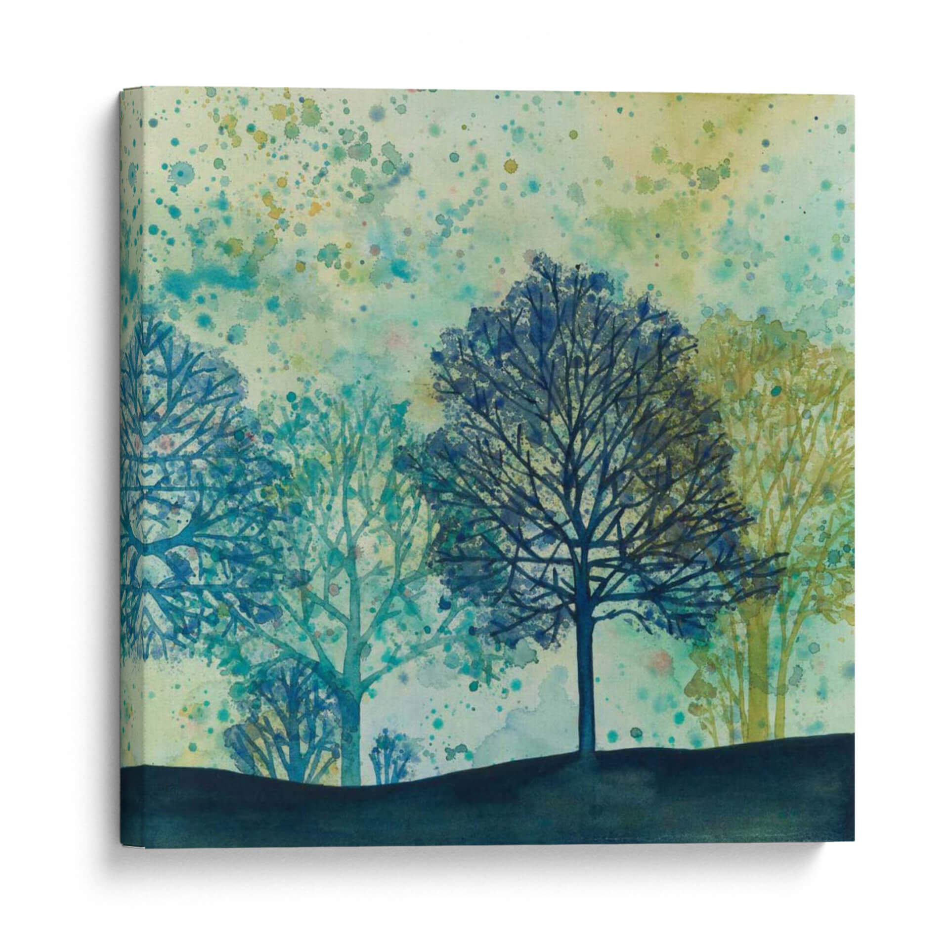 Sumérgete en la serenidad del 'Moteado Bosque II', una cautivadora obra de arte de Megan Meagher que captura la esencia etérea de un paisaje forestal. Esta pieza se caracteriza por su delicada técnica de acuarela, donde salpicaduras de colores vibrantes y suaves se entrelazan para crear una atmósfera onírica. Los árboles, representados con trazos estilizados y siluetas oscuras contra un fondo luminoso y texturizado, evocan una sensación de calma y contemplación. La paleta de colores, dominada por tonos fríos de azul y verde, con toques cálidos de amarillo y ocre, aporta una profundidad visual y un equilibrio armonioso. Ideal para añadir un toque de naturaleza abstracta y sofisticación a cualquier espacio, este cuadro decorativo es perfecto para salones, dormitorios o estudios que buscan una conexión con la tranquilidad del mundo natural. Su estilo moderno y evocador lo convierte en un punto focal único, invitando a la reflexión y al descanso visual.