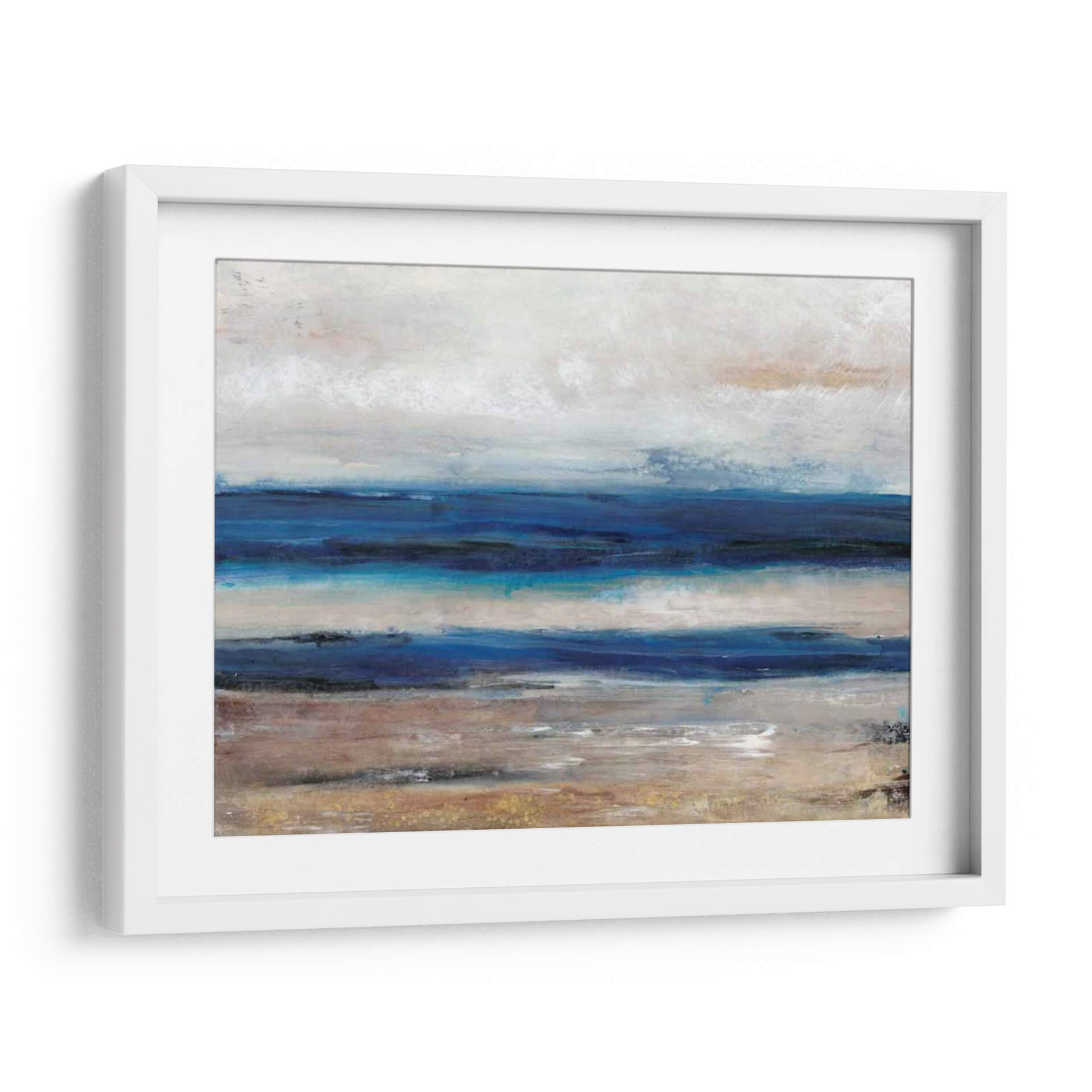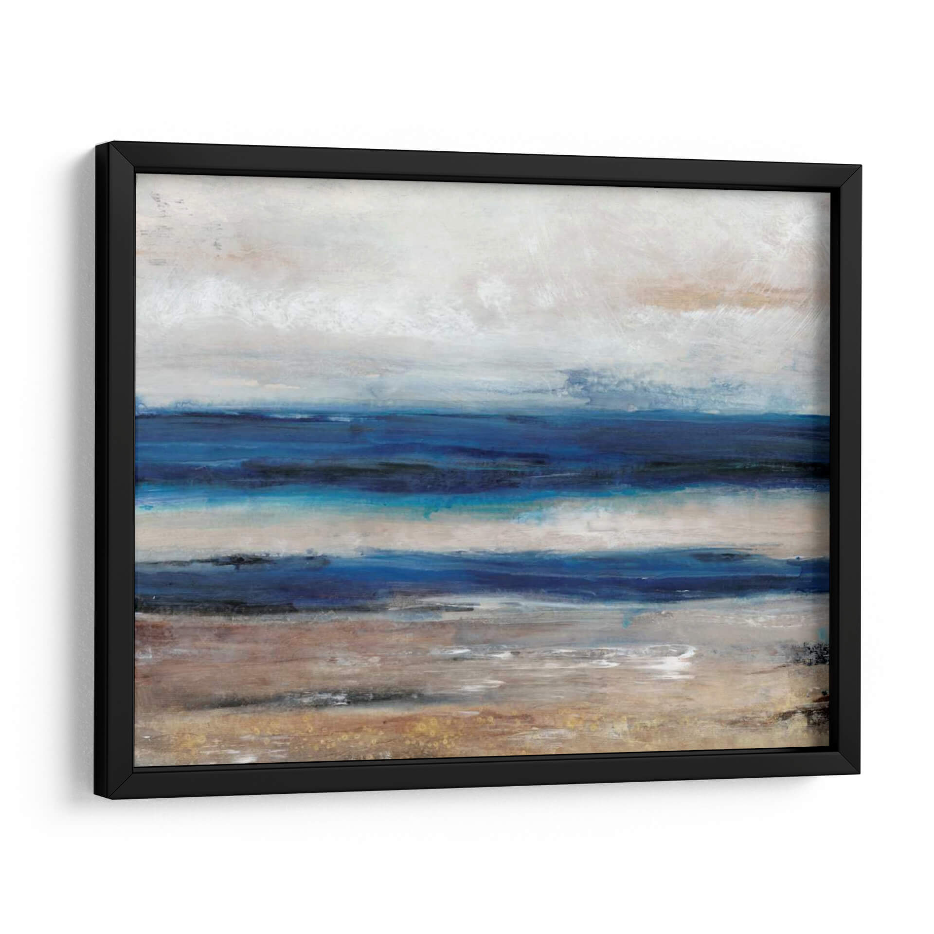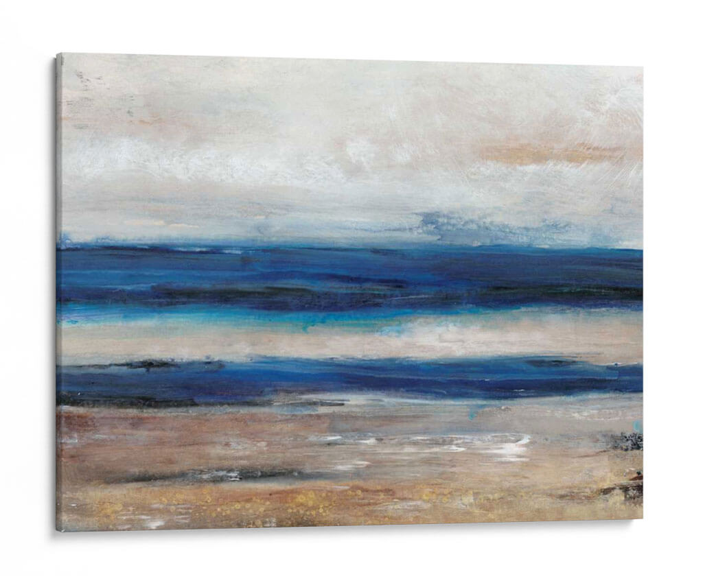 Sumérgete en la serenidad de 'Movimiento II', una obra abstracta que captura la esencia del mar y la costa con pinceladas evocadoras y una paleta de colores armoniosa. Tim O'Toole nos transporta a un paisaje etéreo donde las capas de azul profundo se encuentran con tonos tierra y un cielo nublado, creando una atmósfera de calma y contemplación. Las texturas sutiles y la composición horizontal invitan a la relajación, haciendo de este cuadro decorativo la pieza perfecta para añadir un toque de naturaleza y tranquilidad a tu hogar u oficina. Su estilo contemporáneo se adapta a diversos espacios, desde un dormitorio acogedor hasta una sala de estar moderna o un estudio tranquilo. Este cuadro abstracto es una invitación a desconectar y encontrar la paz en los pequeños detalles del mundo natural, transformando cualquier habitación en un santuario de serenidad y buen gusto. Es una pieza ideal para quienes buscan arte que inspire calma y refleje una conexión profunda con el entorno marino.