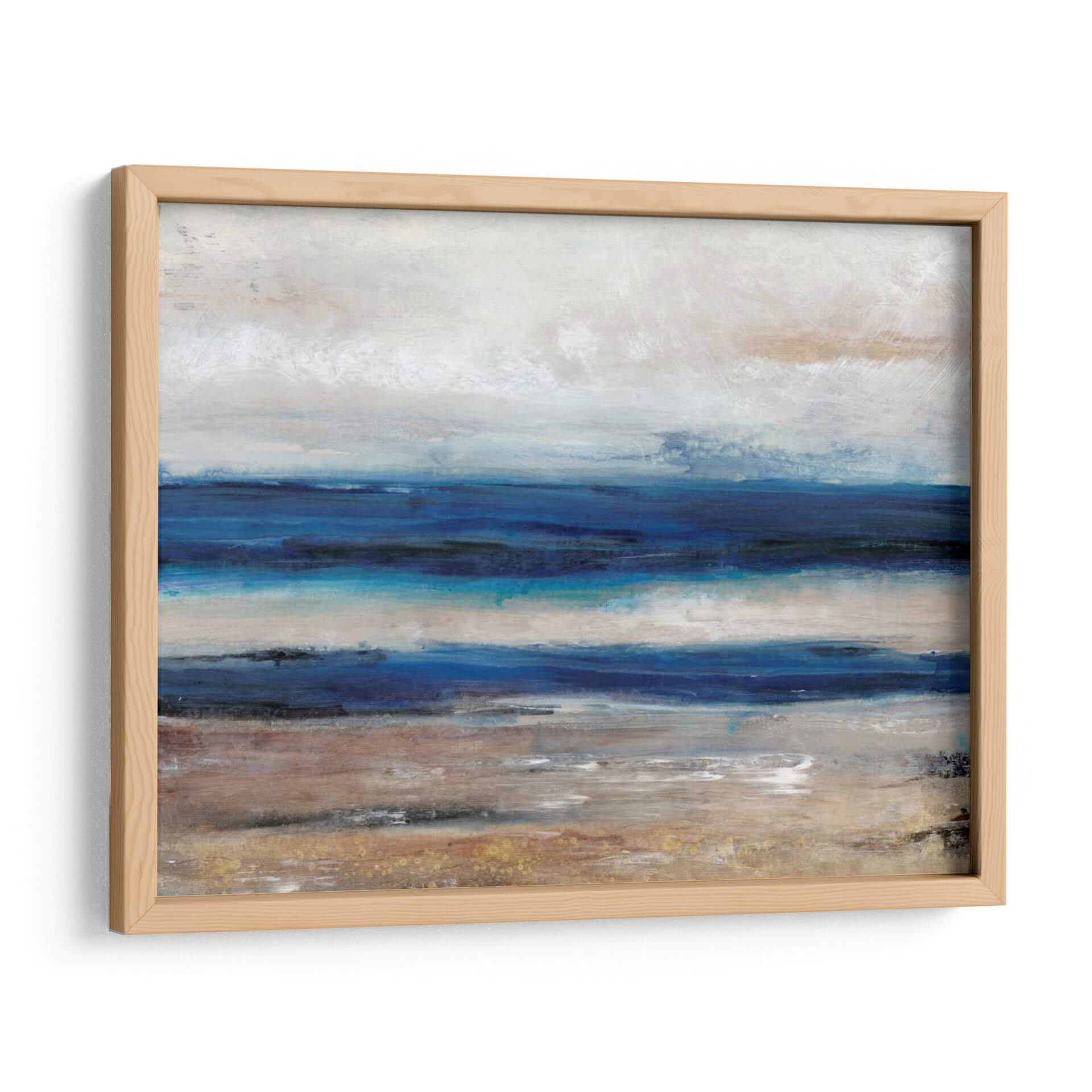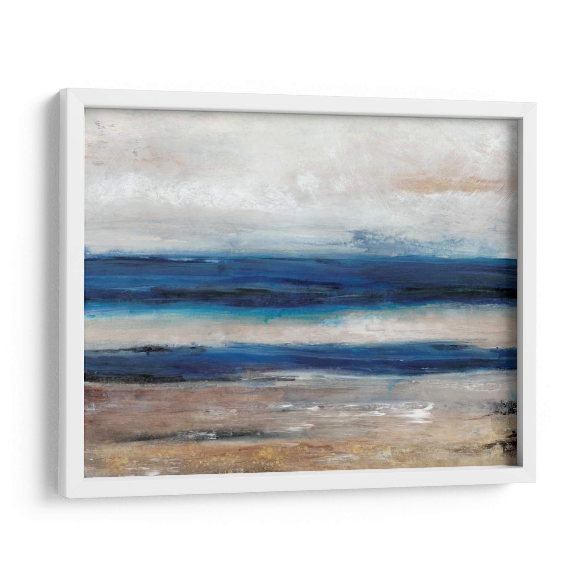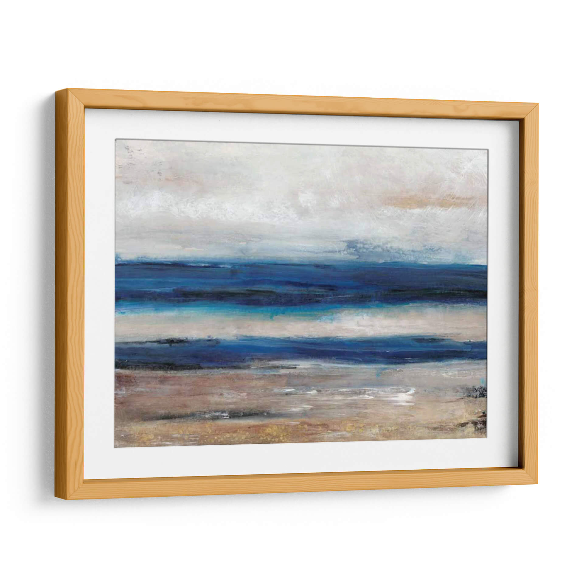 Sumérgete en la serenidad de 'Movimiento II', una obra abstracta que captura la esencia del mar y la costa con pinceladas evocadoras y una paleta de colores armoniosa. Tim O'Toole nos transporta a un paisaje etéreo donde las capas de azul profundo se encuentran con tonos tierra y un cielo nublado, creando una atmósfera de calma y contemplación. Las texturas sutiles y la composición horizontal invitan a la relajación, haciendo de este cuadro decorativo la pieza perfecta para añadir un toque de naturaleza y tranquilidad a tu hogar u oficina. Su estilo contemporáneo se adapta a diversos espacios, desde un dormitorio acogedor hasta una sala de estar moderna o un estudio tranquilo. Este cuadro abstracto es una invitación a desconectar y encontrar la paz en los pequeños detalles del mundo natural, transformando cualquier habitación en un santuario de serenidad y buen gusto. Es una pieza ideal para quienes buscan arte que inspire calma y refleje una conexión profunda con el entorno marino.