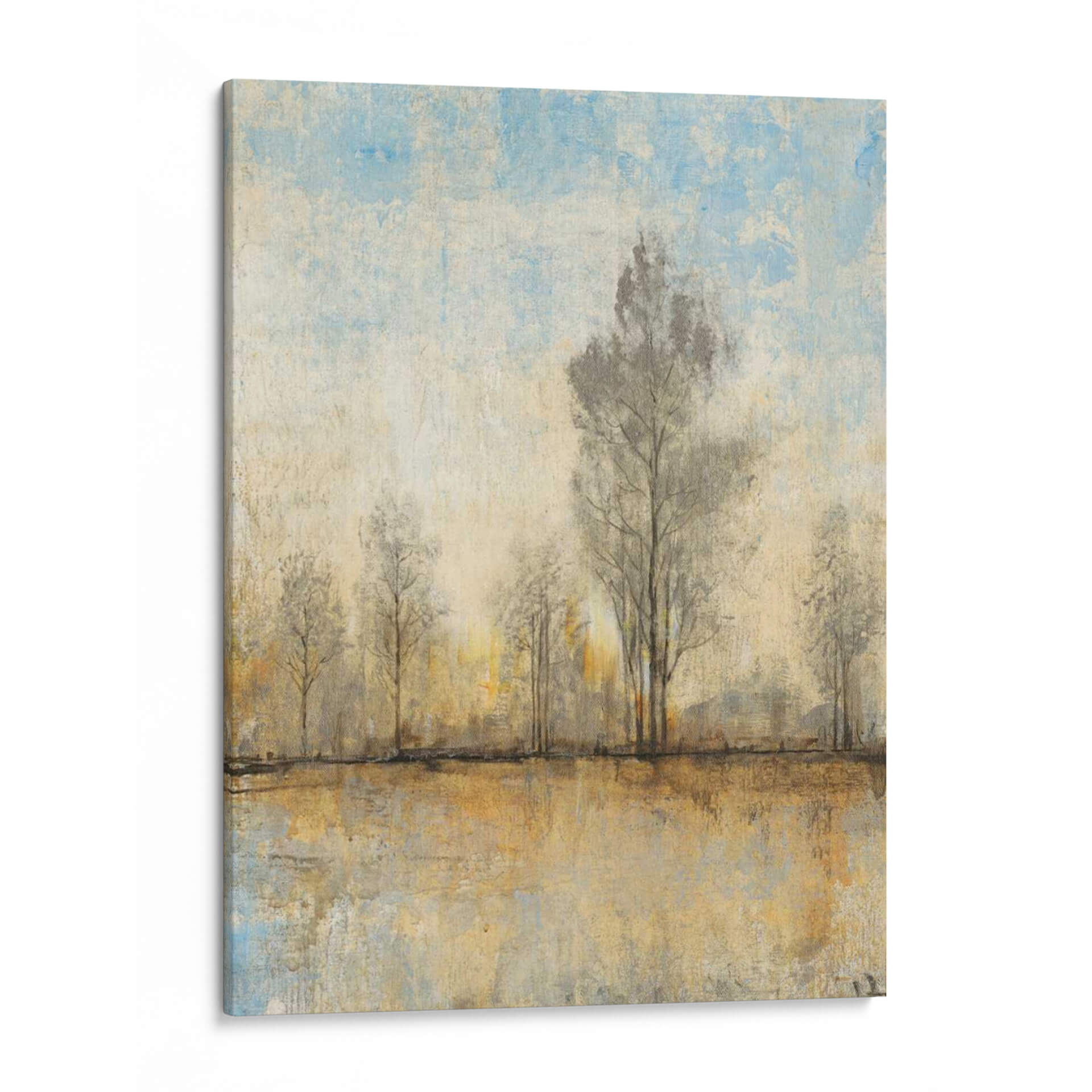 Sumérgete en la serenidad de "Naturaleza Tranquila Yo", una obra de arte contemporáneo que captura la esencia de un paisaje sereno con una paleta de colores terrosos y celestes. Este cuadro decorativo presenta árboles estilizados emergiendo de una masa de agua reflectante, todo ello envuelto en una atmósfera etérea y texturizada. Los tonos ocres, marrones y azules pálidos se entrelazan para crear una sensación de calma y contemplación, ideal para transformar cualquier espacio en un santuario de paz. El estilo abstracto-impresionista, con pinceladas sutiles y un enfoque en la luz y la atmósfera, invita a la meditación y al descanso visual. Perfecto para quienes buscan añadir un toque de naturaleza introspectiva a su hogar u oficina, este cuadro es una invitación a la reflexión y al disfrute de la belleza sutil del mundo natural. Su composición equilibrada y su evocadora atmósfera lo convierten en una pieza versátil, capaz de complementar desde decoraciones modernas hasta espacios más rústicos, aportando una elegancia atemporal y una conexión profunda con la tranquilidad.
