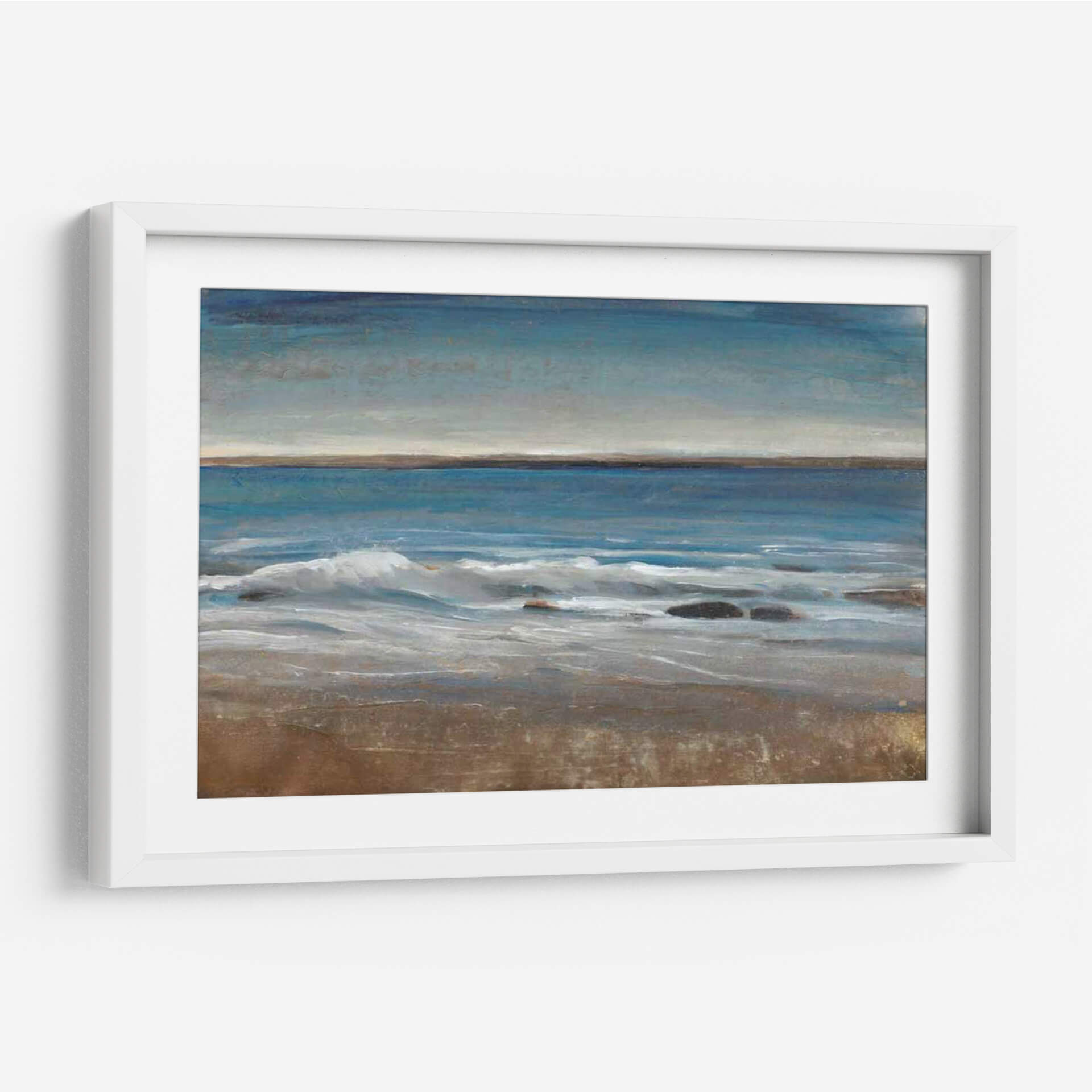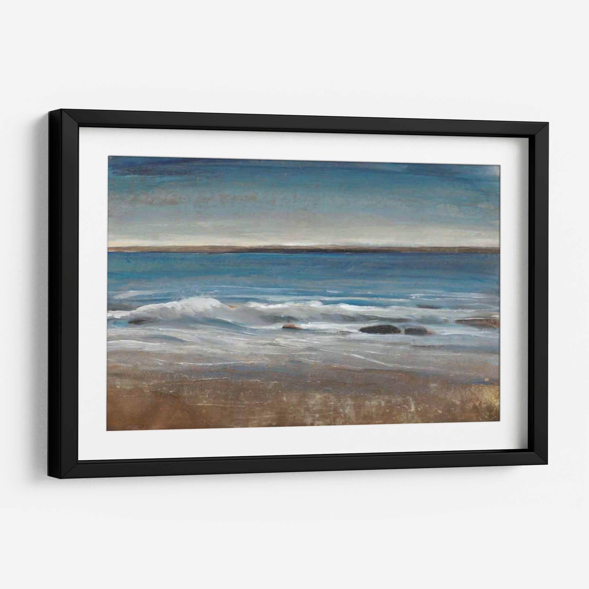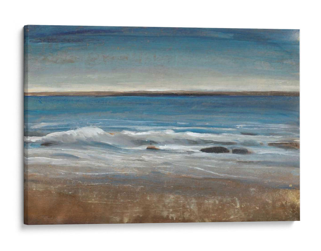 Sumérgete en la serenidad del océano con "Ocean Light II", una obra de arte que captura la esencia del mar en un día sereno. Este cuadro decorativo, pintado por Tim O'Toole, te transporta a la orilla con sus evocadoras tonalidades azules y ocres. La pincelada texturizada y la composición que divide el lienzo entre el cielo, el mar y la arena, crean una sensación de profundidad y calma. Las olas suaves que rompen en la orilla, junto con las rocas sutilmente integradas en el paisaje marino, invitan a la contemplación y al sosiego. Los tonos fríos del agua contrastan delicadamente con la calidez terrosa de la playa, creando un equilibrio visual armonioso. "Ocean Light II" es una pieza ideal para infundir tranquilidad en cualquier espacio, desde un dormitorio hasta una sala de estar o un estudio. Su estilo pictórico y su atmósfera pacífica lo convierten en un elemento decorativo perfecto para quienes buscan una conexión con la naturaleza y un refugio visual contra el ajetreo diario. Añade un toque de luz y serenidad a tu hogar con este hermoso cuadro de paisaje marino, diseñado para inspirar paz y bienestar.