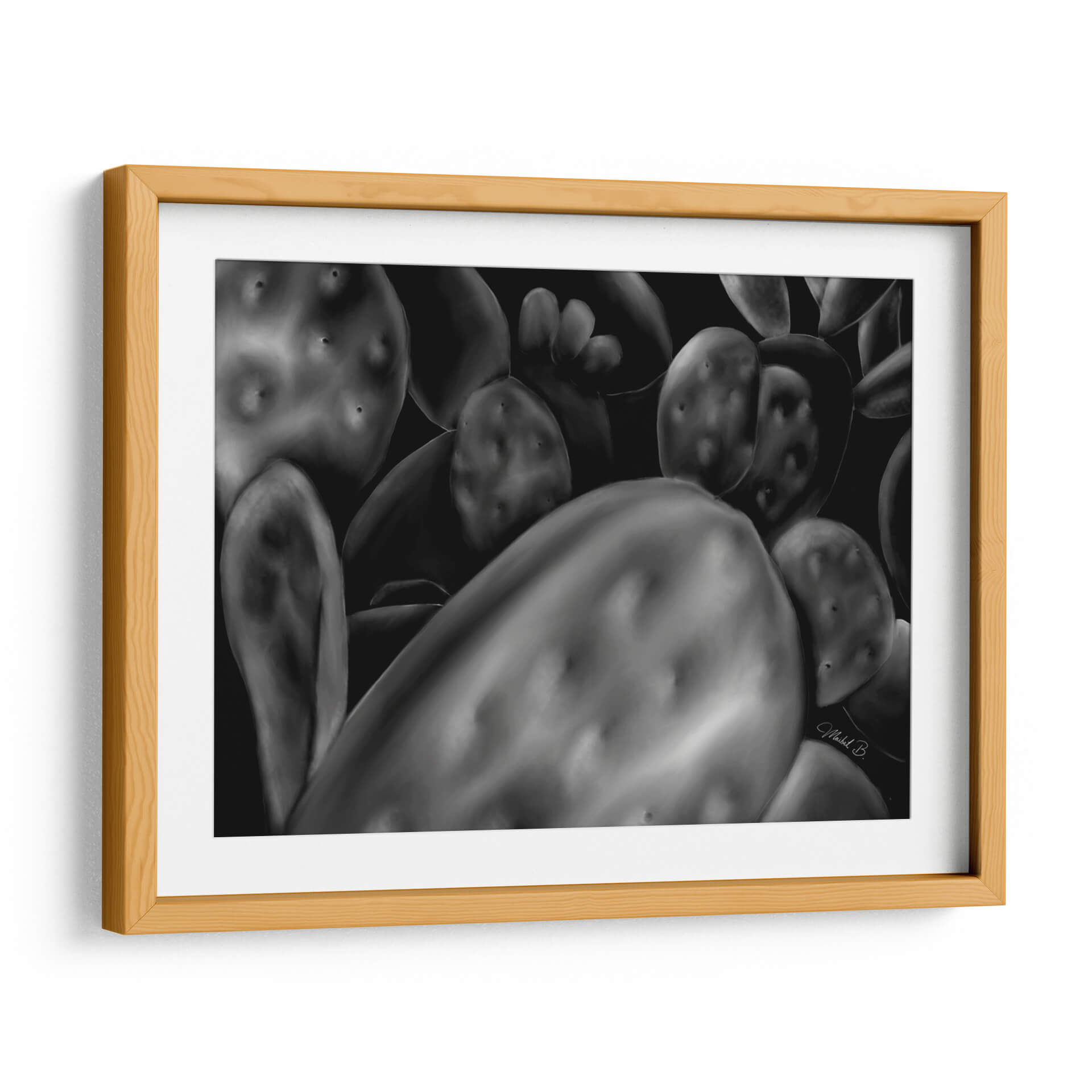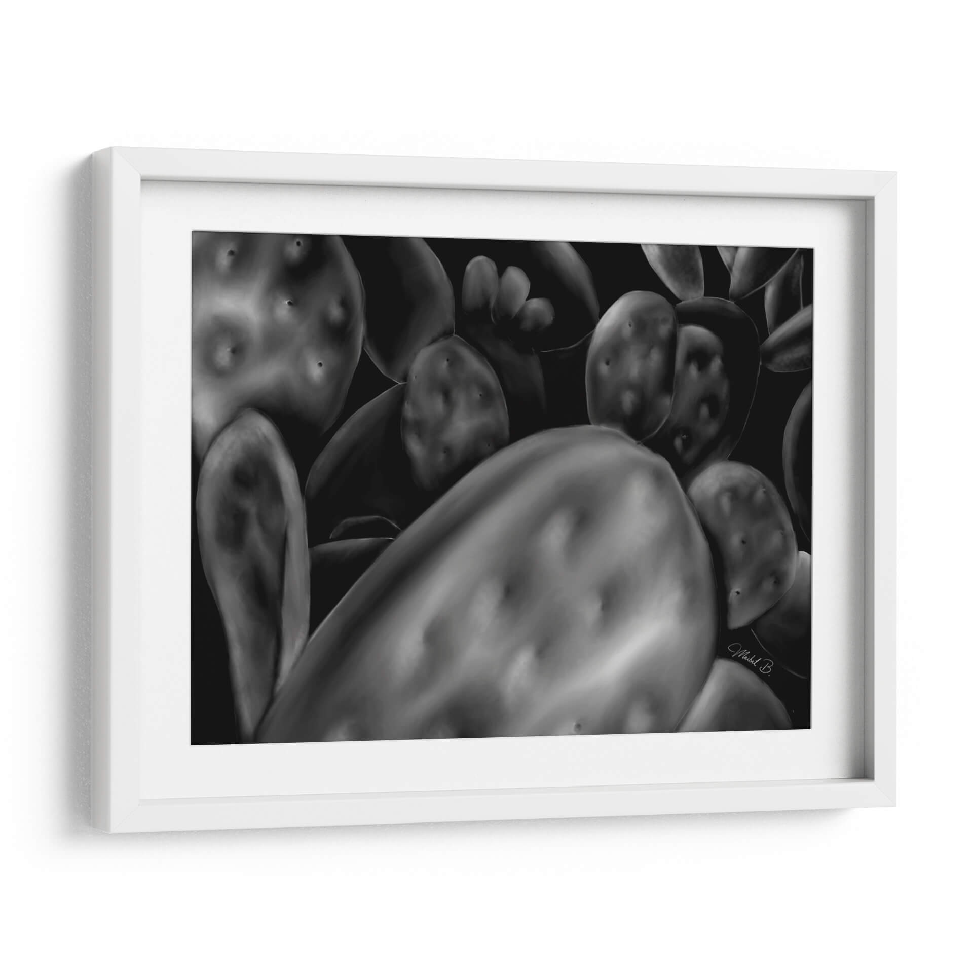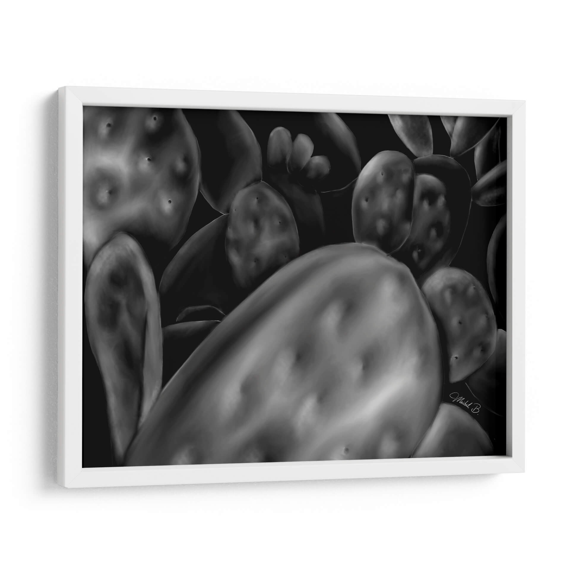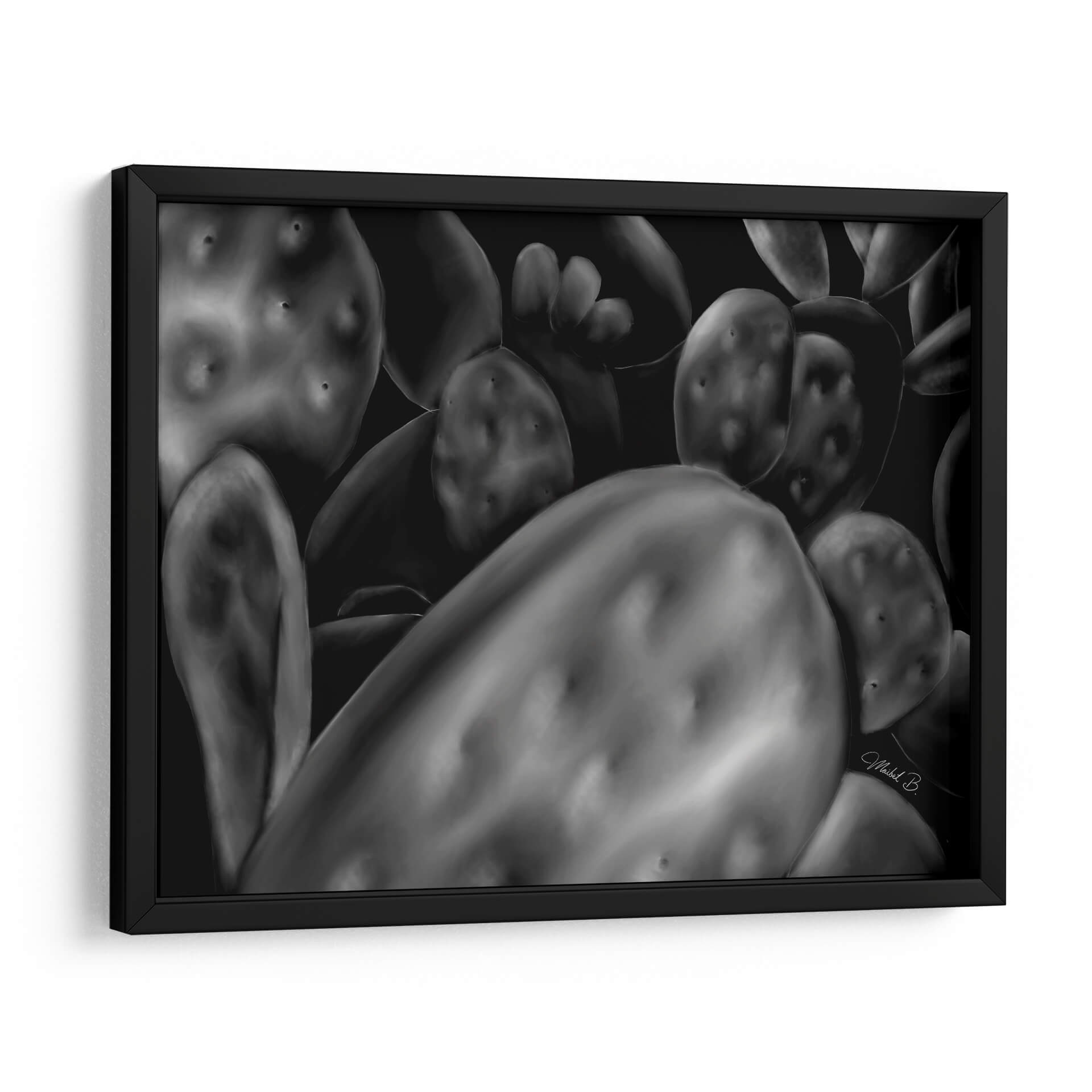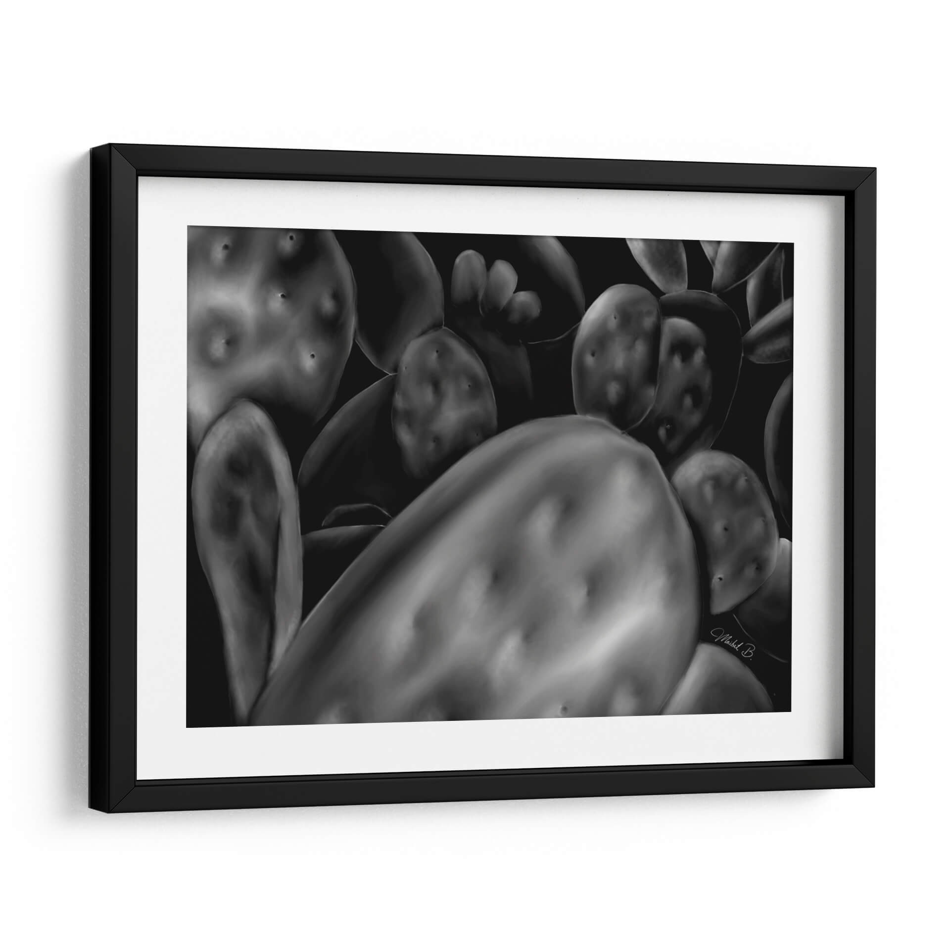 Sumérgete en la belleza natural y la textura cautivadora de "Opuntia", una obra de arte digital que captura la esencia de los cactus con un realismo impactante. Esta pieza, en una paleta de grises y negros, juega con luces y sombras para resaltar las formas esculturales y las sutiles imperfecciones de la planta, creando una atmósfera de serenidad y misterio. La composición cercana y detallada invita a contemplar la compleja estructura de las opuntias, transformando un elemento botánico común en una declaración de arte abstracto. "Opuntia" es ideal para quienes buscan añadir un toque de elegancia orgánica y un punto de interés visual a sus espacios, ya sea un hogar moderno, una oficina minimalista o un rincón tranquilo en un dormitorio. Su naturaleza monocromática y su profundo contraste la convierten en una pieza versátil, capaz de complementar una amplia gama de estilos decorativos, desde el contemporáneo hasta el industrial. Deja que la fuerza silenciosa de esta obra de arte abstracto enriquezca tu entorno y evoque una conexión con la naturaleza.