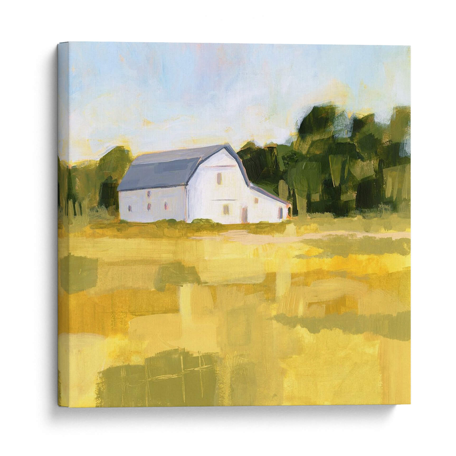 Sumérgete en la serenidad del campo con "País De Oro I", una obra de arte evocadora de Victoria Borges. Este cuadro decorativo captura la esencia de un día soleado en un entorno rural, donde una blanca y clásica granja se alza majestuosamente entre un campo dorado bañado por la luz. La paleta de colores, dominada por tonos cálidos de amarillo y ocres, junto con los verdes profundos de los árboles circundantes y el azul claro del cielo, crea una atmósfera de paz y calidez. La técnica impresionista, con pinceladas audaces y sueltas, aporta textura y dinamismo a la composición, invitando al espectador a sentir la brisa y el calor del sol. "País De Oro I" es más que una simple imagen; es una ventana a la tranquilidad y la belleza de la vida campestre, perfecta para añadir un toque de naturaleza y serenidad a tu hogar u oficina. Imagina este cuadro decorativo como un punto focal en tu sala de estar, un recordatorio de la paz rural en tu dormitorio, o una fuente de inspiración en tu estudio. Su estilo atemporal y su atmósfera acogedora lo convierten en una elección versátil para cualquier espacio que busque un toque de luz y naturaleza.