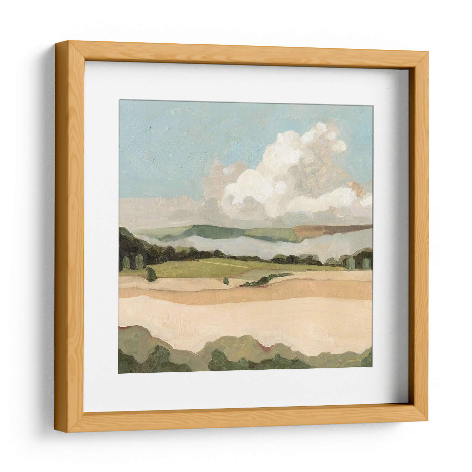 Sumérgete en la serena belleza de "Paisaje Cumulus II" de Emma Scarvey, un cuadro decorativo que captura la esencia de un vasto cielo y una campiña ondulante. Esta obra evoca una sensación de tranquilidad y espacio, invitando a la contemplación. Los suaves tonos pastel del cielo, dominados por nubes algodonosas, contrastan delicadamente con los verdes profundos de los árboles y los campos dorados que se extienden hasta el horizonte. La pincelada es suelta y expresiva, aportando una textura rica y un aire impresionista a la escena, sugiriendo un paisaje que es a la vez familiar y etéreo. La composición, que divide el lienzo entre el cielo expansivo y la tierra fértil, crea un equilibrio visual armonioso. "Paisaje Cumulus II" es perfecto para añadir un toque de calma y sofisticación a cualquier sala de estar, dormitorio u oficina, transformando tu espacio en un refugio de paz y belleza natural. Este cuadro decorativo contemporáneo es una invitación a soñar despierto y a conectar con la naturaleza a través del arte.