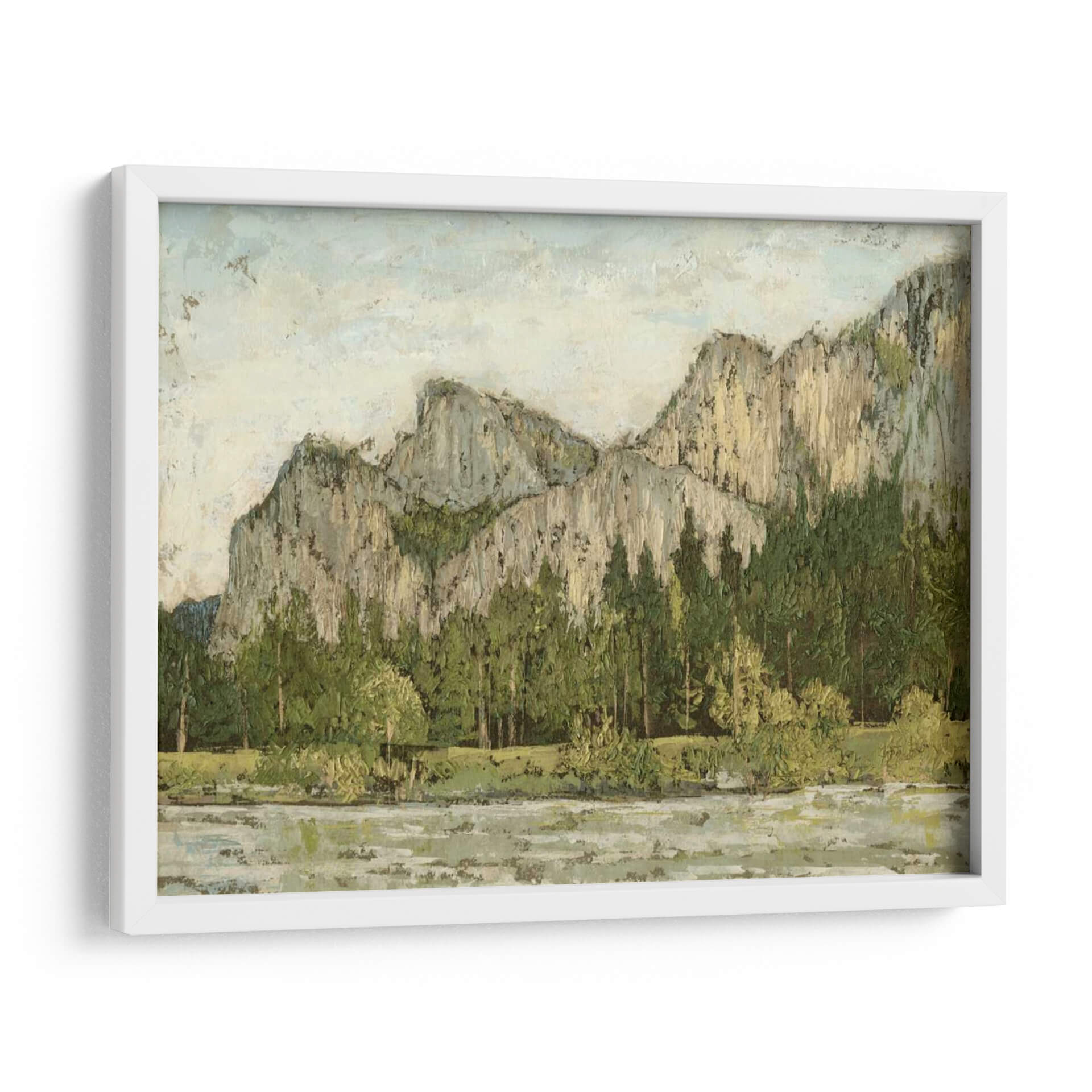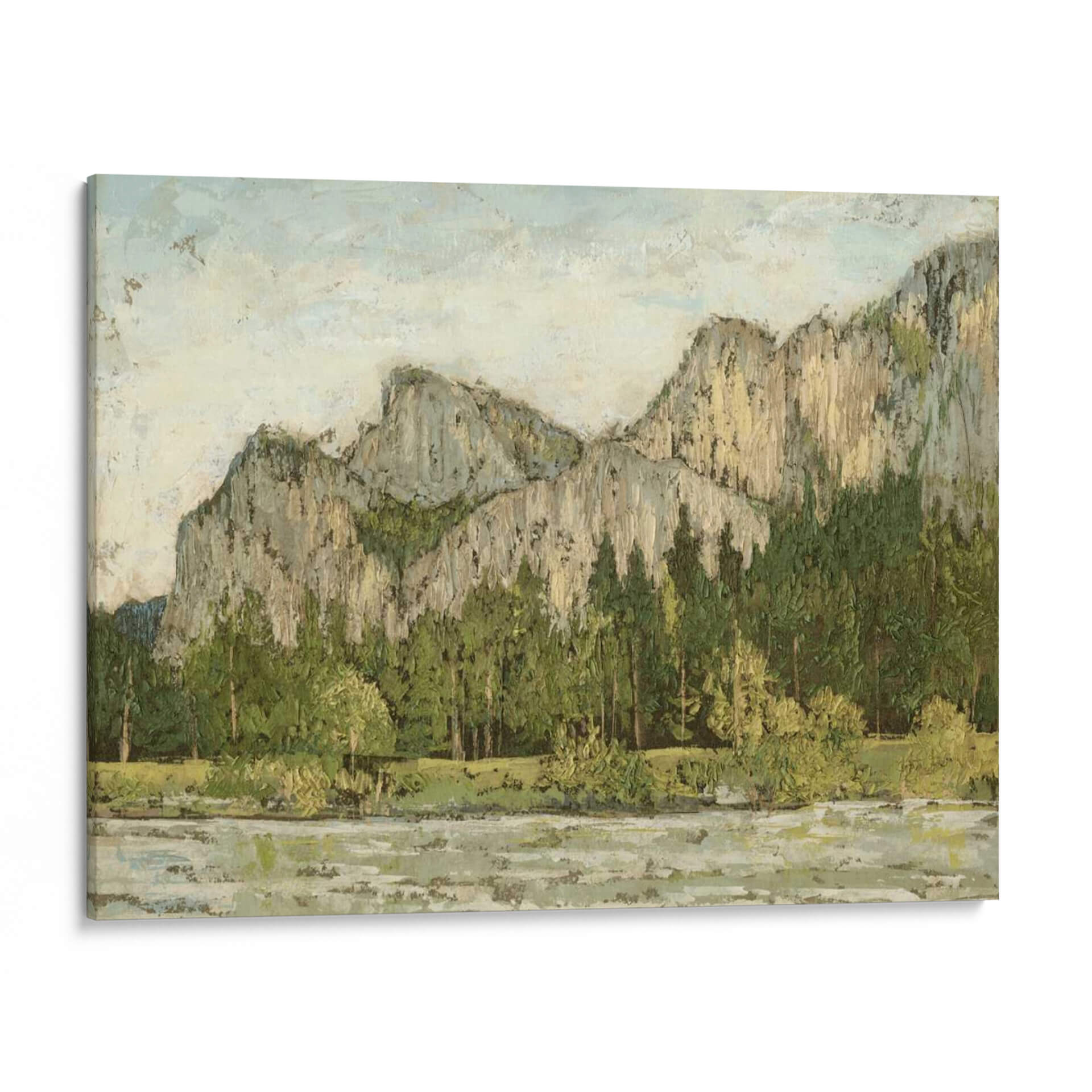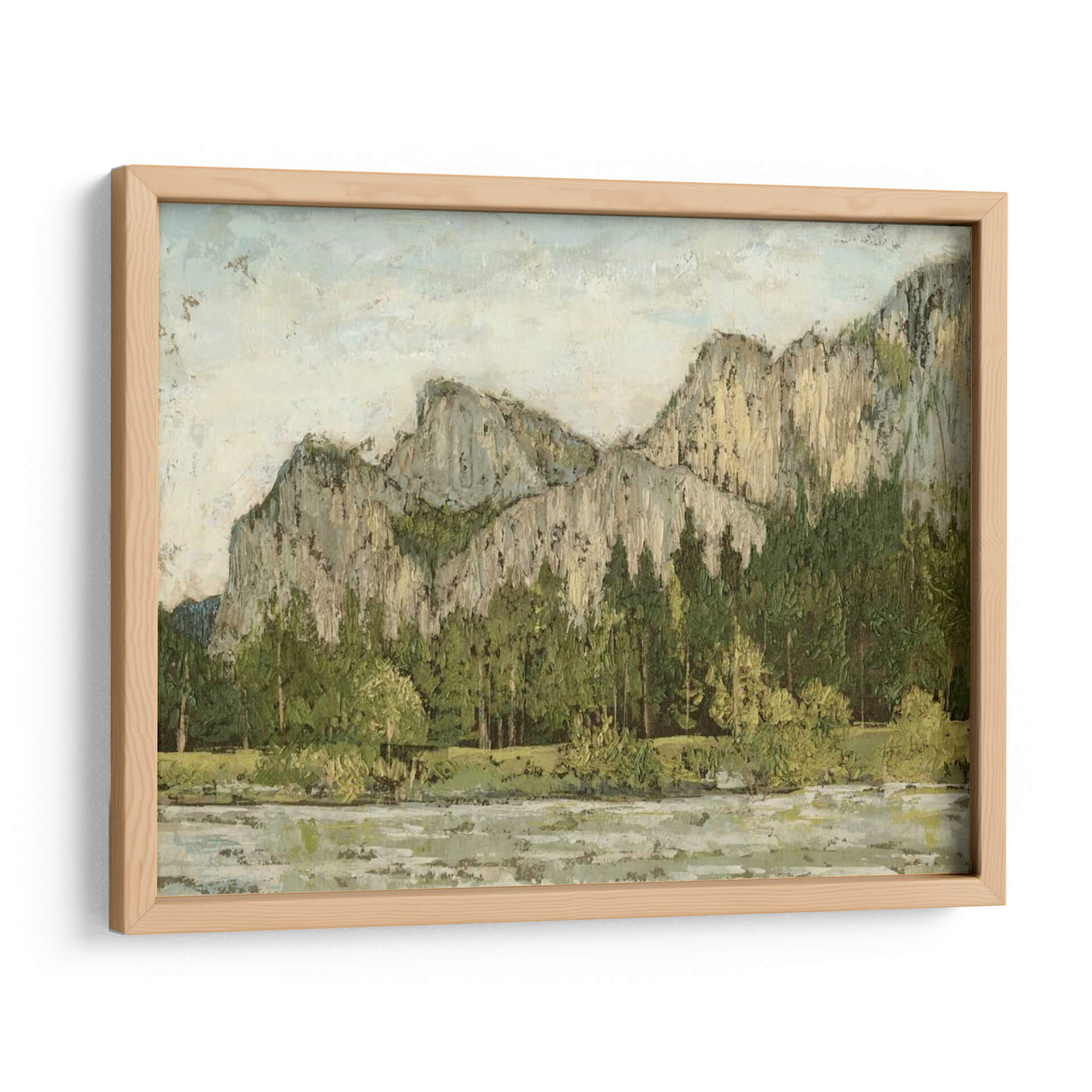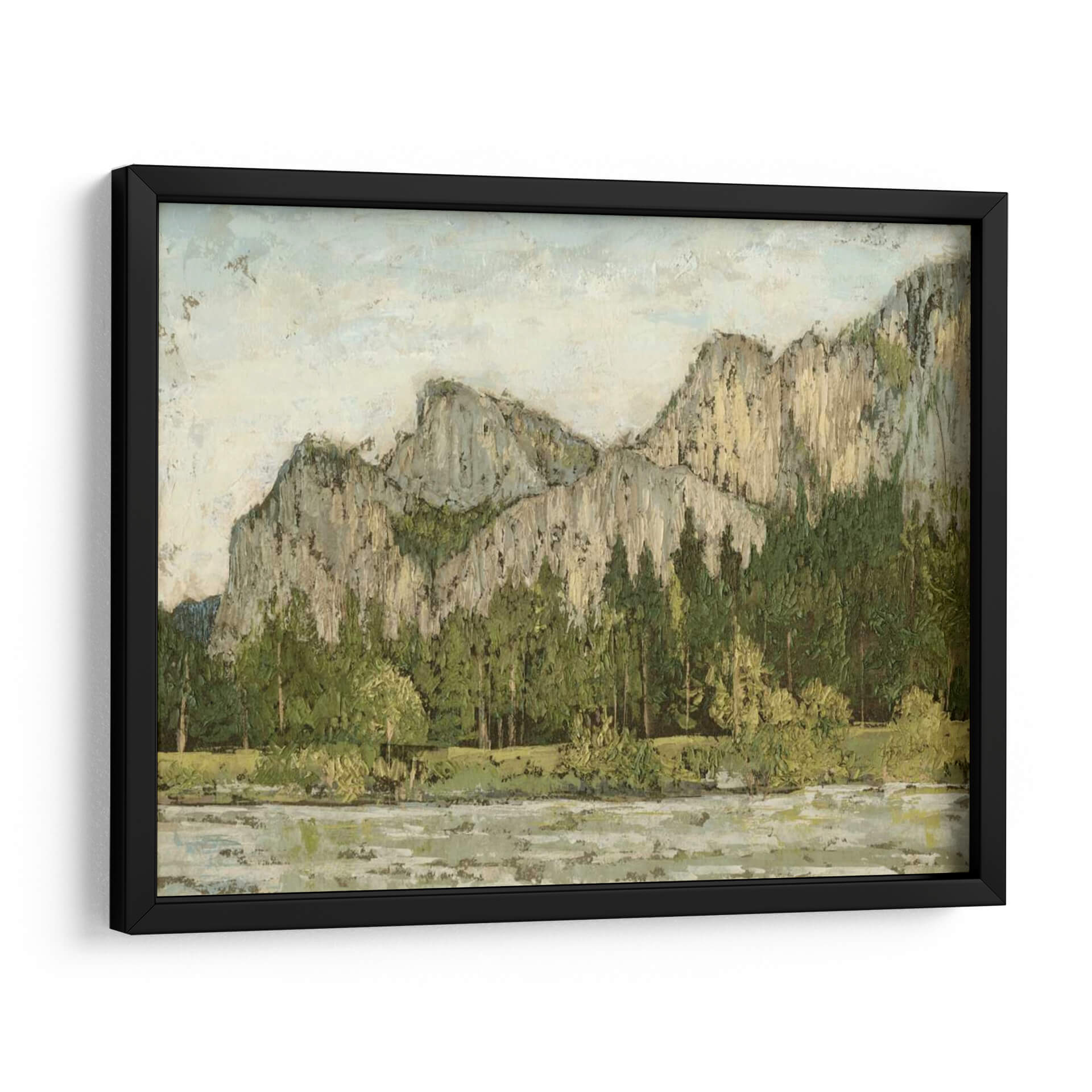 Sumérgete en la serenidad del "Paisaje Occidental I", una obra de arte cautivadora de Megan Meagher que captura la majestuosidad de la naturaleza con una técnica expresiva y una paleta de colores inspirada. Este cuadro decorativo presenta imponentes formaciones rocosas bañadas por la luz del día, contrastando con la frondosidad de un denso bosque de pinos que se extiende hasta la orilla de un río o lago sereno. La aplicación de la pintura, con pinceladas visibles y una textura rica, evoca una sensación de realismo impresionista, invitando al espectador a una profunda conexión con el entorno natural. Los tonos verdes y ocres de la vegetación y las rocas se combinan armoniosamente con los celestes y blancos difusos del cielo, creando una atmósfera de calma y contemplación. Ideal para añadir un toque de tranquilidad y belleza escénica a cualquier espacio, desde un acogedor hogar hasta una oficina profesional. "Paisaje Occidental I" no es solo una pieza decorativa, sino una ventana a un mundo de paz y asombro natural, perfecta para quienes buscan infundir sus ambientes con la grandeza del mundo exterior.