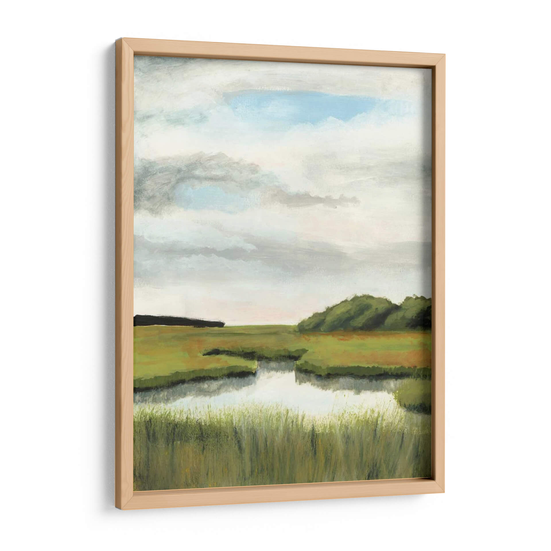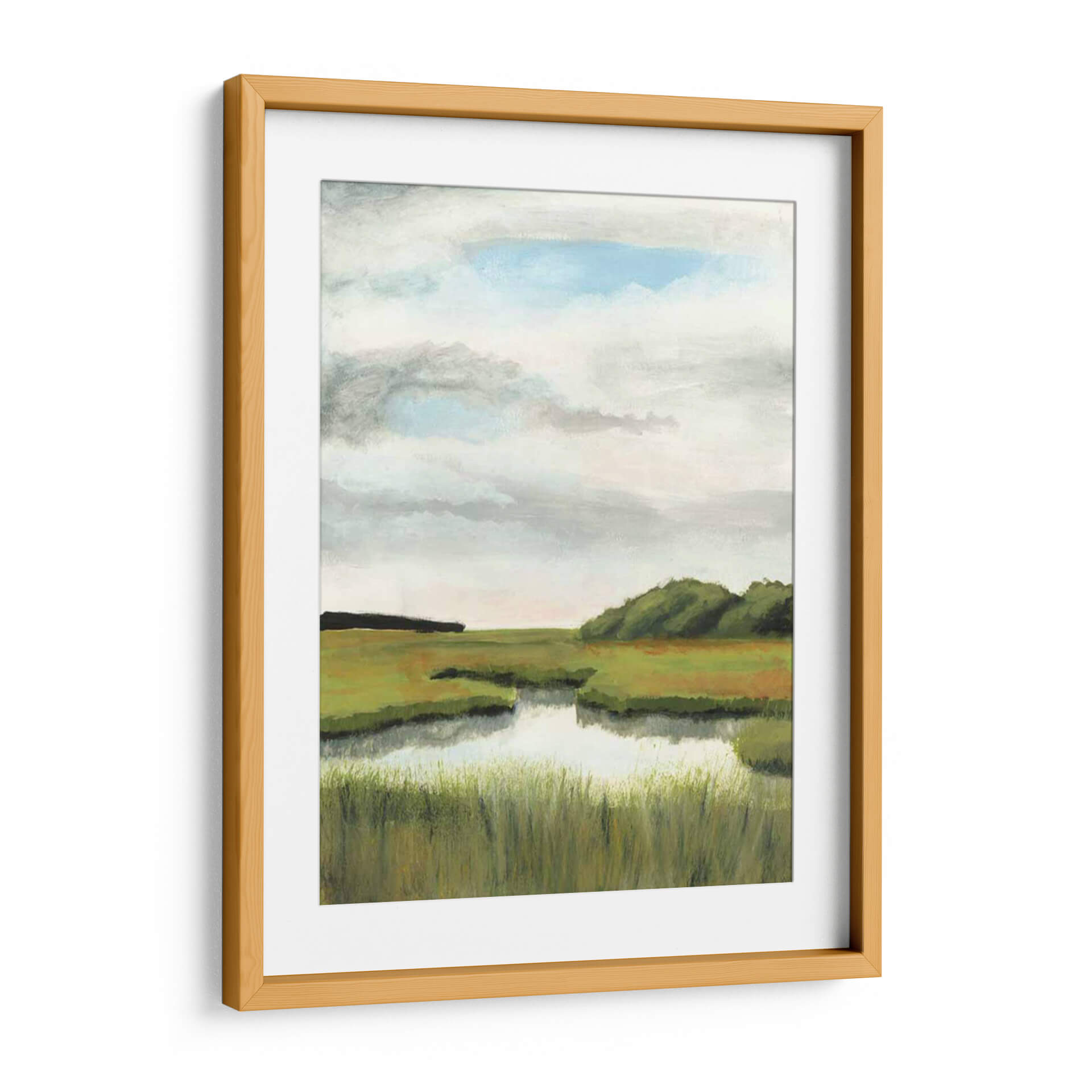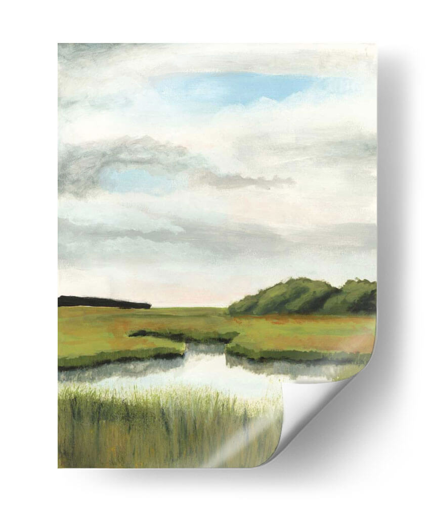 Sumérgete en la serenidad de la naturaleza con "Paisajes De Marsh Ii", una obra de arte evocadora de Naomi McCavitt. Este cuadro decorativo captura la esencia de un marjal tranquilo bajo un cielo etéreo, invitando a la contemplación y la calma. Los verdes exuberantes de la vegetación, salpicados de tonos tierra, se reflejan suavemente en las aguas serenas, creando una atmósfera de paz profunda. La paleta de colores, dominada por verdes, ocres y el azul pálido del cielo nublado, transmite una sensación de tranquilidad y conexión con el entorno natural. El estilo impresionista de McCavitt, con pinceladas sueltas y una composición que prioriza la luz y la atmósfera, da vida a este paisaje con una emotividad palpable. Ideal para quienes buscan infundir serenidad en su hogar u oficina, este cuadro es una ventana a la belleza sutil y la quietud del mundo natural. Añade un toque de naturaleza y calma a tu espacio con esta pieza única, perfecta para salones, dormitorios o cualquier rincón que necesite una dosis de serenidad y estilo contemporáneo. Transforma tu pared en un oasis de tranquilidad.