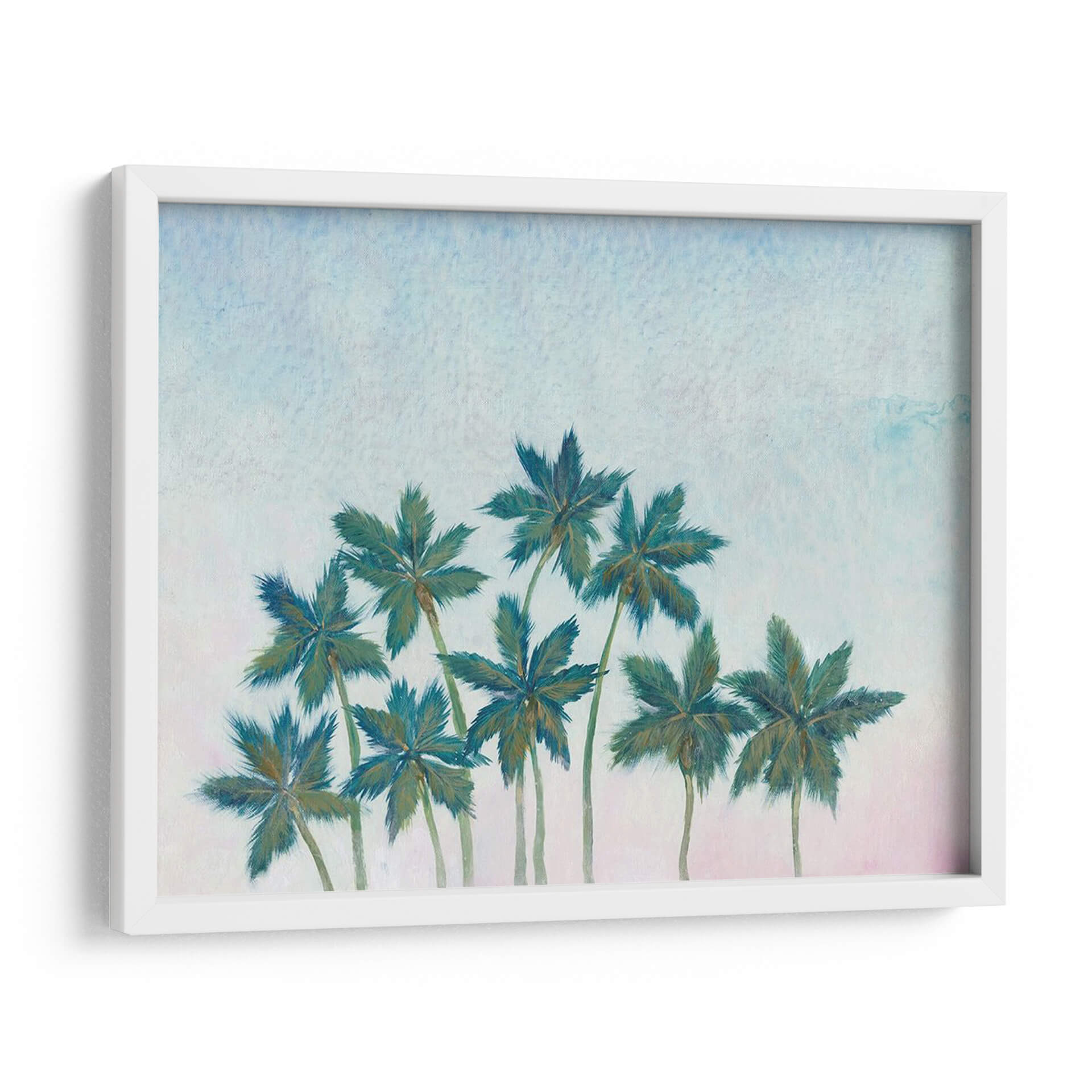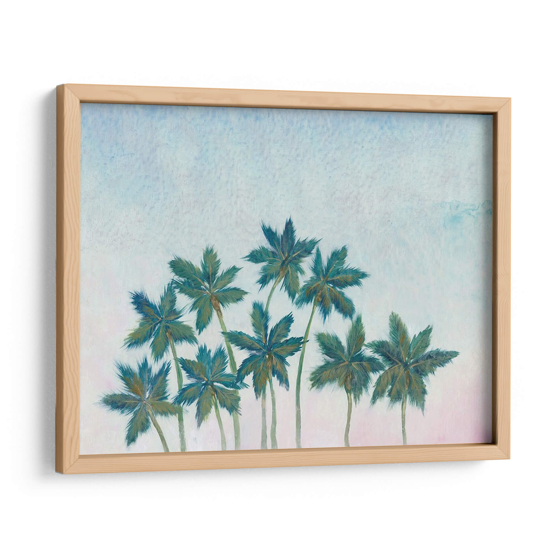 Transporta tus sentidos a un paraíso tropical con este evocador cuadro decorativo 'Palm Treeline II' de Tim O'Toole. La obra captura la serena belleza de una línea de palmeras contra un cielo etéreo, teñido con suaves tonos de azul y rosa pálido, evocando la calma de un atardecer en la playa. Las siluetas de las palmeras, representadas con pinceladas expresivas y un enfoque casi impresionista, se alzan con gracia, sus frondas de un verde azulado profundo contrastando sutilmente con el fondo difuminado. La textura sutil del cielo, reminiscente de acuarela o pintura al óleo, añade una dimensión de profundidad y tranquilidad a la composición. Este cuadro decorativo es ideal para añadir un toque de serenidad y escapismo a cualquier espacio, transformando tu sala de estar, dormitorio u oficina en un refugio de paz. Su estilo contemporáneo y temática playera lo convierten en una adición versátil para una variedad de decoraciones, desde las más bohemias hasta las minimalistas, invitando a la relajación y la contemplación. Permite que la brisa tropical y la luz suave de este cuadro llenen tu hogar de una atmósfera de vacaciones permanentes.