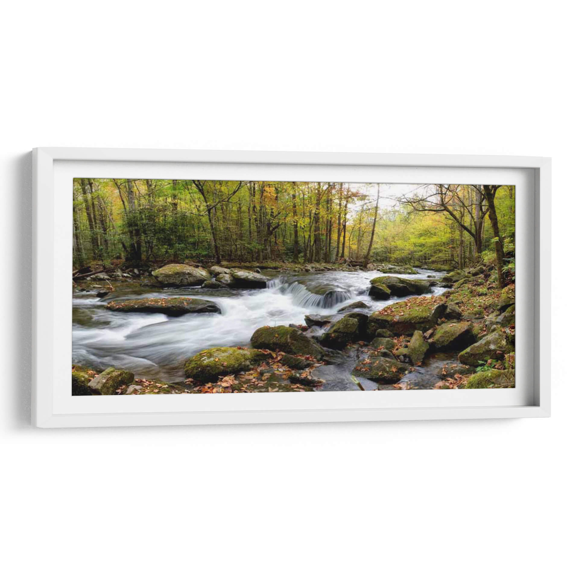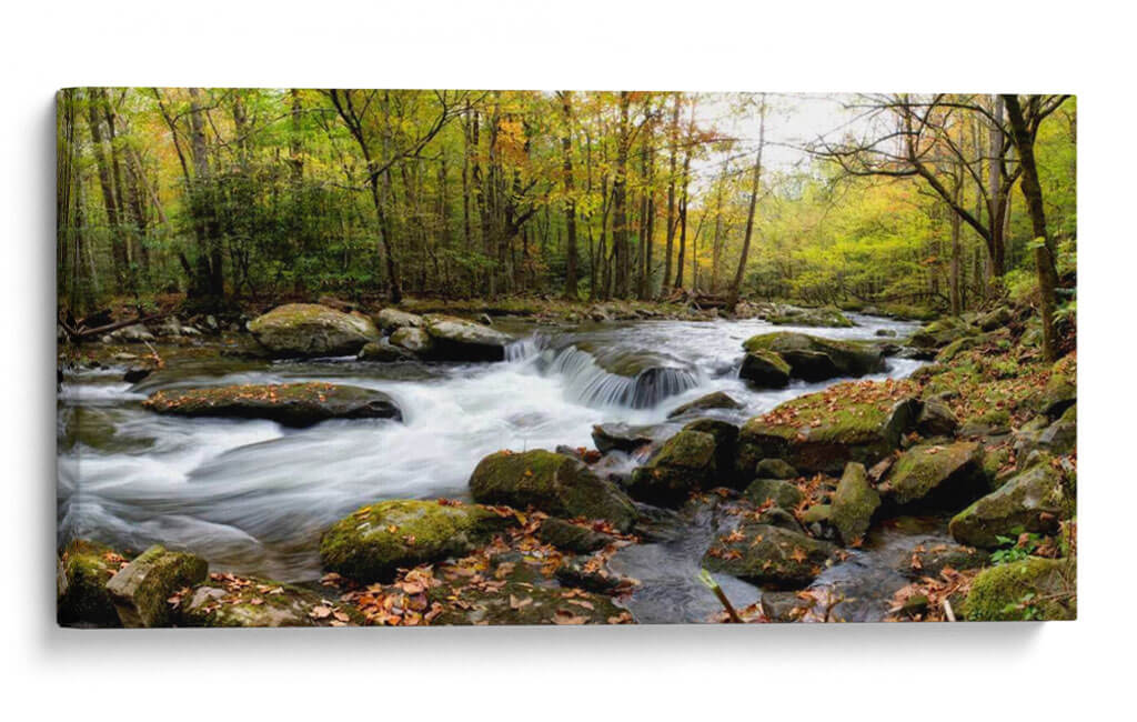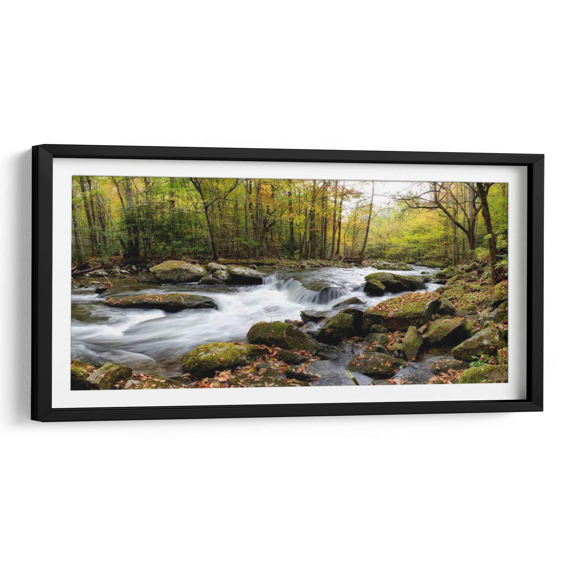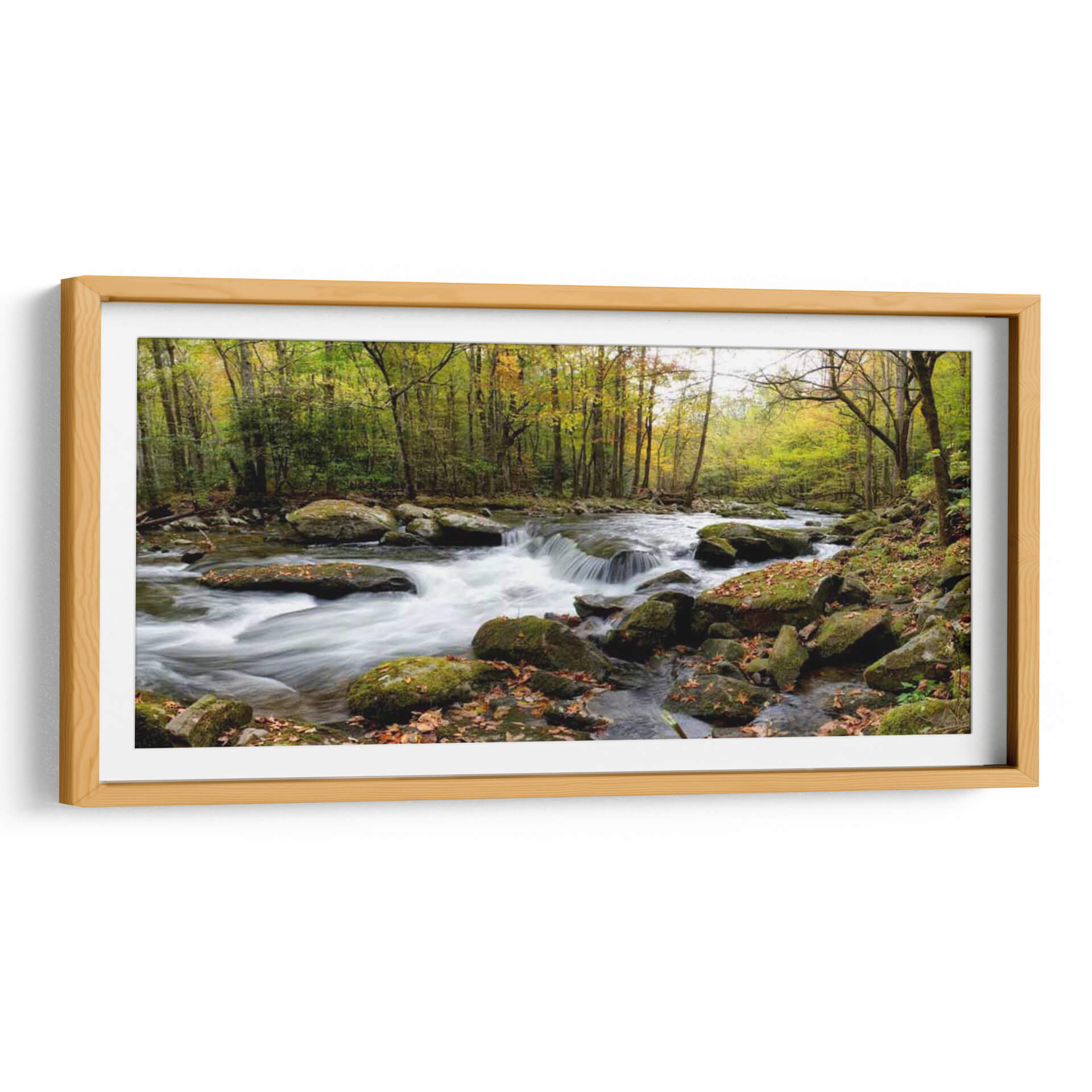 Sumérgete en la serenidad de la naturaleza con "Panorama De Flujo Sobre Flujo", una cautivadora obra de arte de Danny Head que captura la esencia de un río serpenteante a través de un bosque frondoso. La imagen presenta un flujo de agua dinámico y arremolinado, flanqueado por rocas cubiertas de musgo y la exuberante vegetación otoñal. Los vibrantes tonos verdes de los árboles se mezclan con los cálidos ocres y dorados de las hojas caídas, creando una paleta de colores rica y armoniosa que evoca una sensación de paz y conexión con la naturaleza. La técnica fotográfica, que utiliza una larga exposición, suaviza el movimiento del agua, dándole una cualidad etérea y casi pictórica a la escena. Este cuadro decorativo es ideal para añadir un toque de tranquilidad y belleza natural a cualquier espacio, ya sea un salón moderno, una acogedora sala de estar o un sereno dormitorio. Su composición panorámica ofrece una vista expansiva que invita a la contemplación, convirtiéndose en un punto focal inspirador que transporta al espectador a un remanso de calma. "Panorama De Flujo Sobre Flujo" no es solo una decoración, es una ventana a la belleza intemporal de la naturaleza.