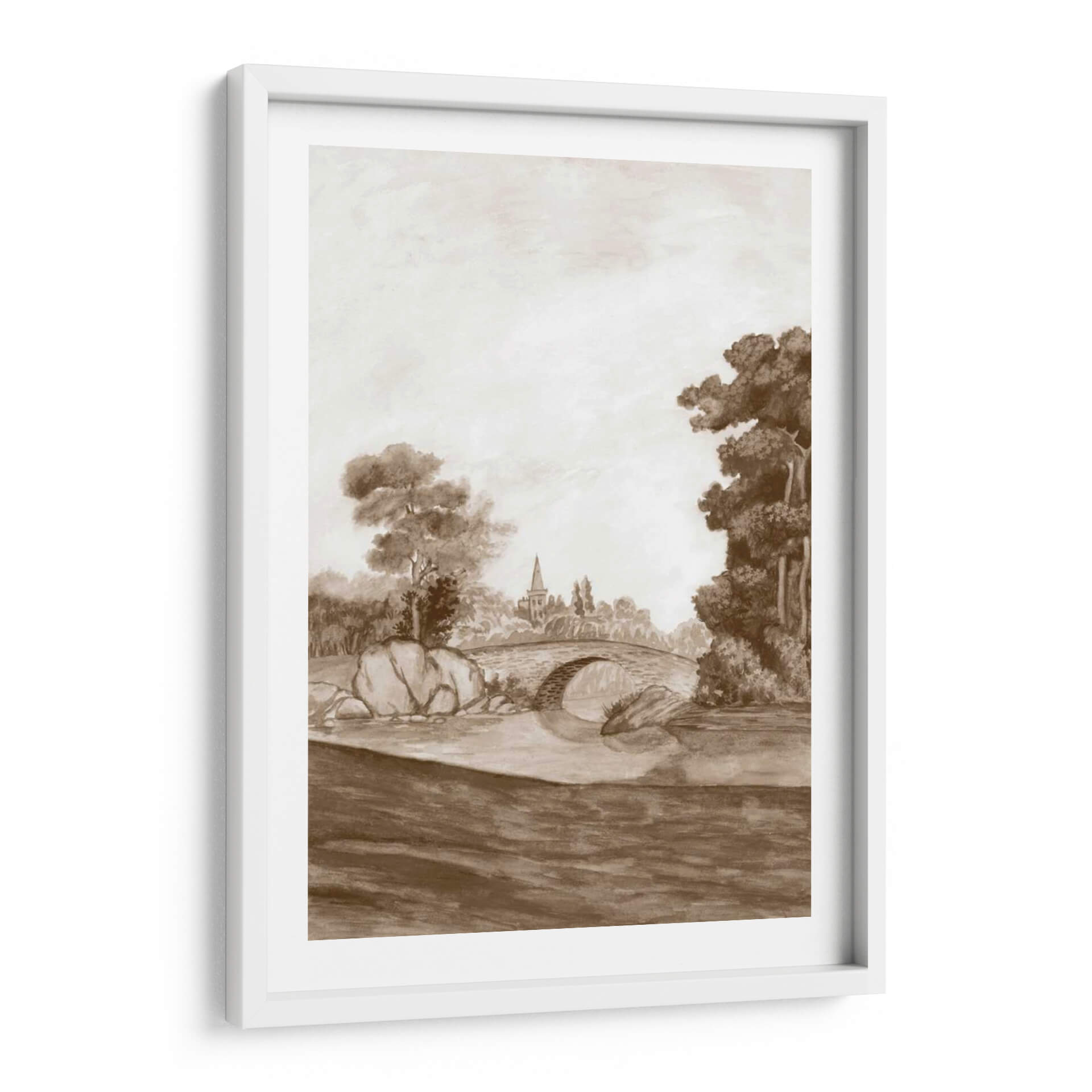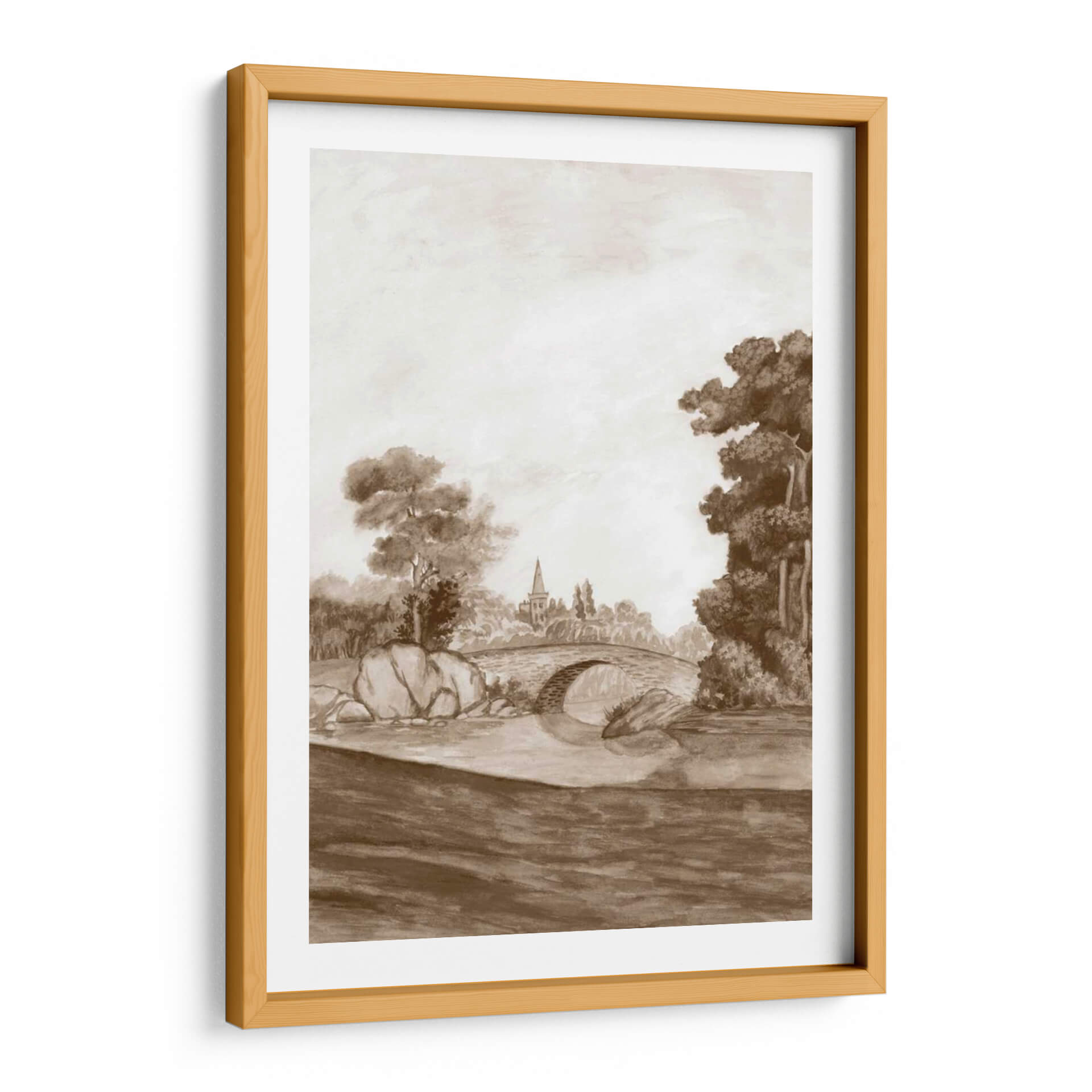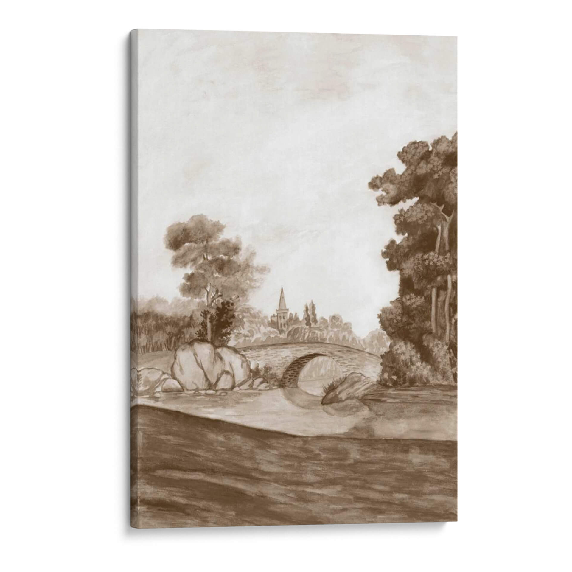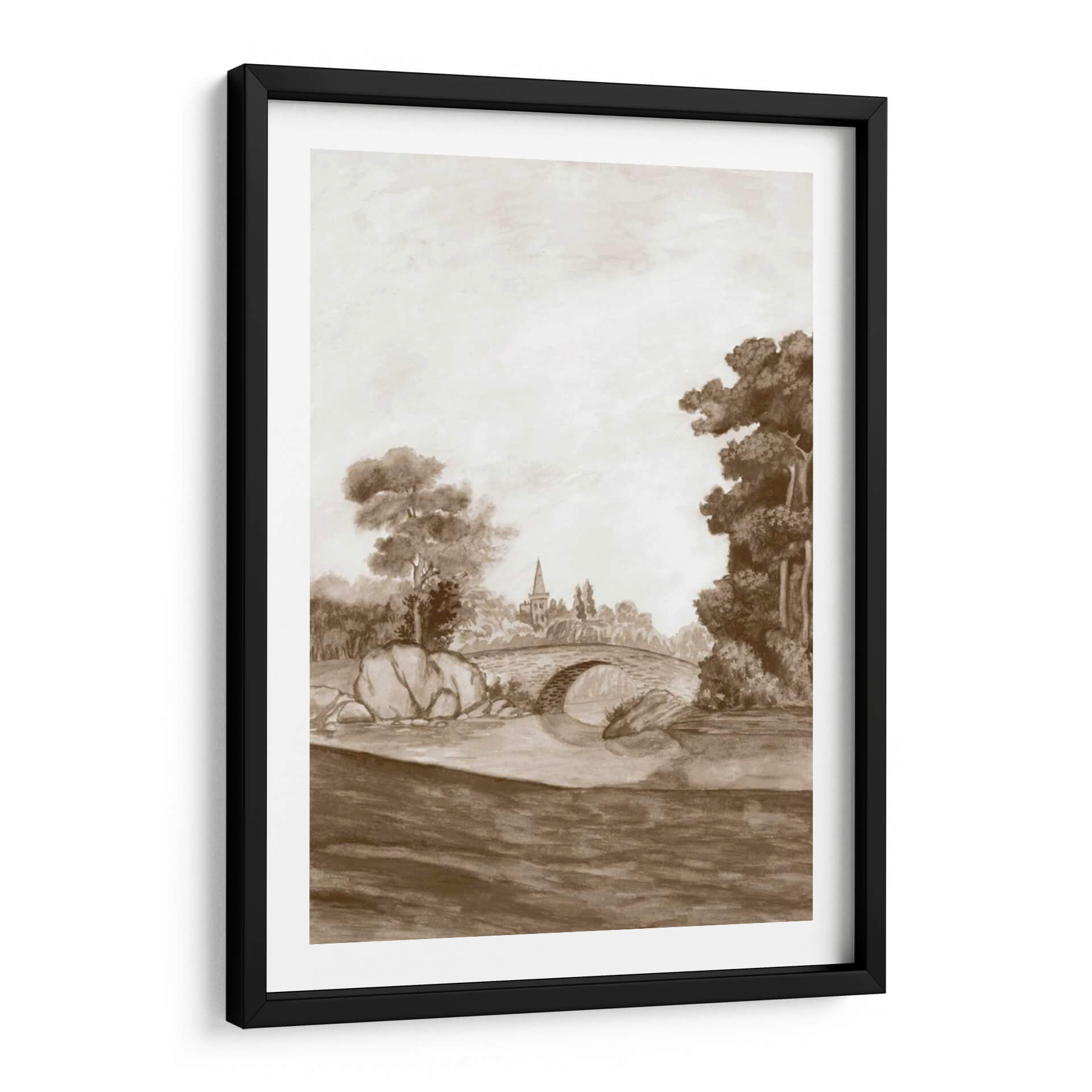 Sumérgete en la serenidad atemporal de "Papel De Pared Francés Sepia Iii" de Naomi McCavitt, una obra de arte que evoca paisajes clásicos con una delicada paleta sepia. Esta pieza captura la esencia de un idílico campo francés, con un pintoresco puente de piedra arqueado que cruza un río tranquilo. A cada lado, exuberantes árboles y rocas forman un marco natural, mientras que a lo lejos se vislumbra una encantadora iglesia con su aguja apuntando al cielo. La técnica de acuarela o dibujo a lápiz en tonos sepia otorga a la obra una atmósfera nostálgica y soñadora, perfecta para añadir un toque de calma y sofisticación a cualquier espacio. Su composición equilibrada y su temática paisajística la convierten en una adición versátil para salas de estar, dormitorios o estudios, aportando una sensación de paz y conexión con la naturaleza. Ideal para quienes buscan un cuadro decorativo que combine elegancia clásica con una estética serena y artística, este paisaje sepia invita a la contemplación y al deleite visual, transformando tu hogar en un refugio de tranquilidad.