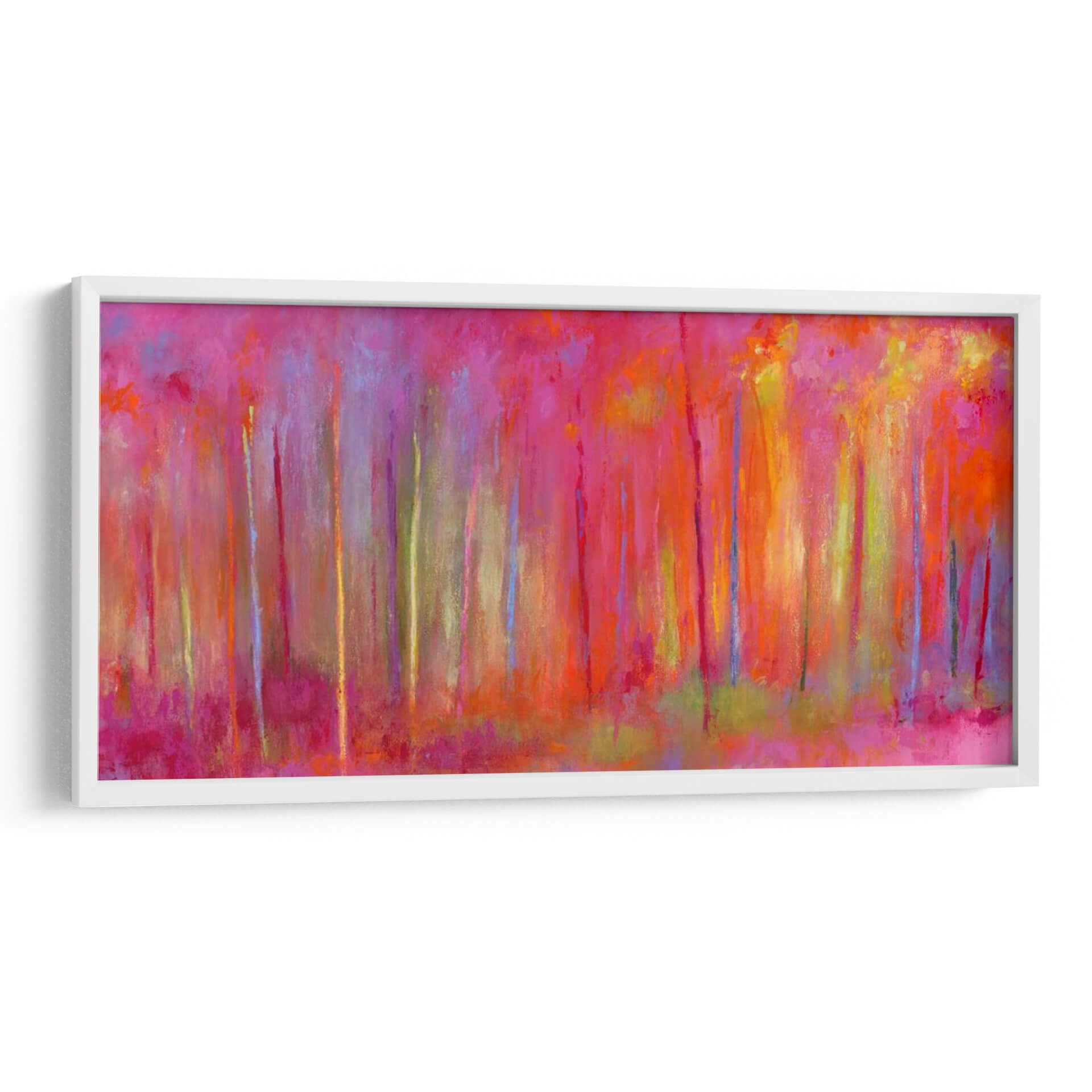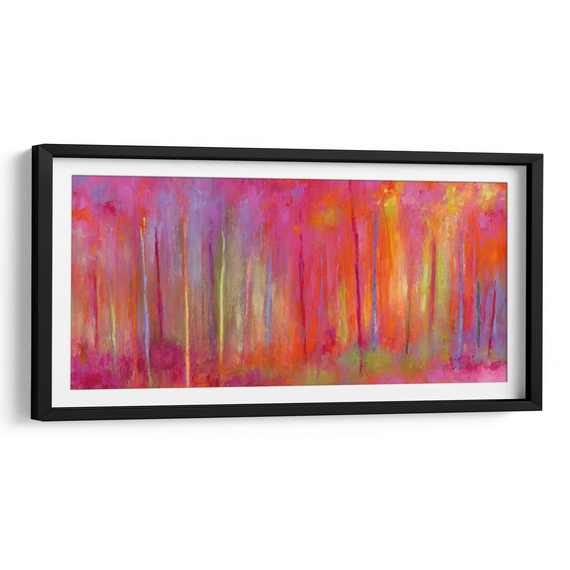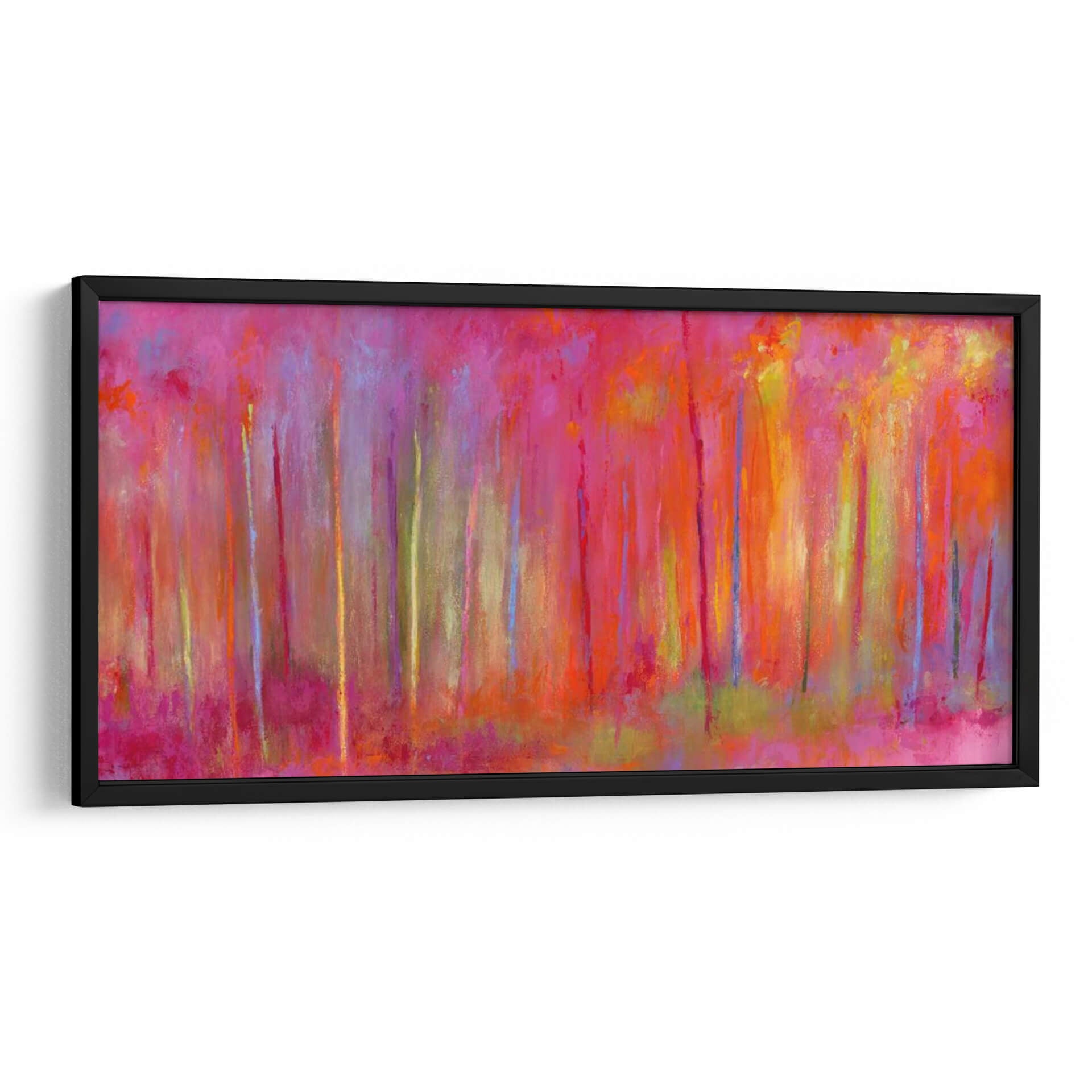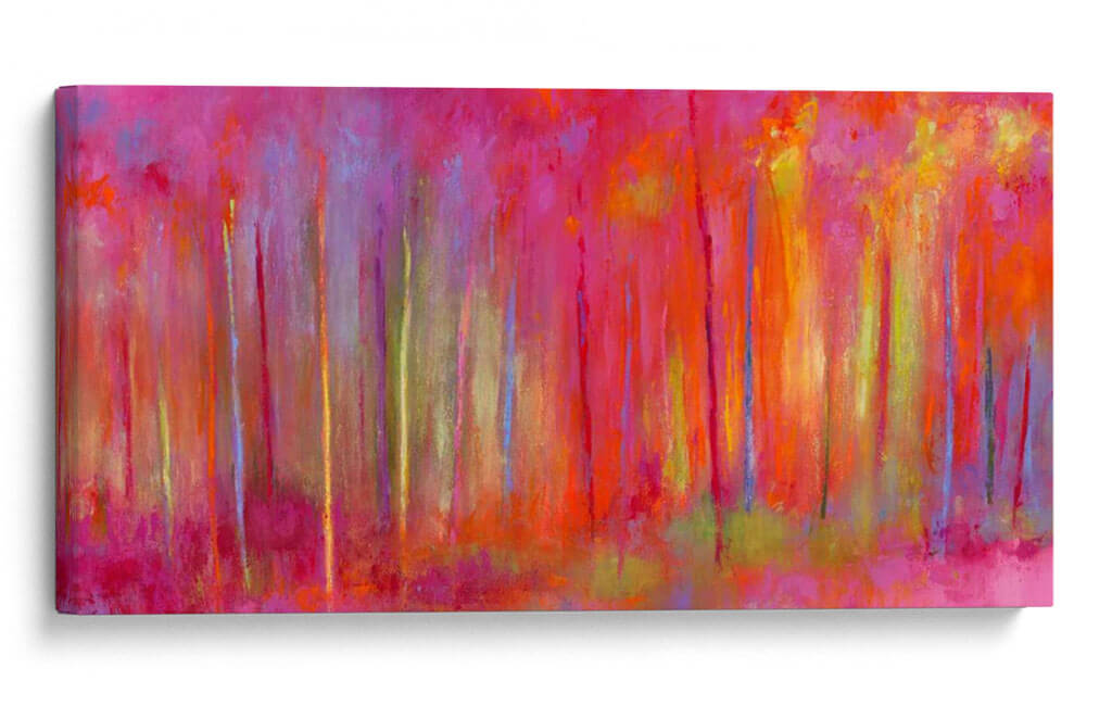 Sumérgete en la vibrante y enigmática obra de Janet Bothne, titulada "Parando Por Bosques Para Celebrar". Este cuadro decorativo es una explosión de color que evoca la magia de un bosque bañado por una luz etérea y saturada. Las pinceladas expresivas y la composición vertical crean una sensación de profundidad y movimiento, invitando al espectador a perderse en sus matices. Predominan los tonos intensos de fucsia, naranja y amarillo, salpicados por toques de azul y verde, que generan una atmósfera enérgica pero a la vez serena. Ideal para aquellos que buscan infundir vitalidad y un toque artístico audaz en sus espacios, este cuadro es perfecto para salas de estar modernas, comedores o incluso oficinas que deseen un punto focal inspirador. Su estilo abstracto contemporáneo permite múltiples interpretaciones, haciendo de cada mirada una nueva experiencia. Añade una pieza única que capture la imaginación y transforme tu hogar en una galería personal, celebrando la belleza de la naturaleza a través de una visión artística moderna y llena de sentimiento. Es una invitación a detenerse y apreciar la intensidad cromática y la emoción pura del arte.