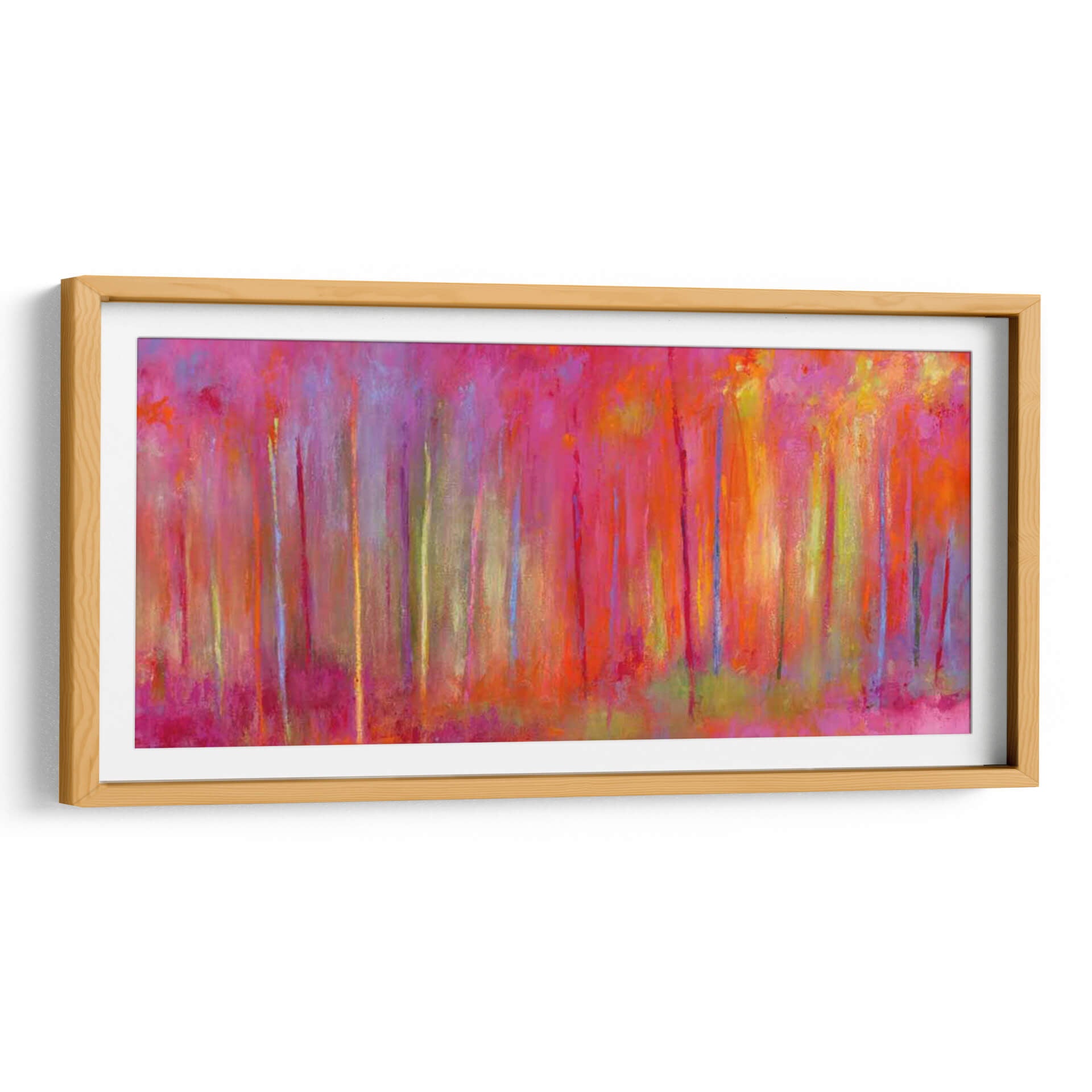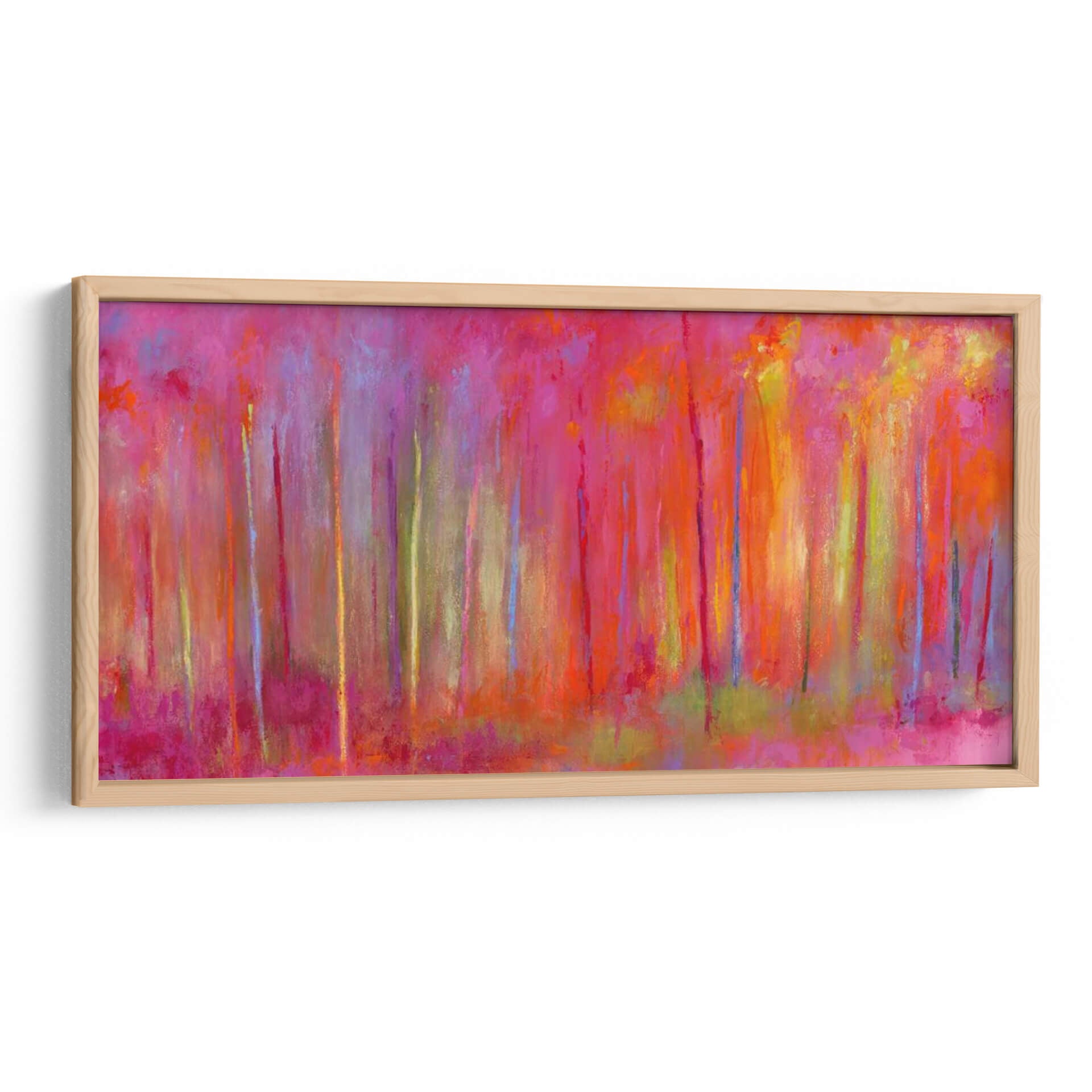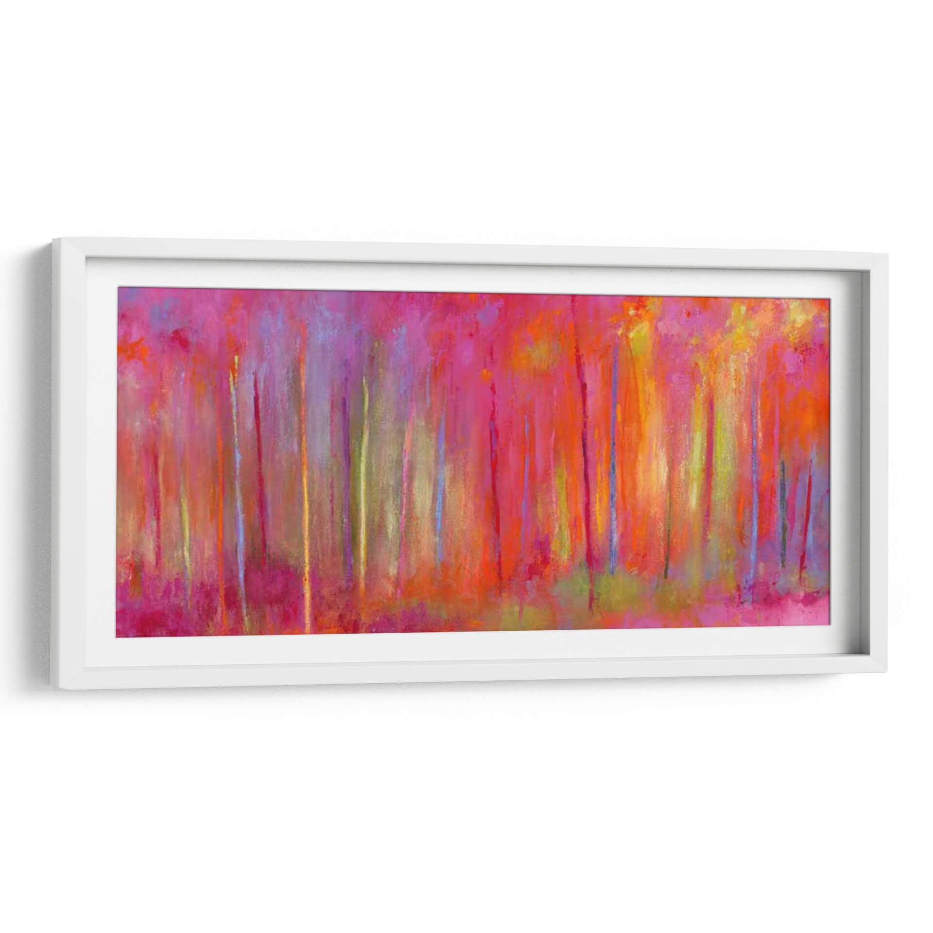 Sumérgete en la vibrante y enigmática obra de Janet Bothne, titulada "Parando Por Bosques Para Celebrar". Este cuadro decorativo es una explosión de color que evoca la magia de un bosque bañado por una luz etérea y saturada. Las pinceladas expresivas y la composición vertical crean una sensación de profundidad y movimiento, invitando al espectador a perderse en sus matices. Predominan los tonos intensos de fucsia, naranja y amarillo, salpicados por toques de azul y verde, que generan una atmósfera enérgica pero a la vez serena. Ideal para aquellos que buscan infundir vitalidad y un toque artístico audaz en sus espacios, este cuadro es perfecto para salas de estar modernas, comedores o incluso oficinas que deseen un punto focal inspirador. Su estilo abstracto contemporáneo permite múltiples interpretaciones, haciendo de cada mirada una nueva experiencia. Añade una pieza única que capture la imaginación y transforme tu hogar en una galería personal, celebrando la belleza de la naturaleza a través de una visión artística moderna y llena de sentimiento. Es una invitación a detenerse y apreciar la intensidad cromática y la emoción pura del arte.