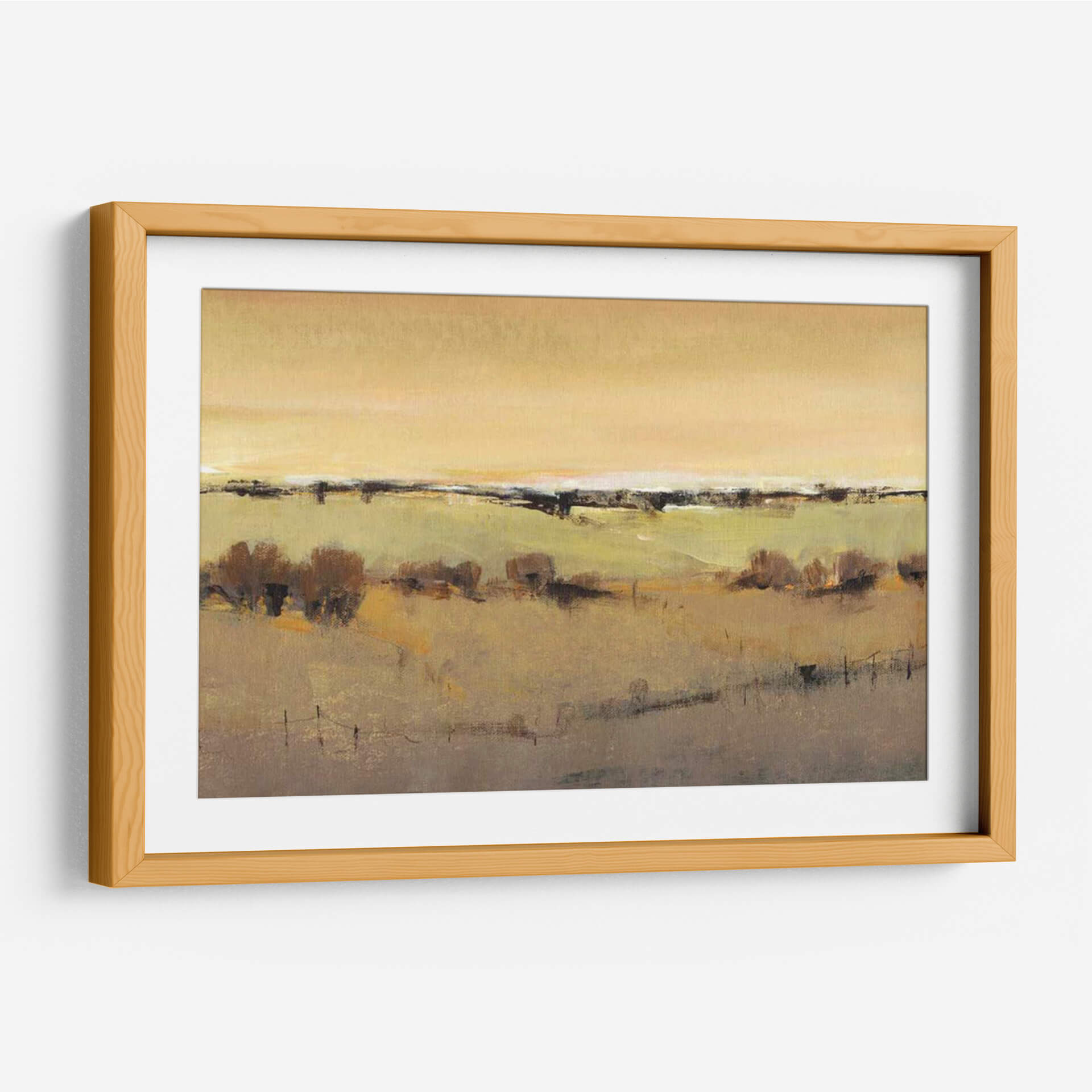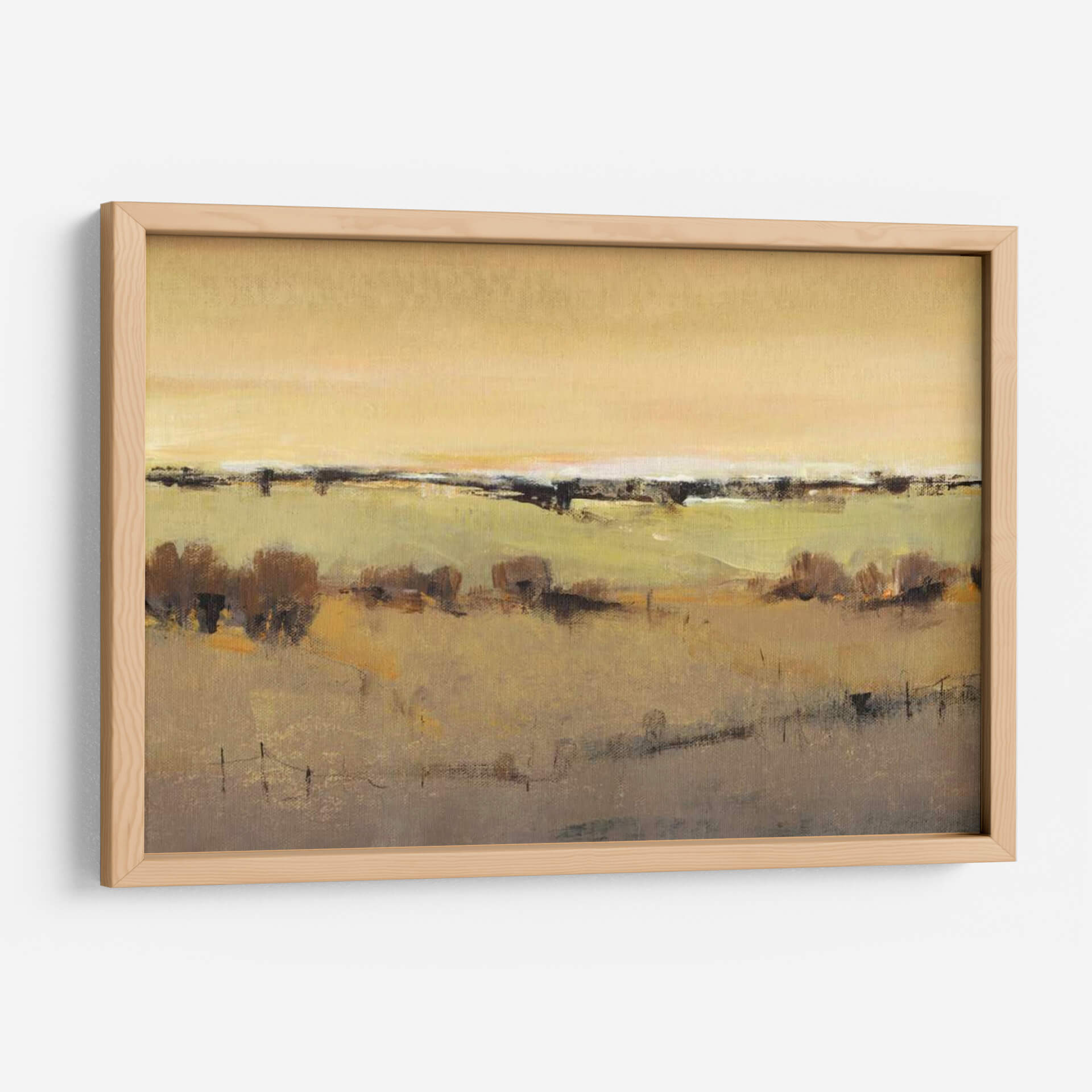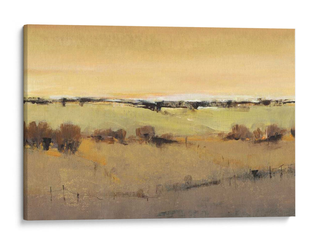 Sumérgete en la serenidad de "Pasto Golden I", una cautivadora obra de arte abstracto que evoca la calidez y la tranquilidad de un paisaje dorado. El artista Tim O'Toole utiliza una paleta de colores terrosos y ocres, con sutiles toques de verde y negro, para crear una atmósfera etérea y pacífica. La composición se centra en capas texturizadas que sugieren campos ondulantes y una línea de horizonte tenue, invitando a la contemplación. Las pinceladas sueltas y expresivas añaden profundidad y movimiento, transformando este cuadro decorativo en un punto focal inspirador para cualquier estancia. Ideal para salones, dormitorios o estudios, "Pasto Golden I" aporta una sensación de calma y conexión con la naturaleza. Su estilo abstracto contemporáneo se integra a la perfección en decoraciones modernas y minimalistas, añadiendo un toque de sofisticación y calidez. Este lienzo es más que una simple decoración; es una invitación a la introspección y al disfrute de la belleza sutil del mundo natural, ofreciendo una experiencia visual única y relajante a quienes buscan embellecer sus espacios con arte significativo.