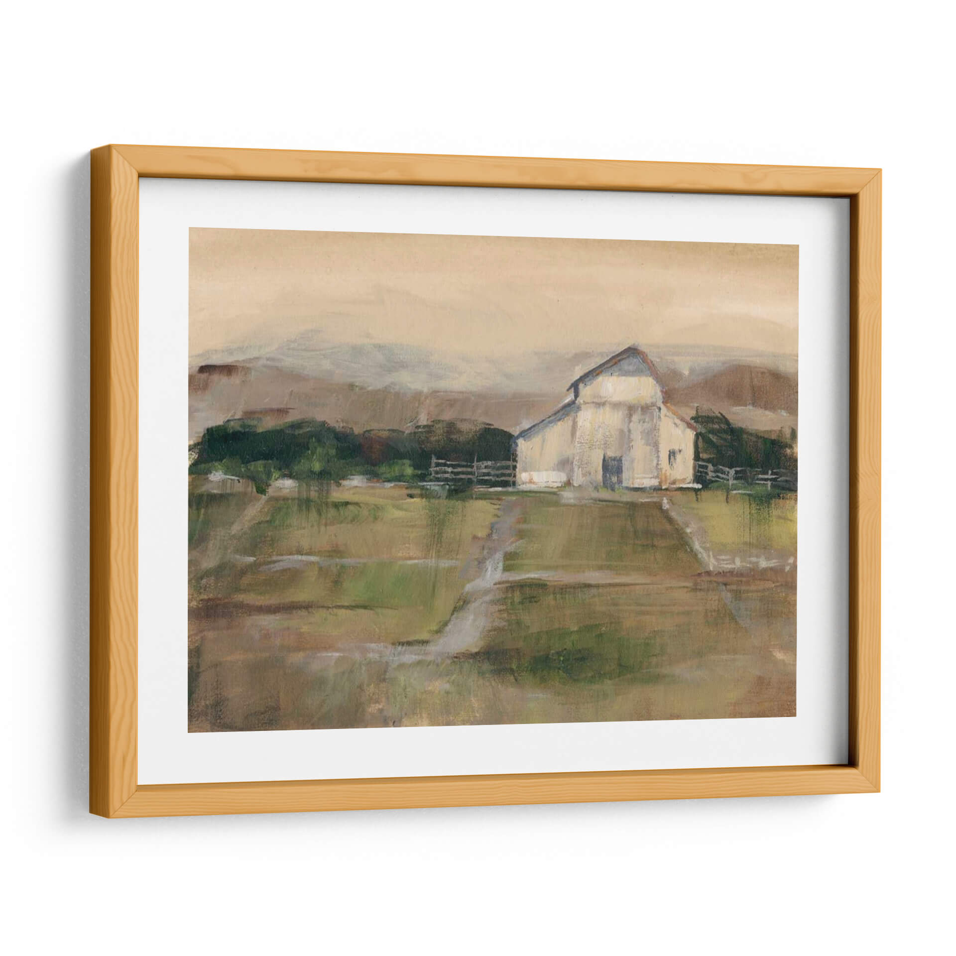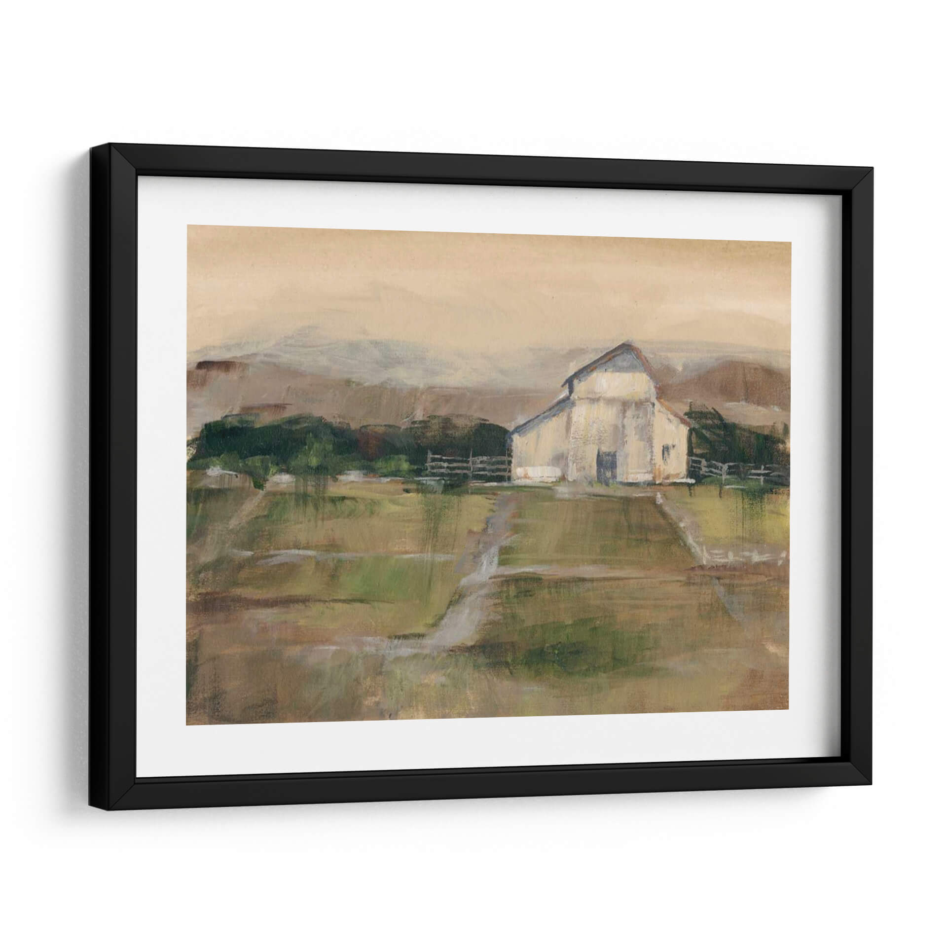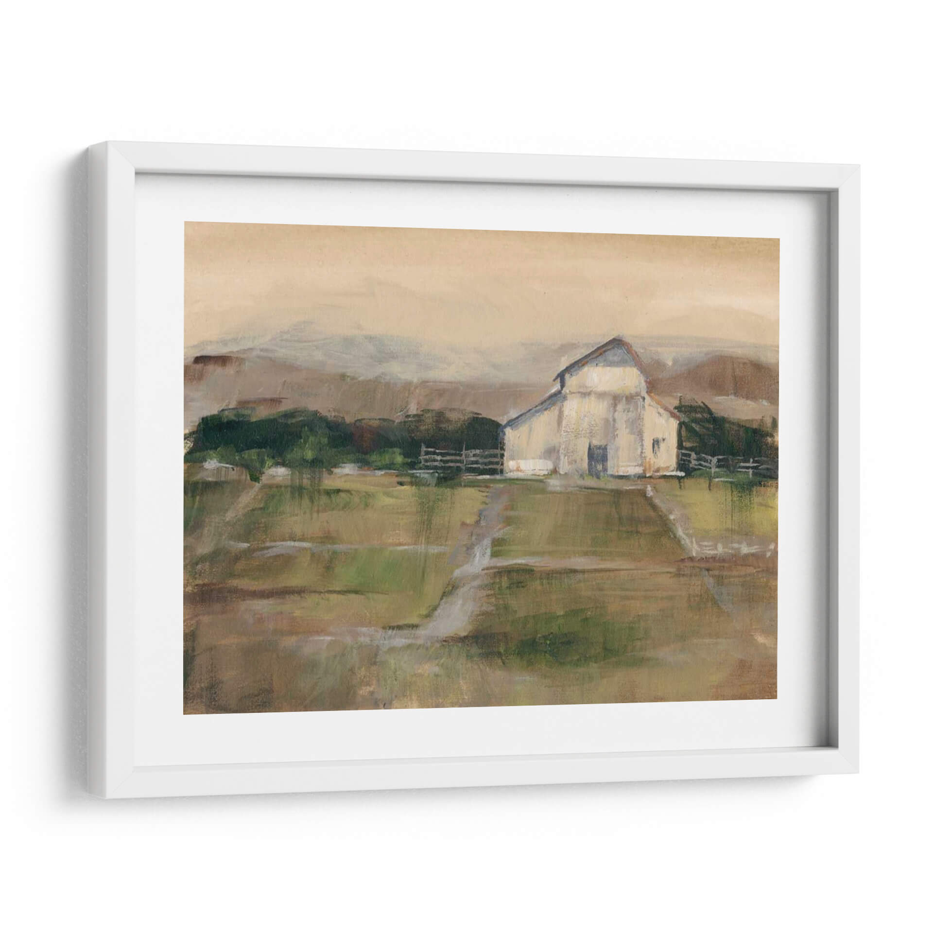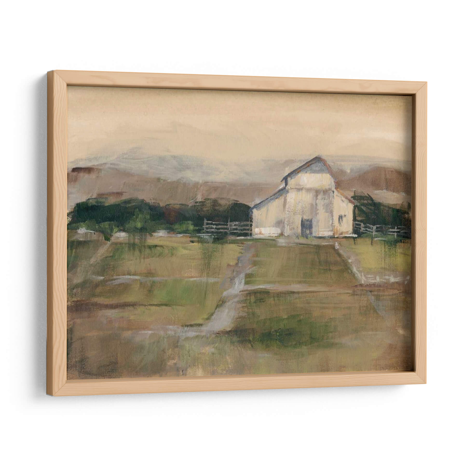 Sumérgete en la serenidad del campo con 'Piedra Simile II', una obra de arte que captura la esencia de un paisaje rural con una paleta de colores tierra y verdes suaves. El artista Ethan Harper nos presenta una interpretación impresionista y evocadora de un granero blanco enmarcado por colinas y un cielo de tonos ocre, transmitiendo una atmósfera de calma y nostalgia. Las pinceladas sueltas y la textura visual invitan a la contemplación, creando un punto focal perfecto para cualquier espacio que busque un toque de naturaleza y tranquilidad. Este cuadro decorativo es ideal para salones, dormitorios o estudios, aportando una sensación de paz y conexión con lo terrenal. Su estilo atemporal y su composición equilibrada lo convierten en una pieza versátil, capaz de complementar desde decoraciones rústicas hasta ambientes más modernos que buscan un respiro natural. 'Piedra Simile II' no es solo una imagen, es una invitación a ralentizar el ritmo y apreciar la belleza serena de la vida rural, añadiendo profundidad y carácter a tu hogar u oficina con su encanto sutil y su calidad artística.