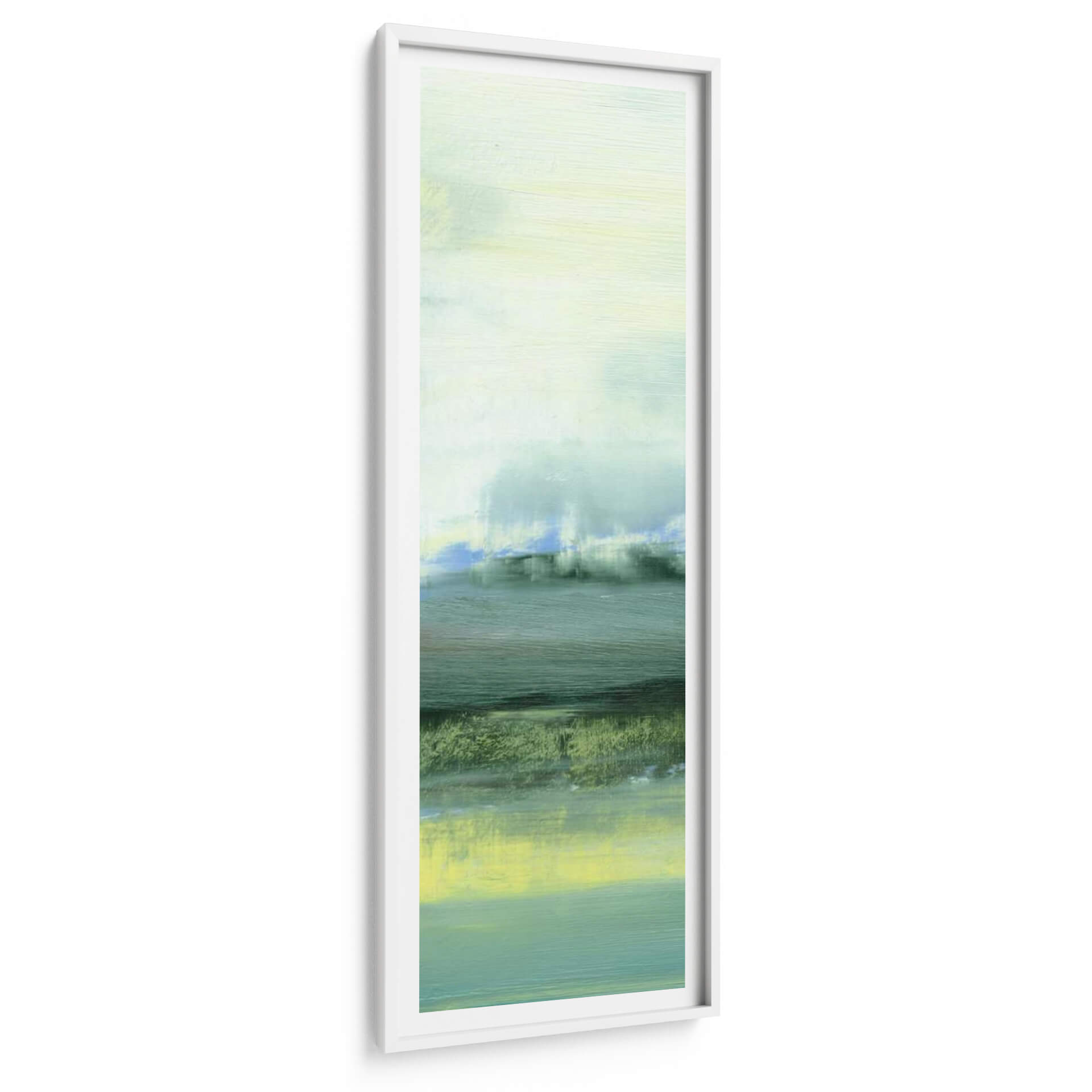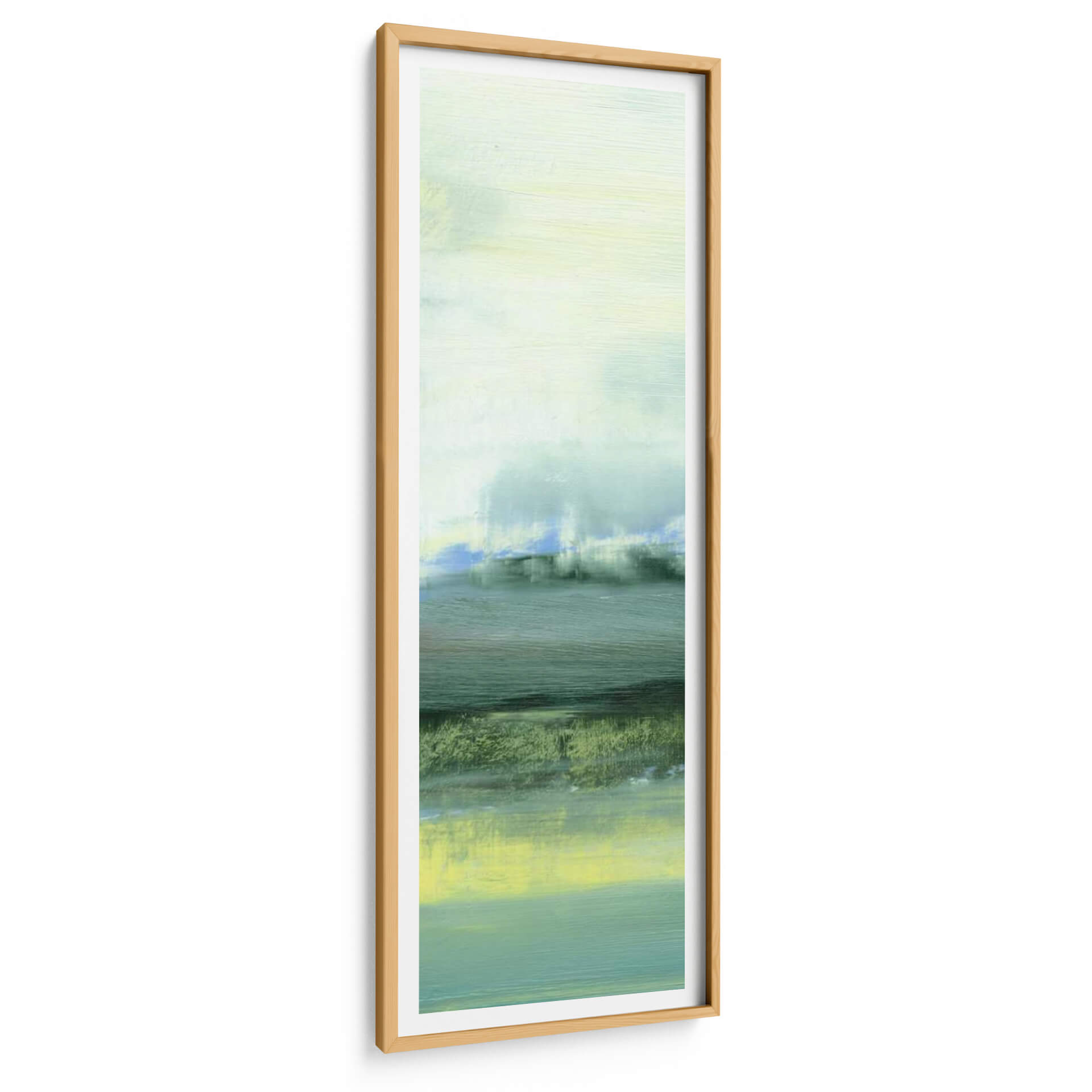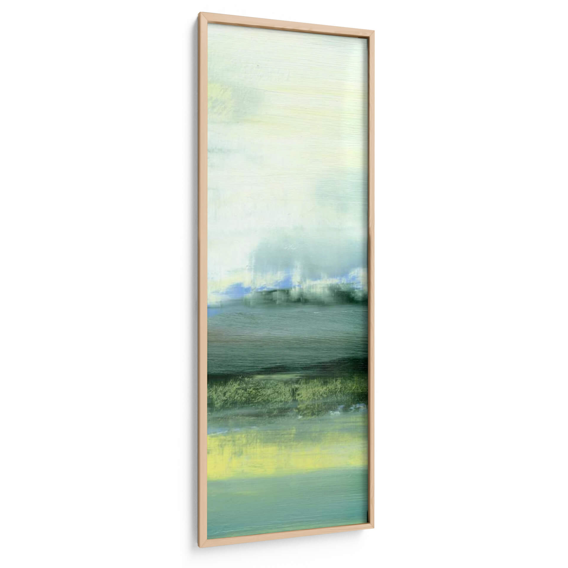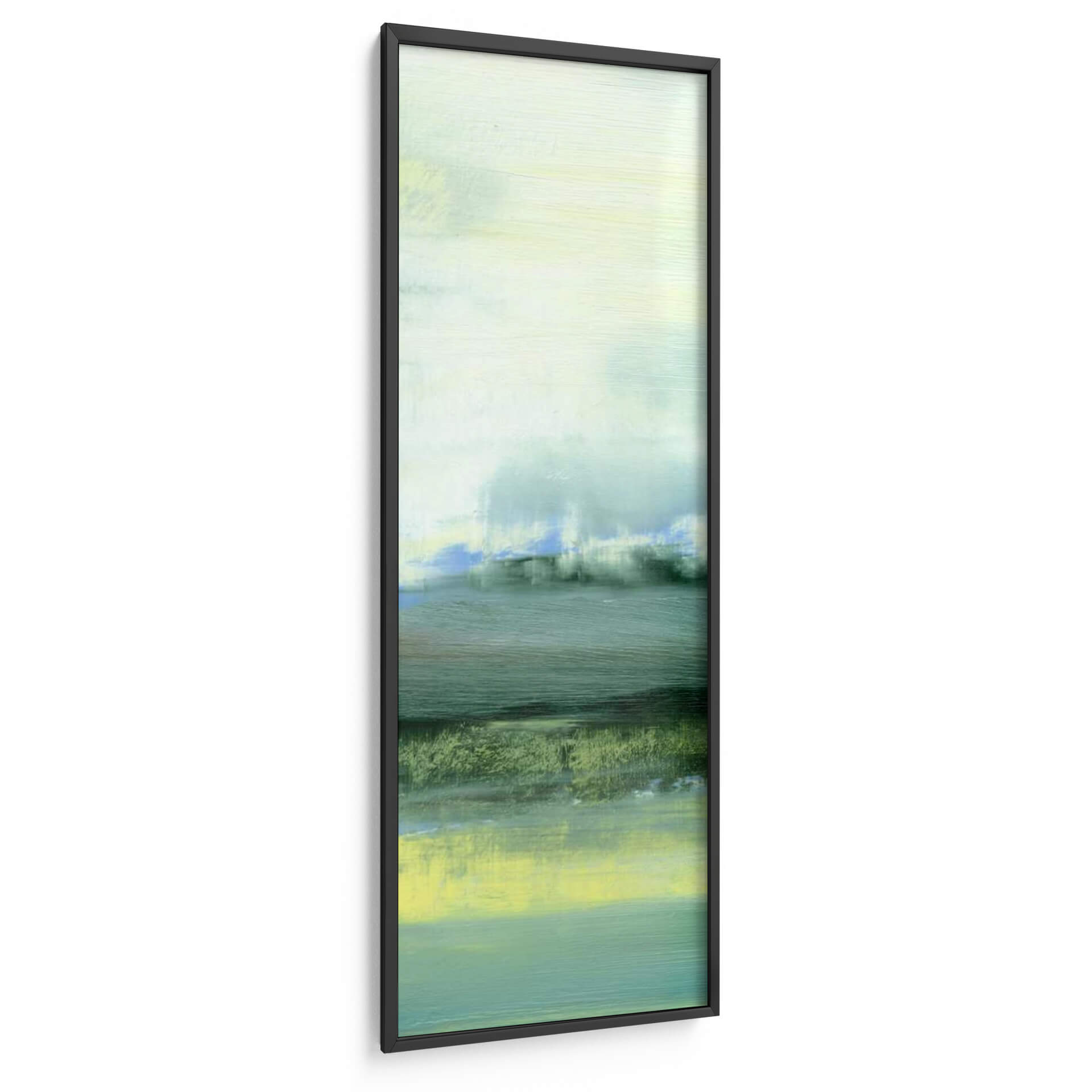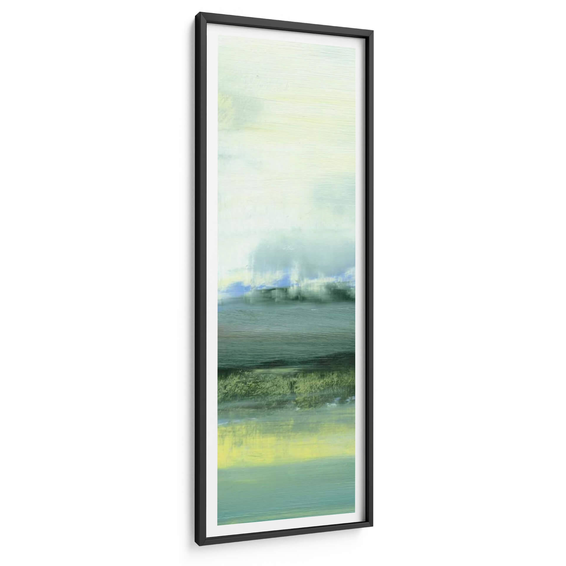 Sumérgete en la serenidad de "Primavera I", una obra de arte contemporáneo de Sharon Gordon que evoca la frescura y el renacimiento de la estación. Este cuadro decorativo se caracteriza por su paleta de colores suaves y etéreos, dominada por tonos verdes profundos, azules celestes y toques vibrantes de amarillo limón. La composición abstracta se despliega en capas horizontales, sugiriendo un paisaje difuminado o una vista evocadora de la naturaleza en transición. Las pinceladas, sutiles y texturizadas, aportan una sensación de movimiento y profundidad, invitando al espectador a perderse en sus matices. "Primavera I" es ideal para aquellos que buscan infundir calma y vitalidad en sus espacios. Su formato vertical y su estilo abstracto lo convierten en una pieza versátil, perfecta para salones modernos, dormitorios que invitan al descanso o incluso oficinas que buscan un toque de inspiración natural y sofisticada. Transforma tu hogar u oficina en un santuario de paz y belleza con esta pieza única que captura la esencia efímera de la primavera, aportando luz y una atmósfera de renovación a cualquier ambiente. Es un lienzo que habla de crecimiento, esperanza y la belleza sutil del mundo natural.